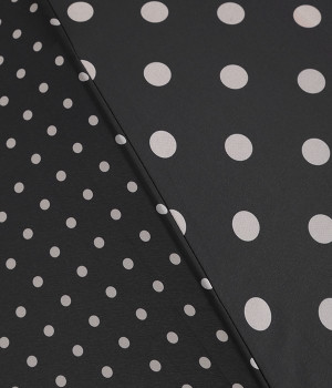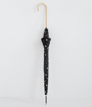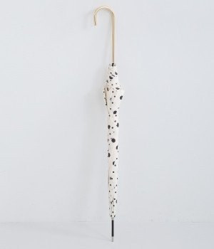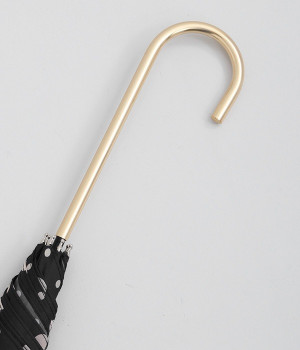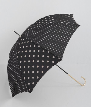 異なるサイズのドット生地を組み合わせたパネルデザインの晴雨兼用の傘です。折り畳んだときにはスッとした細みのシルエットが華奢な印象を与え、持ち歩く姿もスマートです。つやめくメタルカラーの上品なハンドルも握りやすいようにスリムに。フェミニンな装いのときにはもちろん、カジュアルな装いのときでも適度な甘さをプラスします。