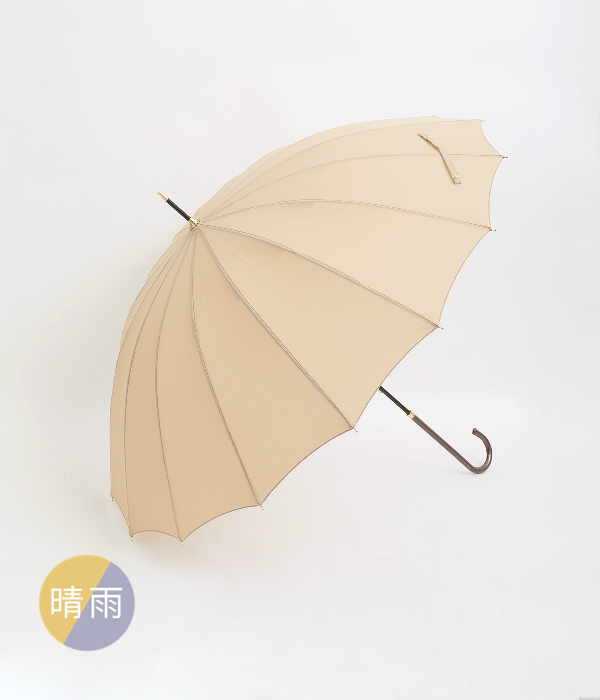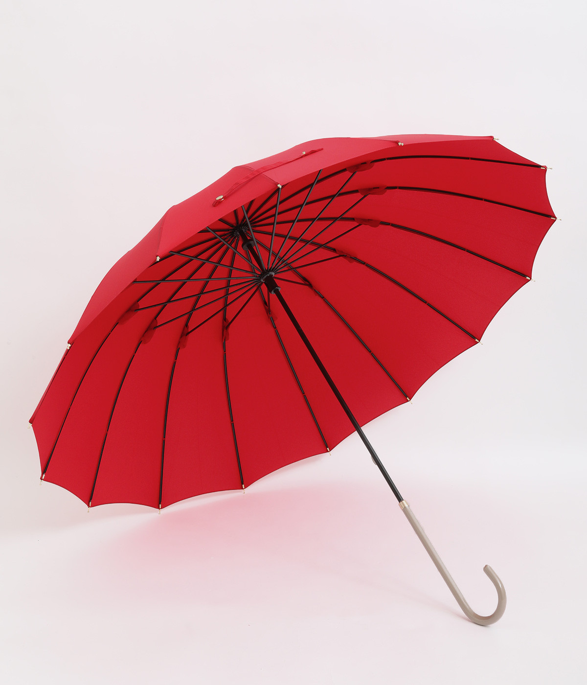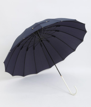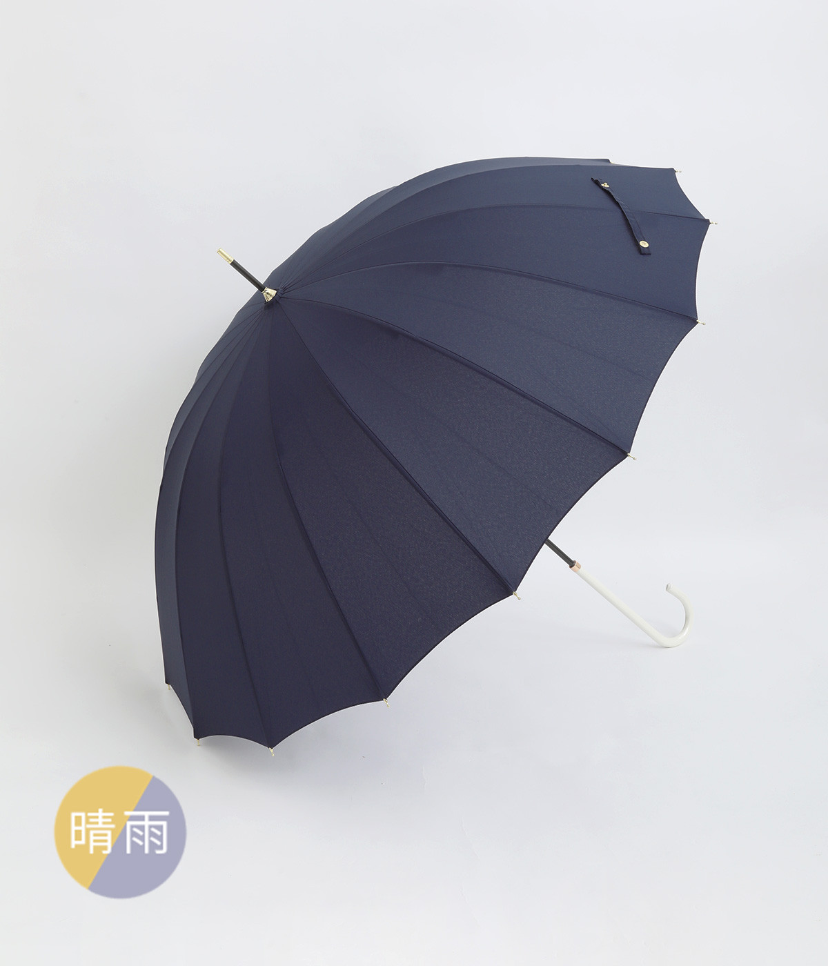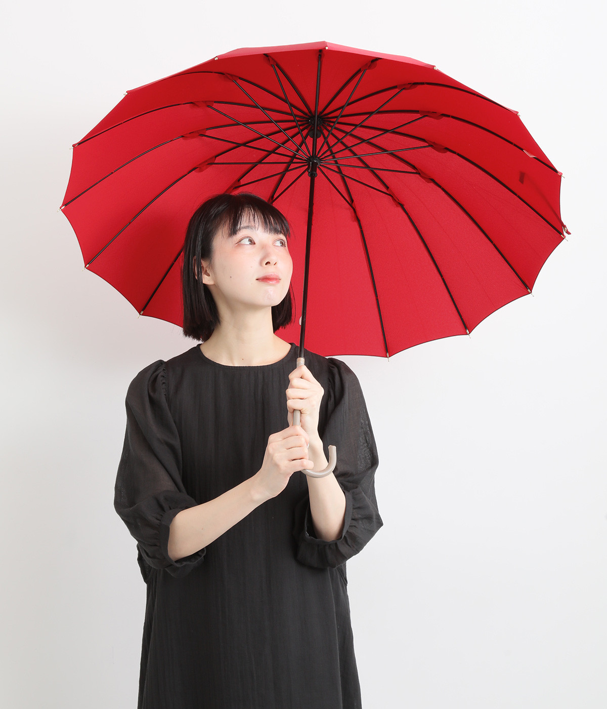 しっかりとした安定感と強度の高さが人気の16フレーム長傘。どんなコーディネートにも合わせやすいシンプルなワンカラーデザイン。雨晴兼用なので天候の変わりやすい季節にも重宝します。開閉時に指が傷つかないよう安全な形状になっているのもうれしいポイント。