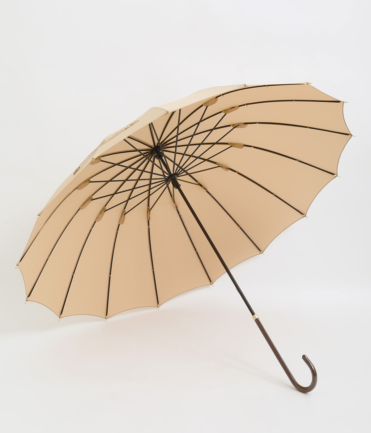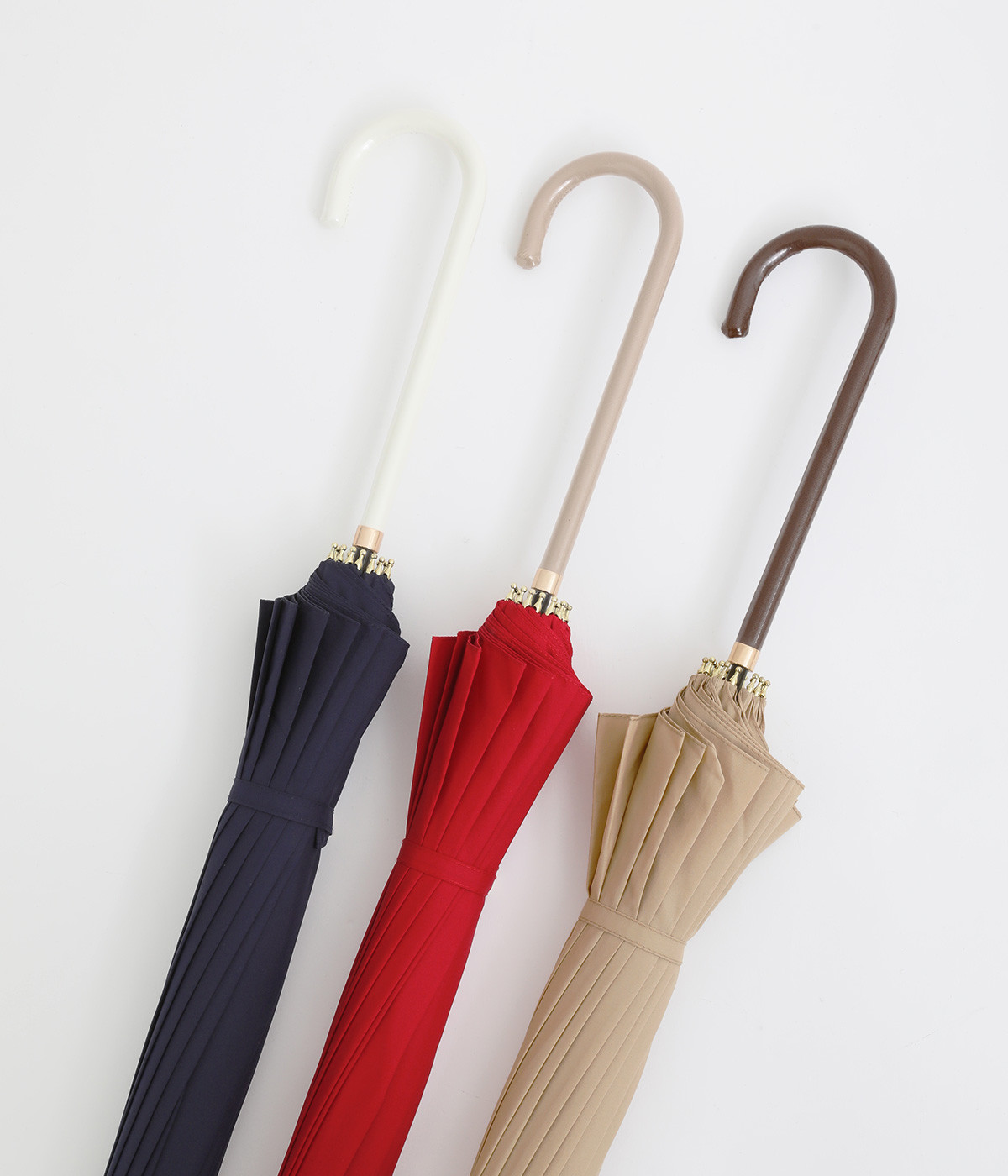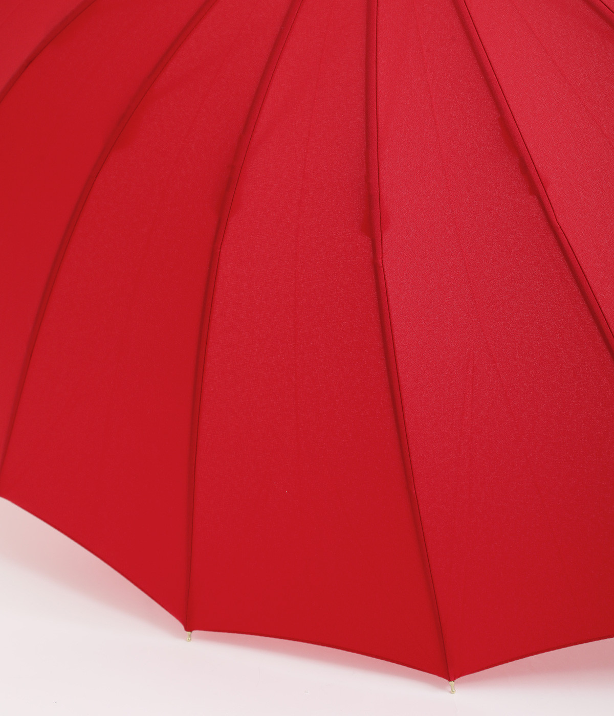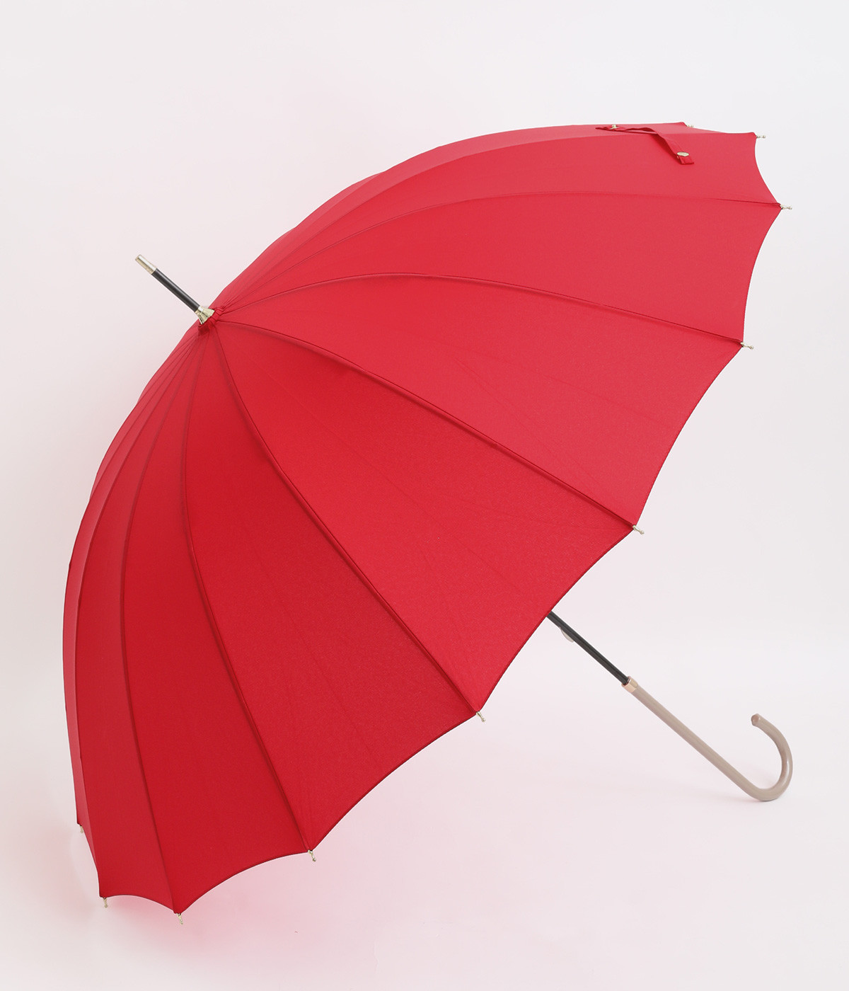 しっかりとした安定感と強度の高さが人気の16フレーム長傘。どんなコーディネートにも合わせやすいシンプルなワンカラーデザイン。雨晴兼用なので天候の変わりやすい季節にも重宝します。開閉時に指が傷つかないよう安全な形状になっているのもうれしいポイント。
