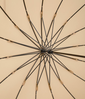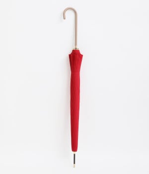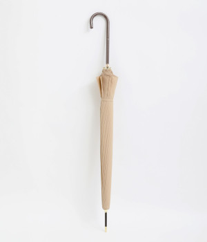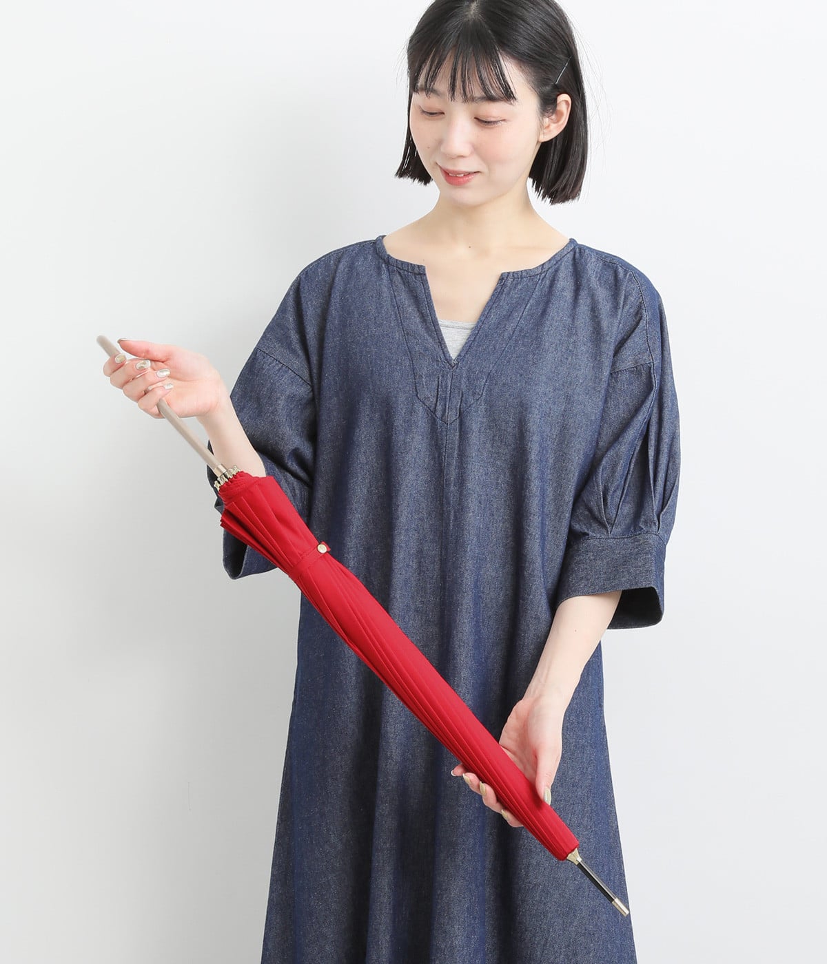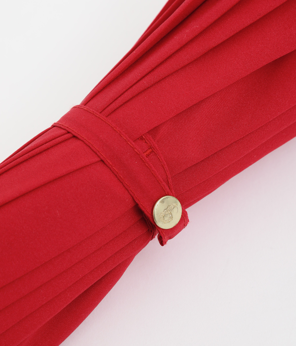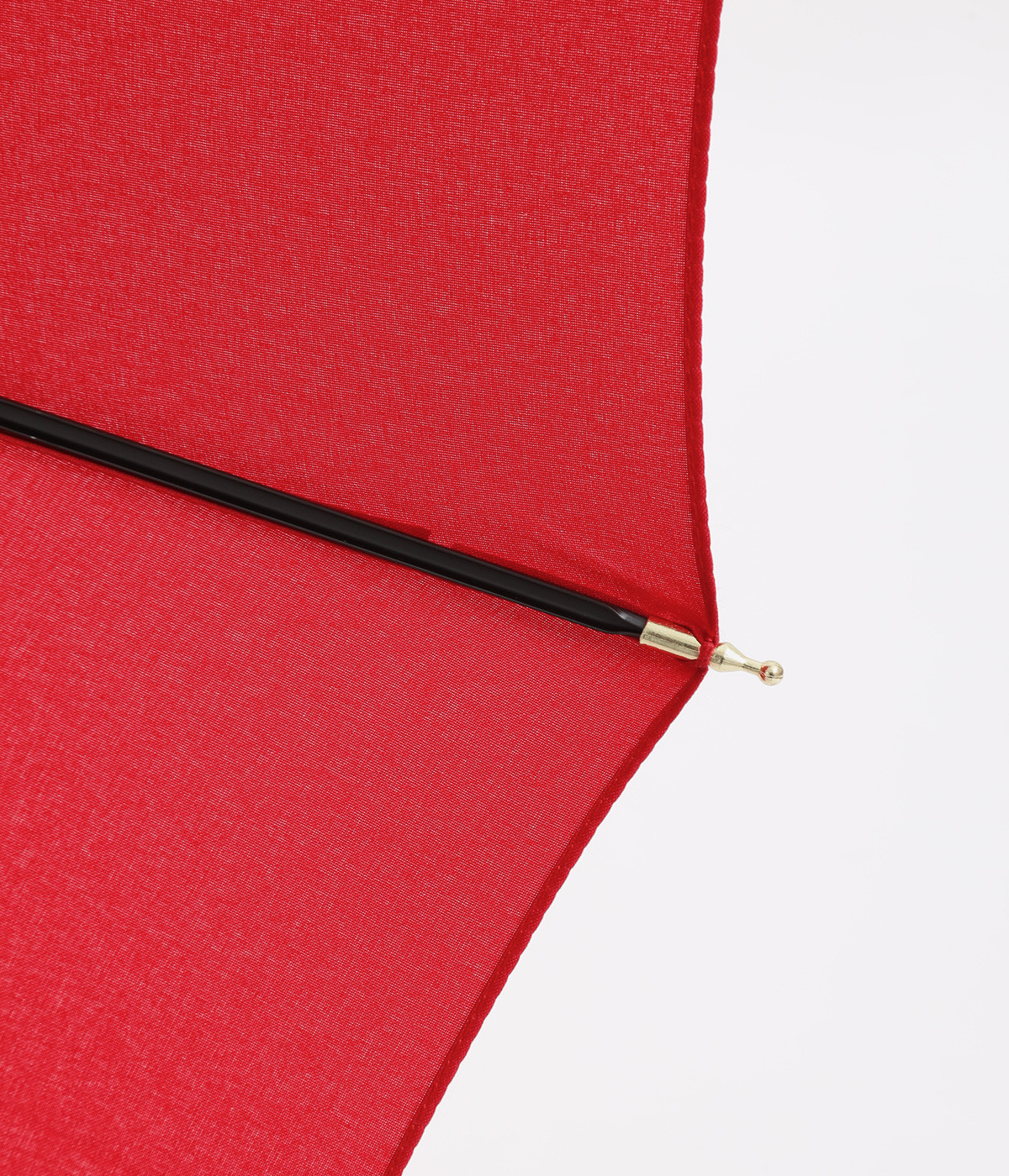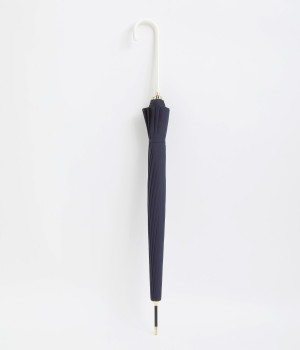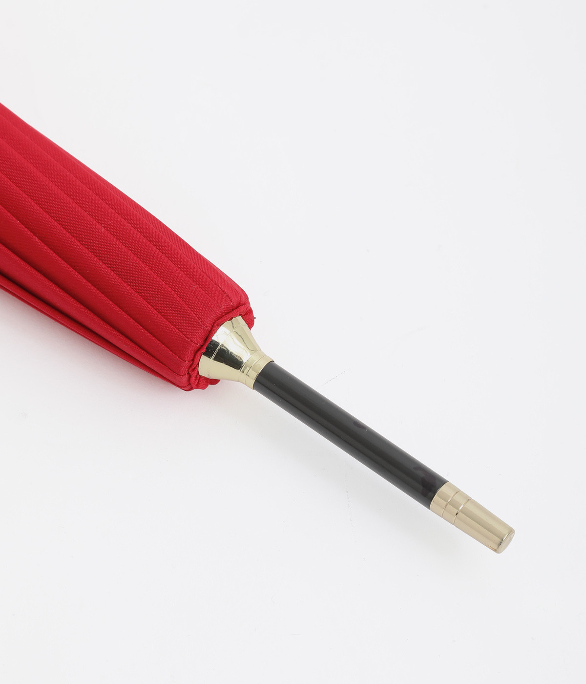 きちんと感のある装いにもマッチする、凛とした表情のポリエステル製。バンドボタンや骨の先端についている露先など、ディテールにゴールドパーツをあしらった上品な仕立て。