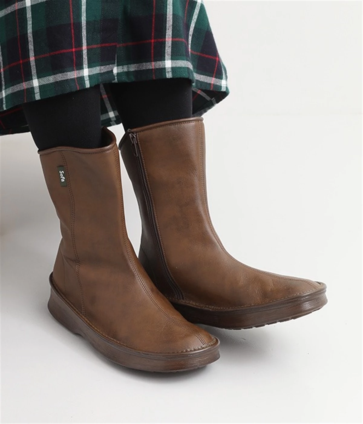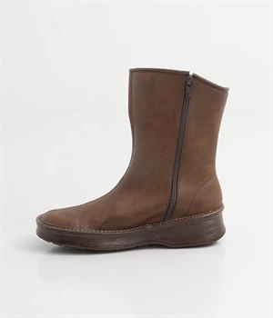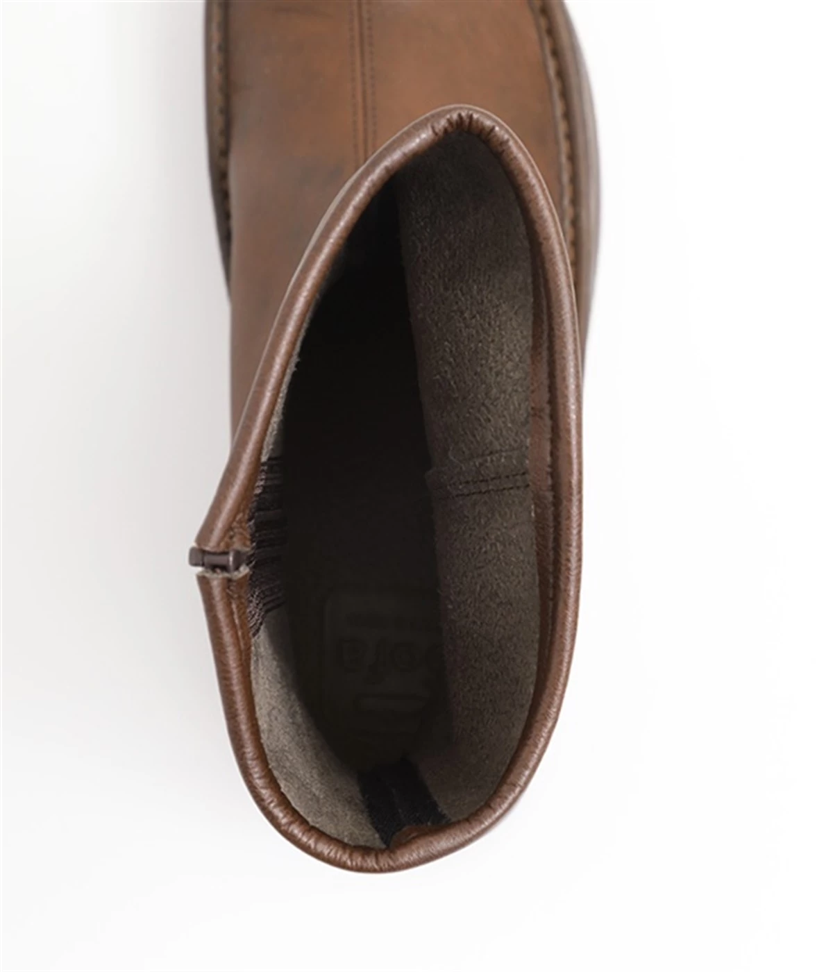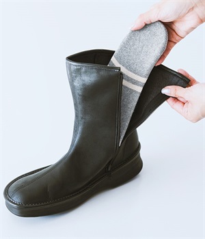 超軽量&超柔らかなサイドジップ付きの、脱ぎ履きもラクチンなブーツです。特許取得製法のドーム製法で仕立てた、歩くたびに足袋のように足にフィットする柔軟性の良さと快適な履き心地が魅力的。ムラ感のある風合いの良いヴィーガンレザーを採用し独特の雰囲気を表現しています。高反発のコンフォートインソール入りで疲れにくいので、立ち仕事や旅行にもおすすめです。