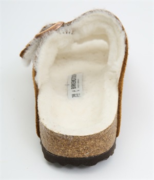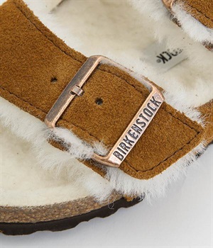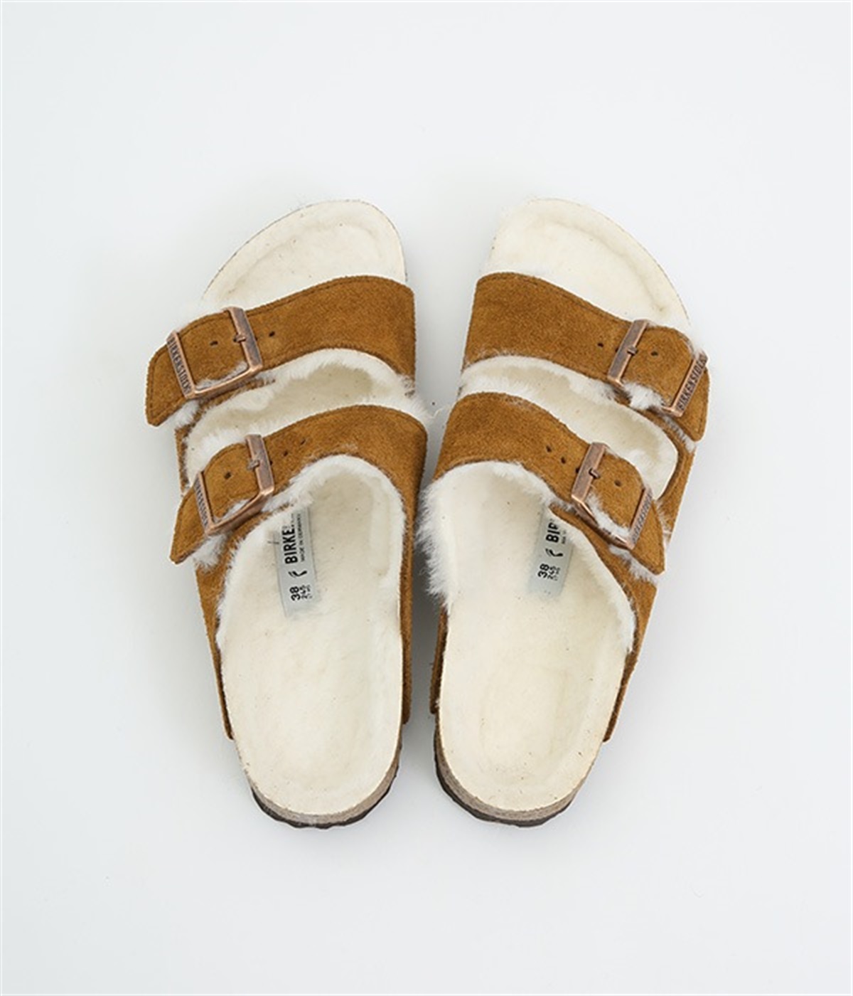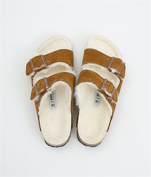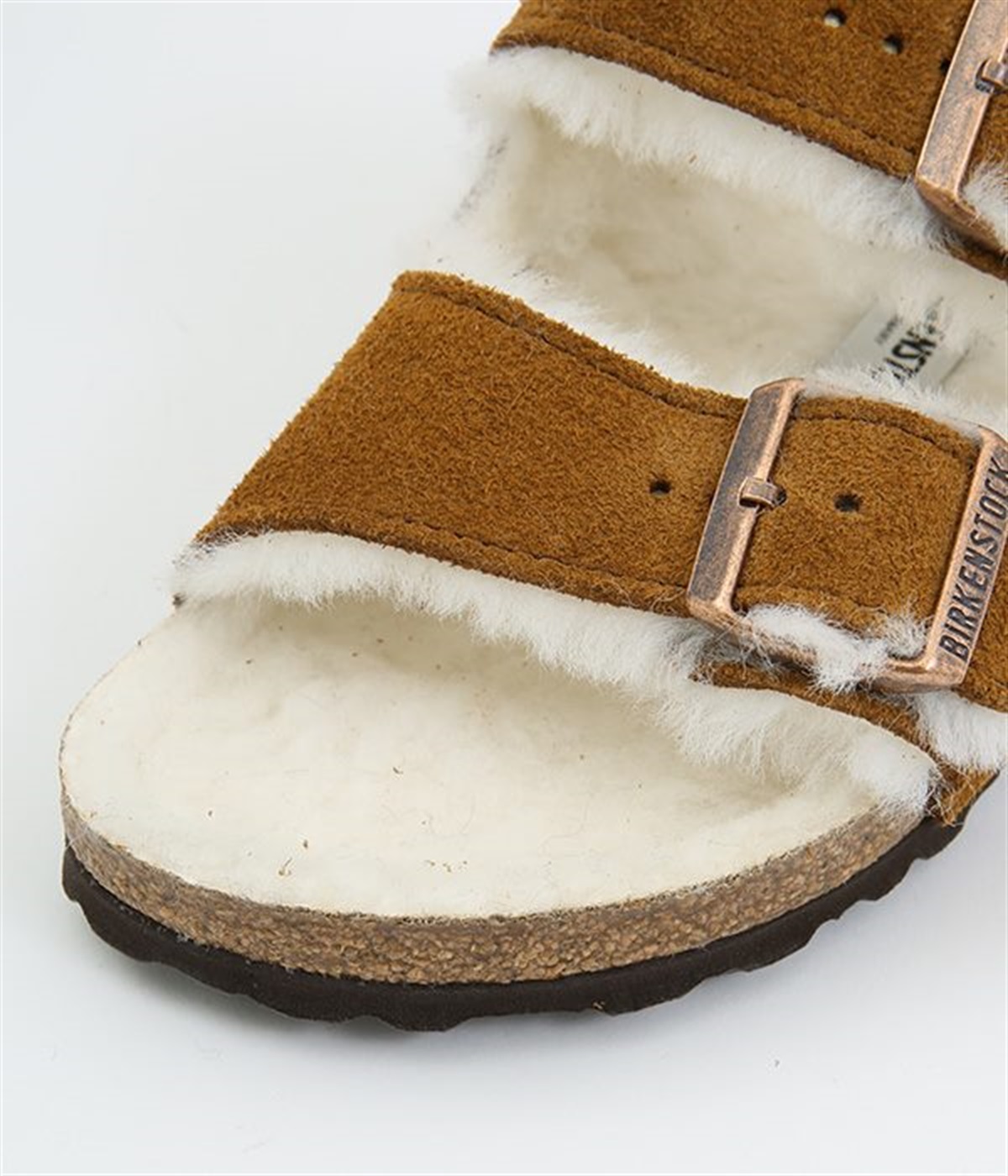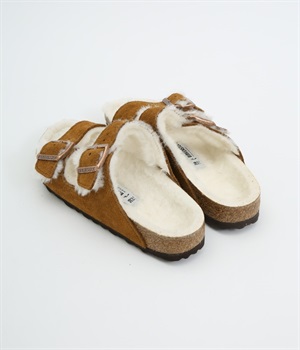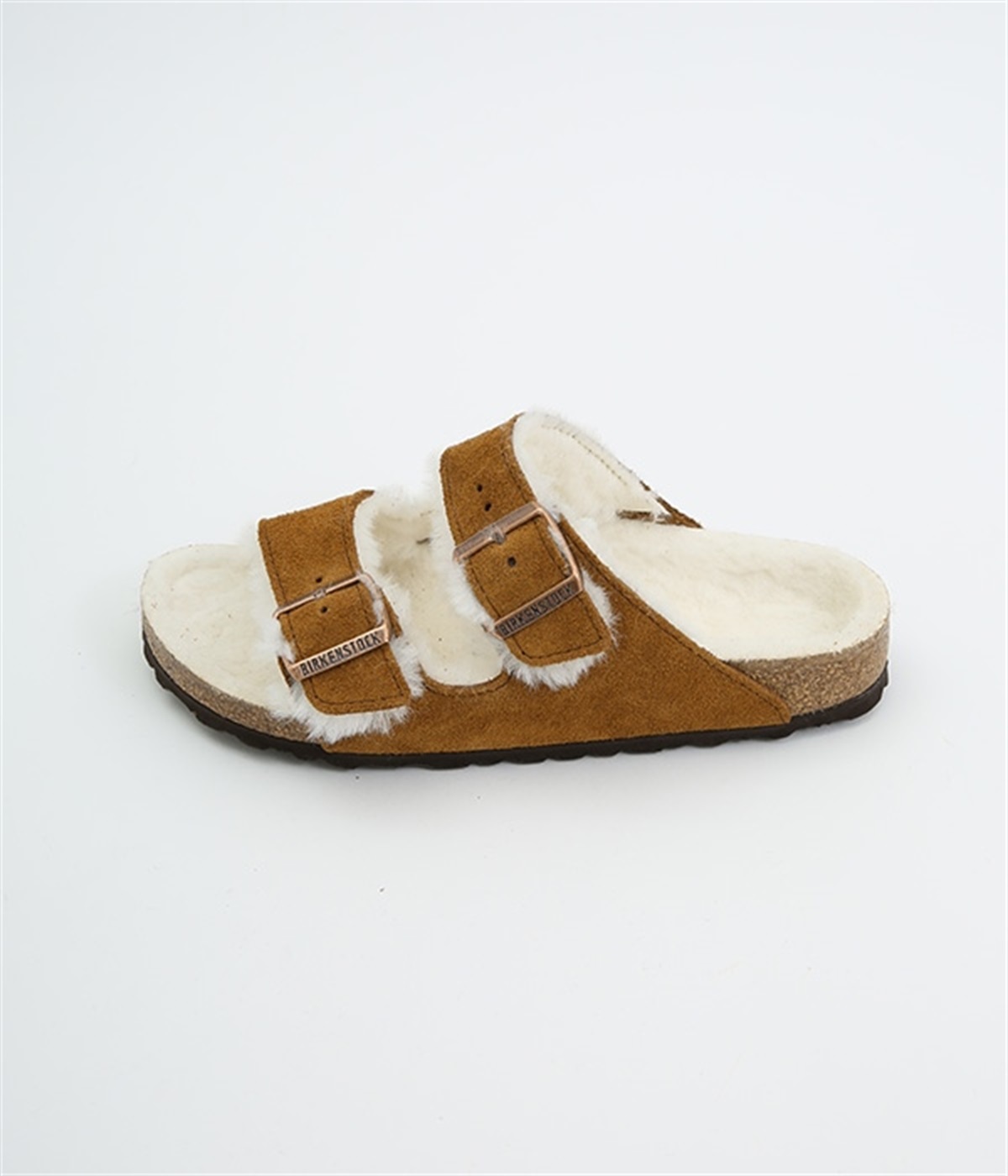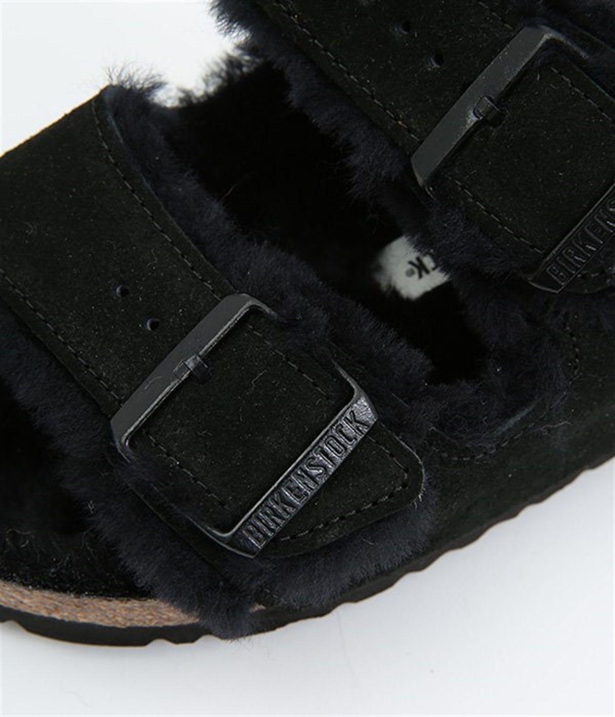 超高級スエードレザーを使用した大人の装いにマッチするサンダル。天然ラムスキンボアで覆われた中敷きとストラップのライニングが、おしゃれにあたたかく足元を包みます。カジュアルからきれいめミックスのスタイルまで幅広く合わせやすいデザイン。タイツやソックスなどと合わせて履くのもおすすめです。金属製のバックルにより自由にフィット感を調整できるダブルストラップ仕様で、甲高の方も安心です。