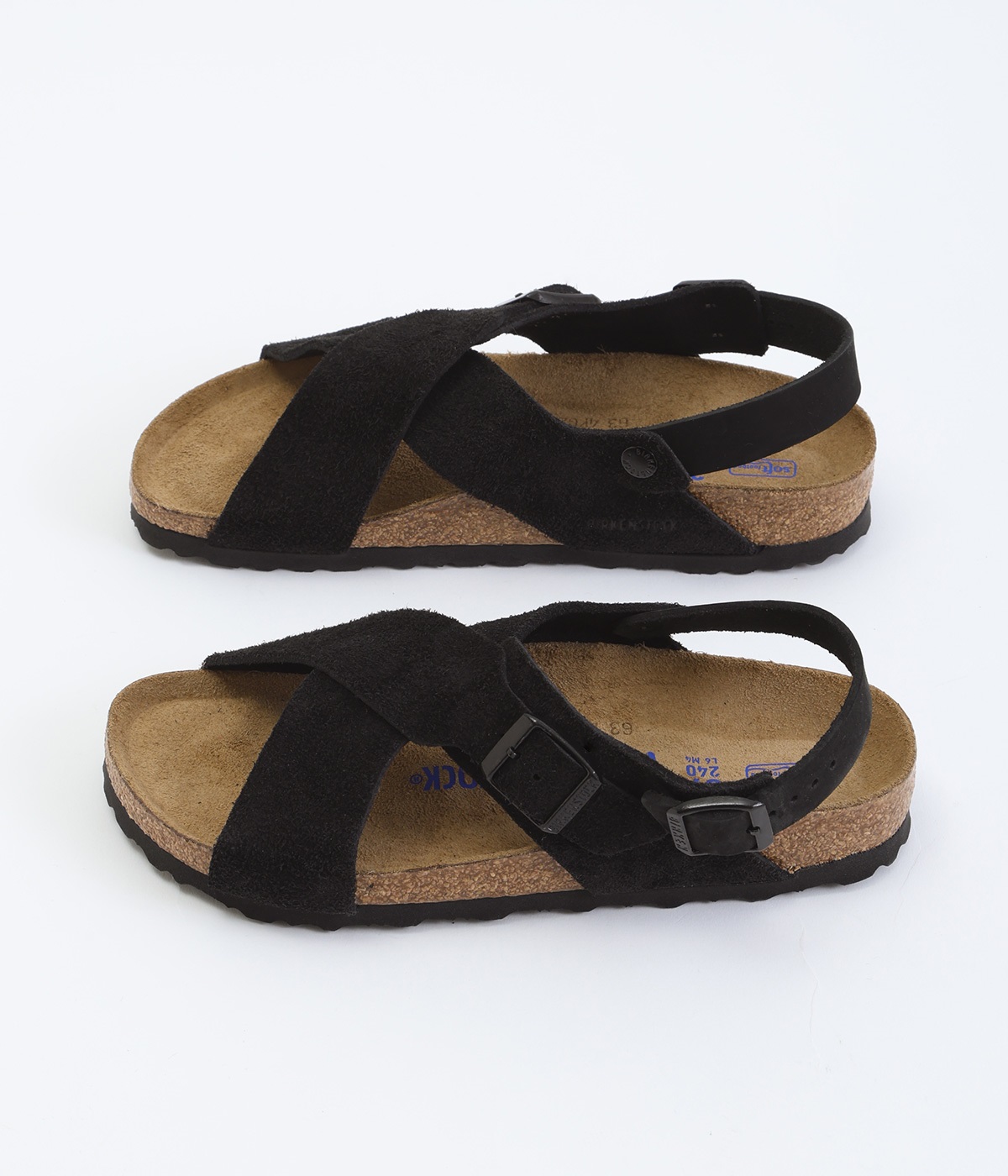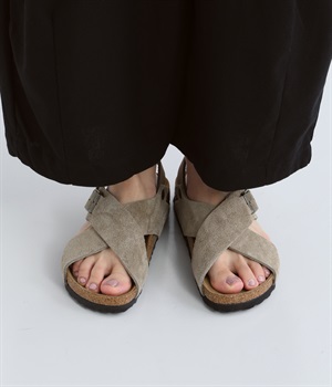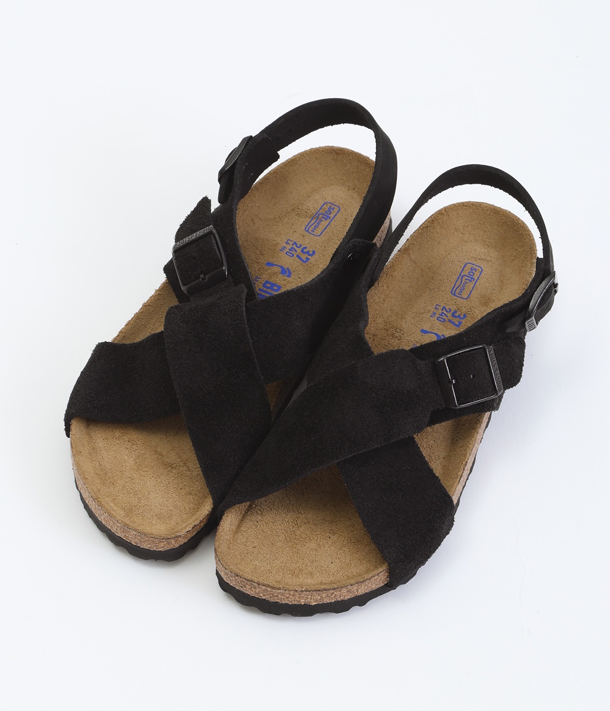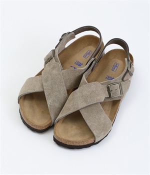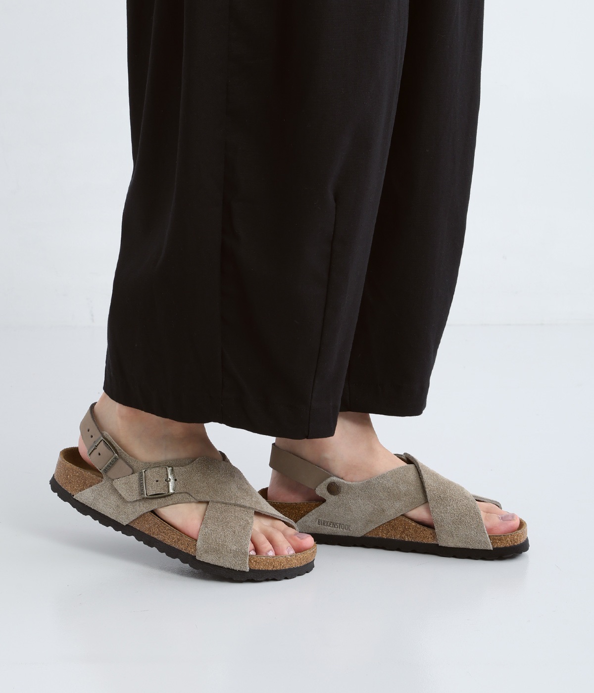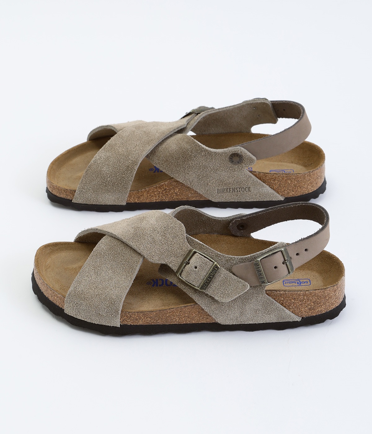 足元に適度な抜け感を作るクロスデザインは、バックストラップとともにベルテッド仕様になっていてフィット感の調節が可能。素足ではくのはもちろん、ソックスとのコーディネートでおしゃれの幅が広がります。