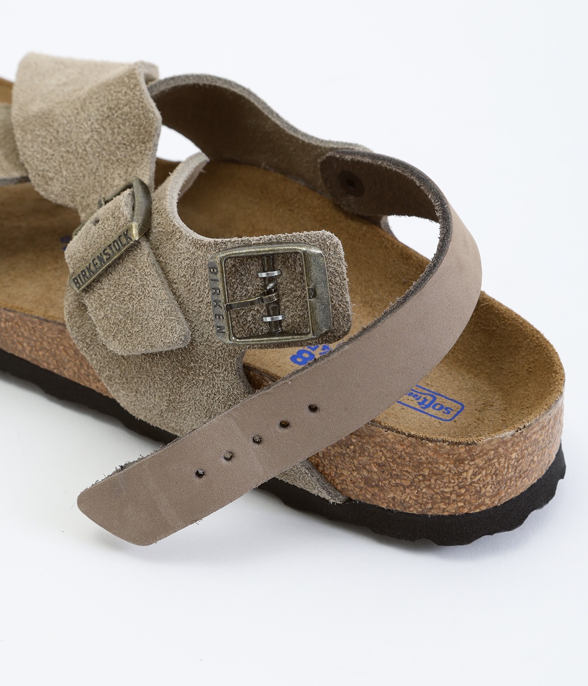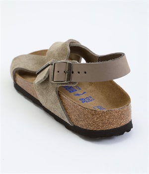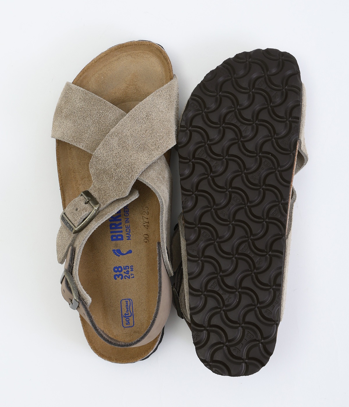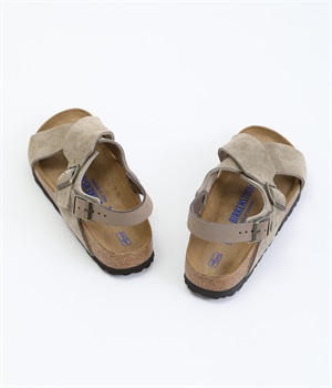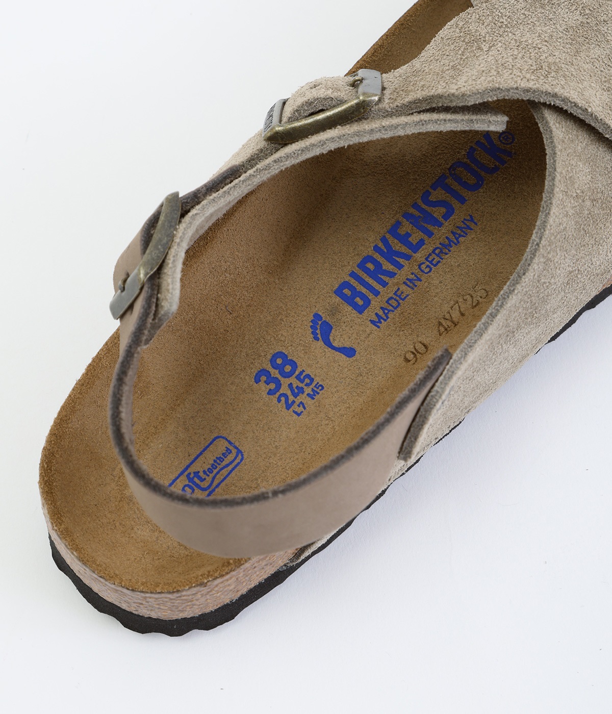 アッパーにはほどよくやわらかな起毛レザーを使用し、素足に触れた時の心地よさが感じられます。全体の雰囲気もやさし気に。BIRKENSTOCKオリジナルソフトフットベッドで快適な歩行をサポートします。
