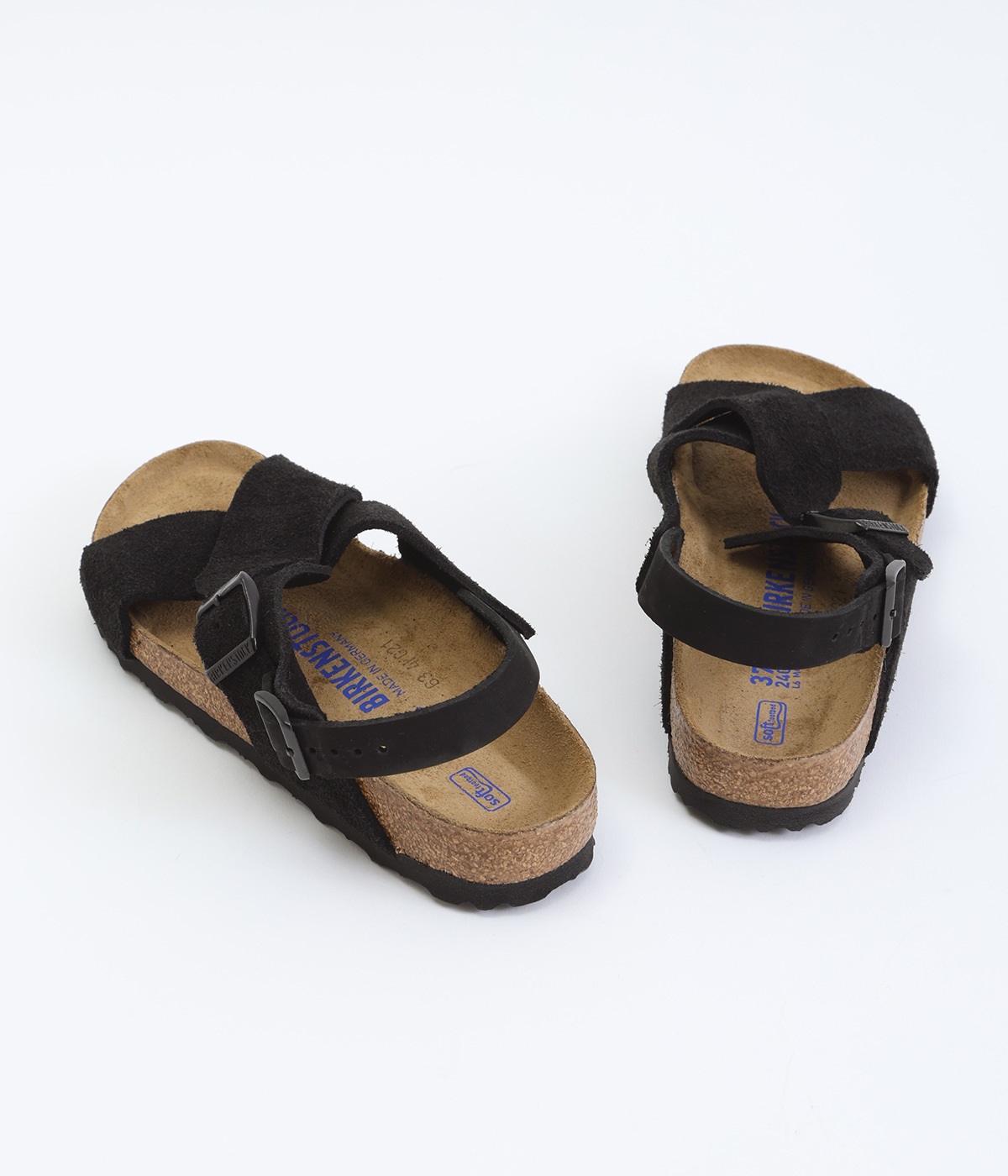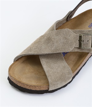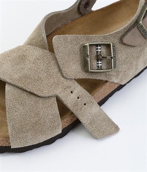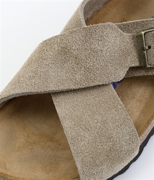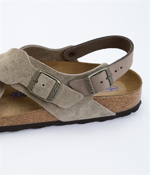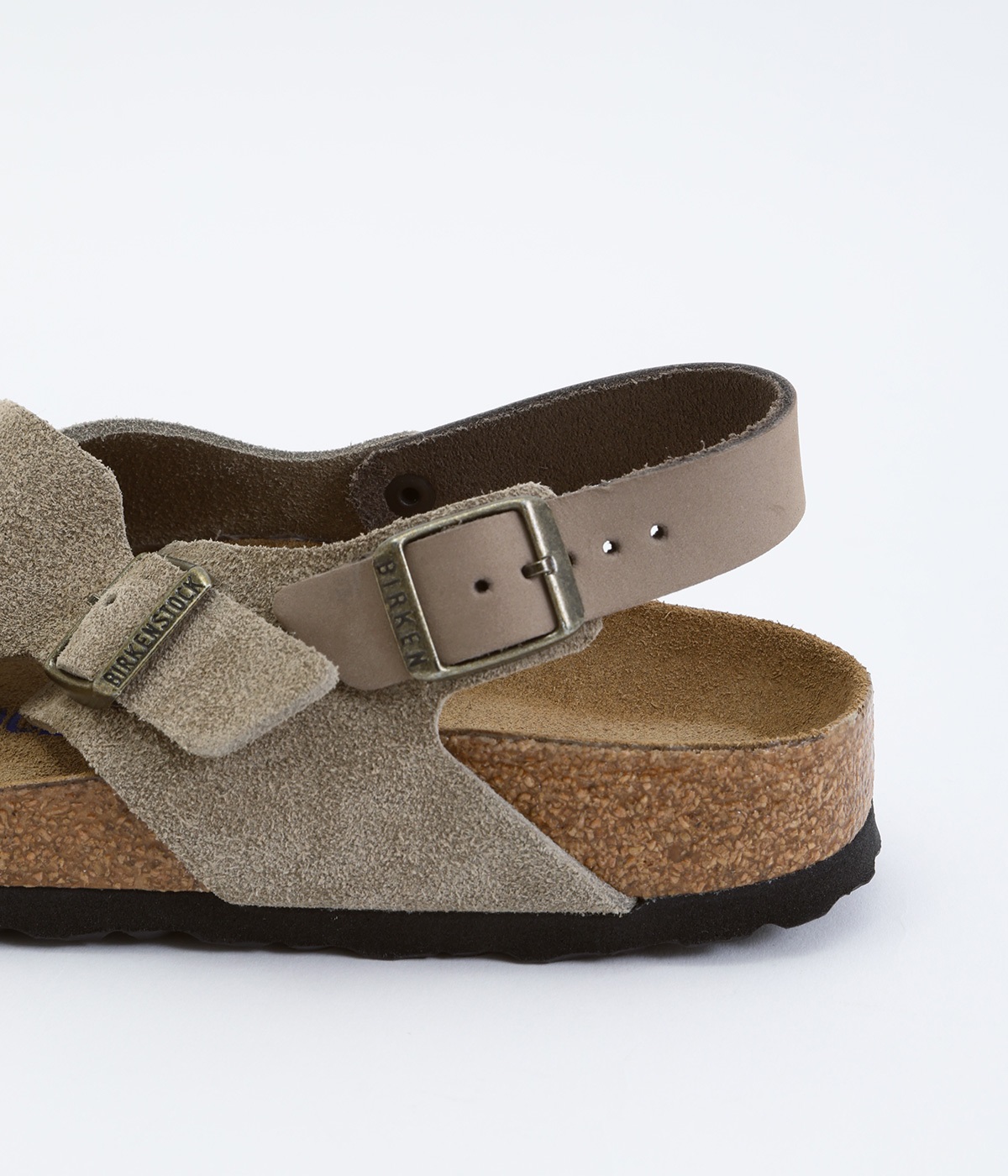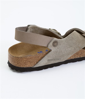 アッパーにはほどよくやわらかな起毛レザーを使用し、素足に触れた時の心地よさが感じられます。全体の雰囲気もやさし気に。BIRKENSTOCKオリジナルソフトフットベッドで快適な歩行をサポートします。