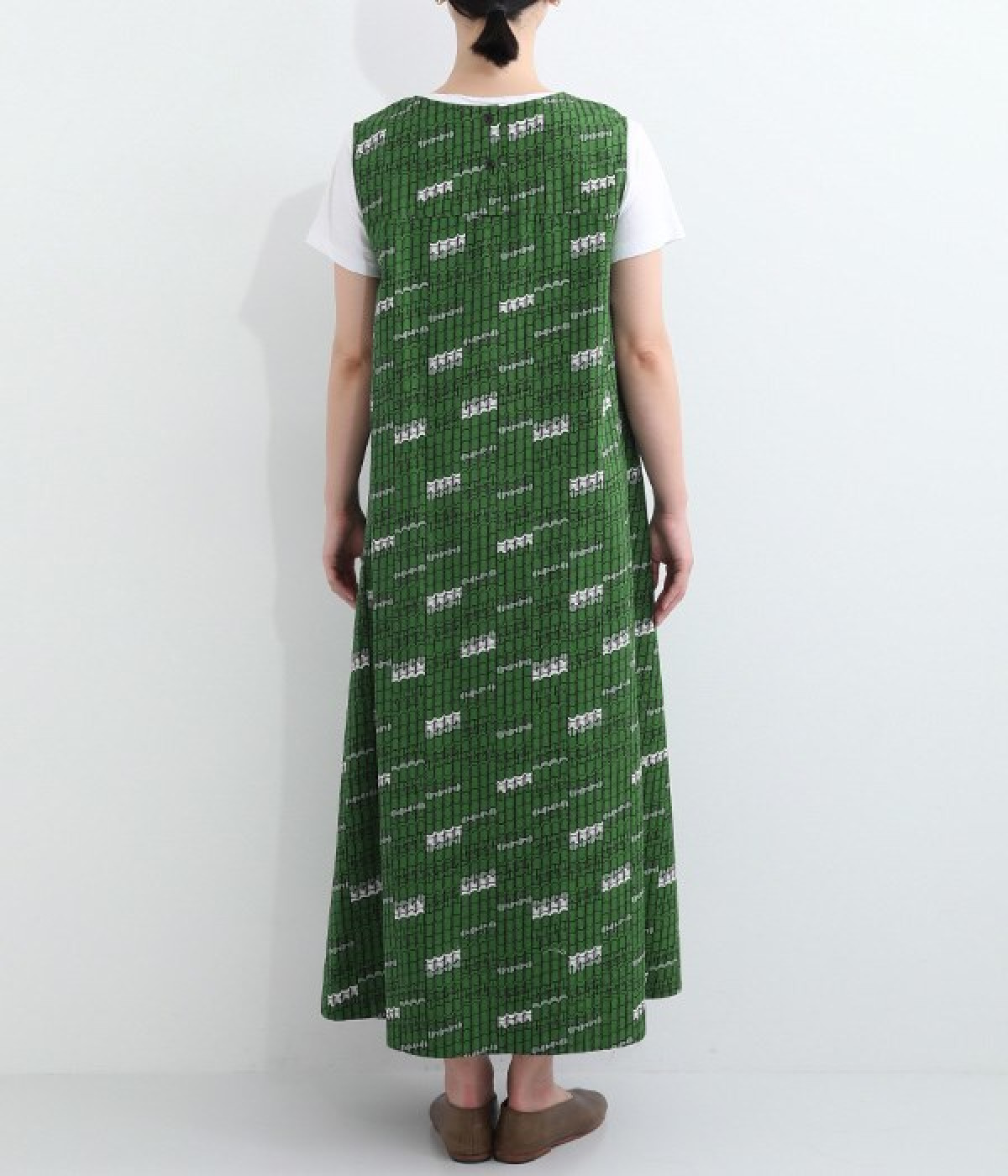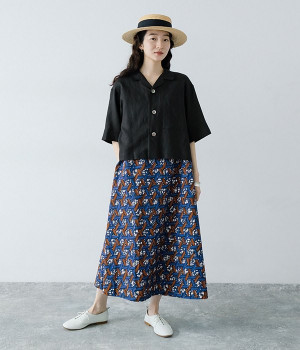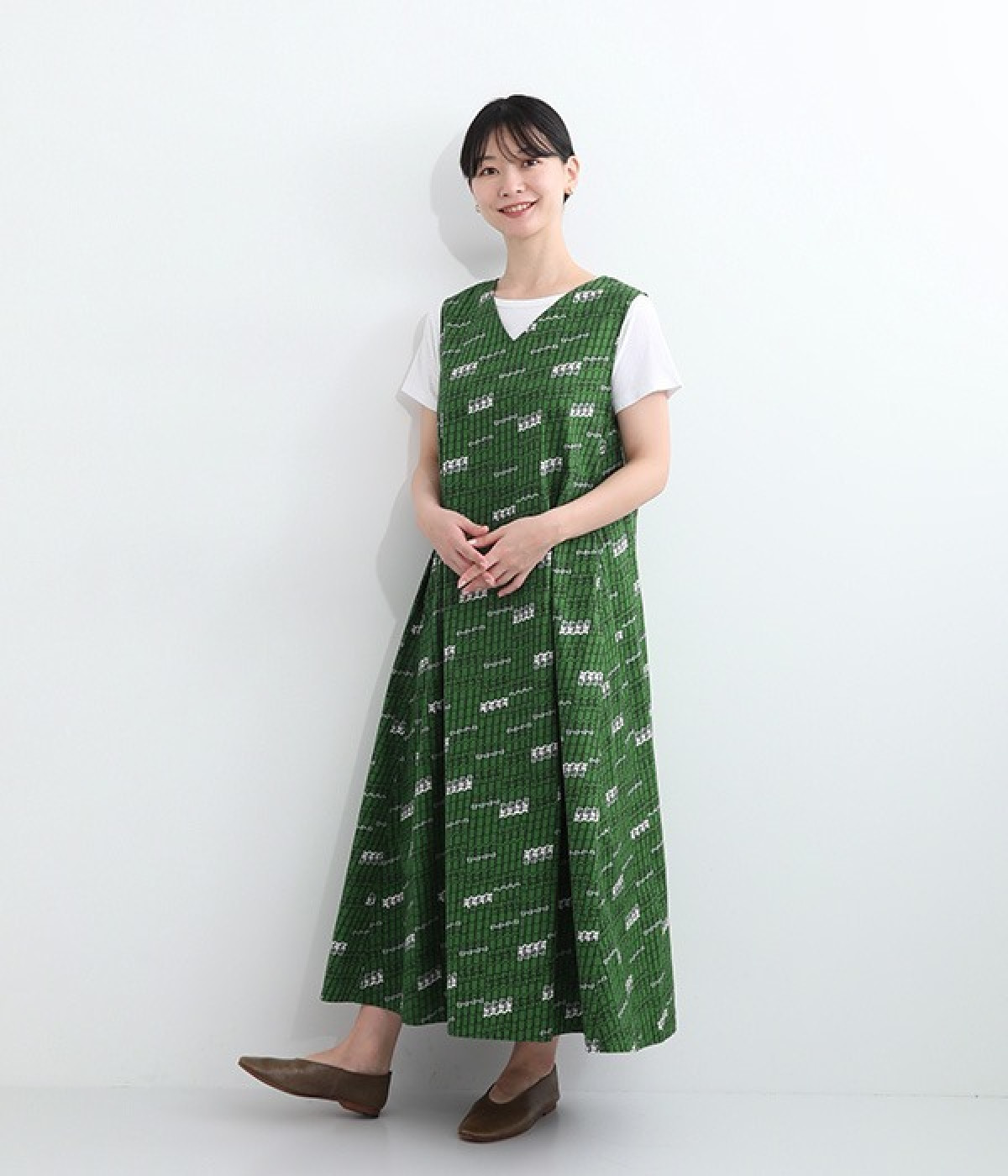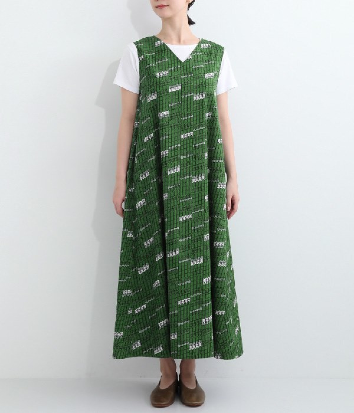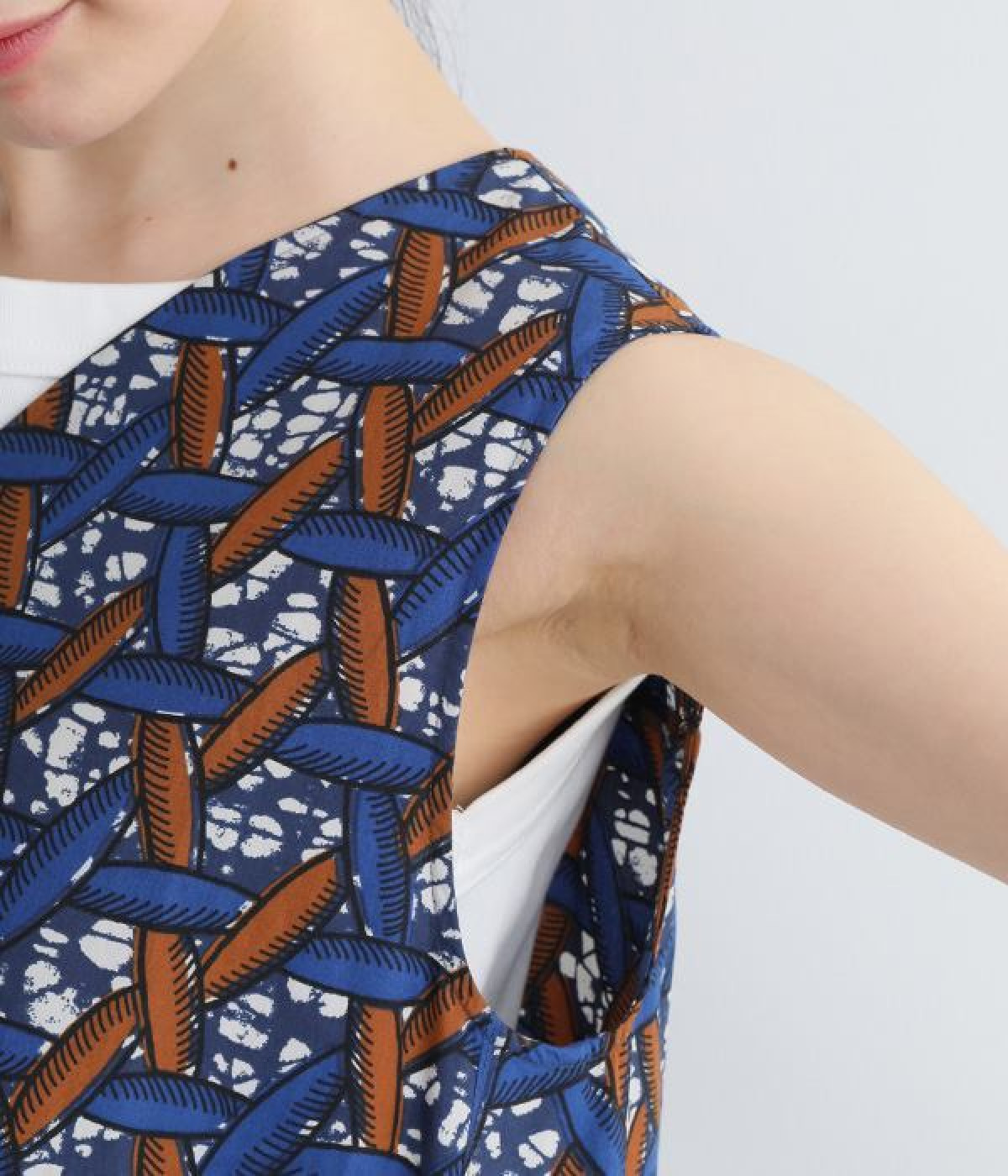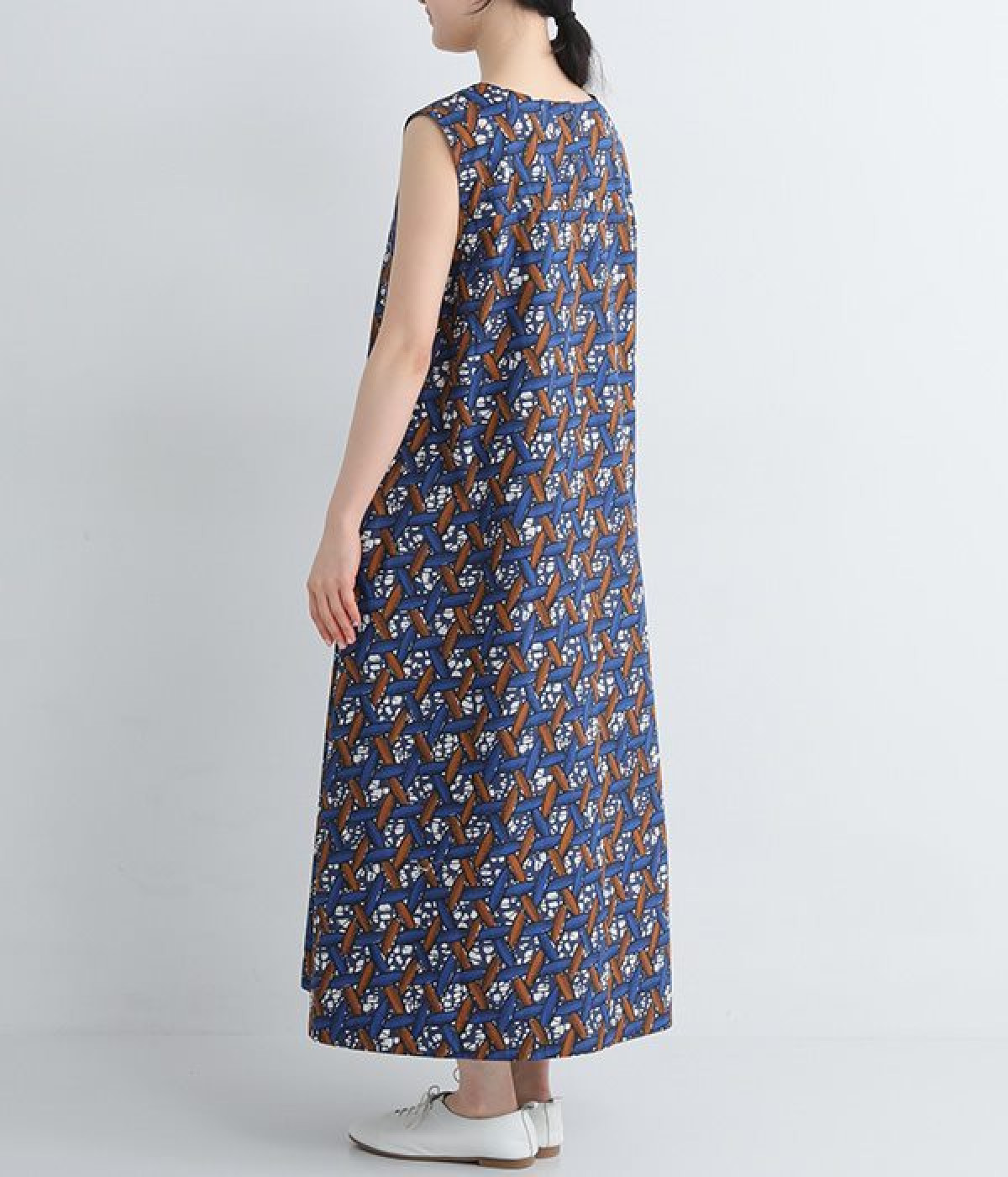 パッと目を惹く色使い&モチーフがインパクトたっぷりなプリントワンピース。適度にハリのあるコットン素材を使用し、きれいなフレアシルエットがくずれにくいのが特徴です。裏地レスでも透けにくく、インナーのラインが響きにくい生地も◎。デコルテをシャープに引き立てるVネックで、すっきり抜け感を出しています。薄地のカーディガンやパーカーともスタイリングしやすいノースリーブタイプです。