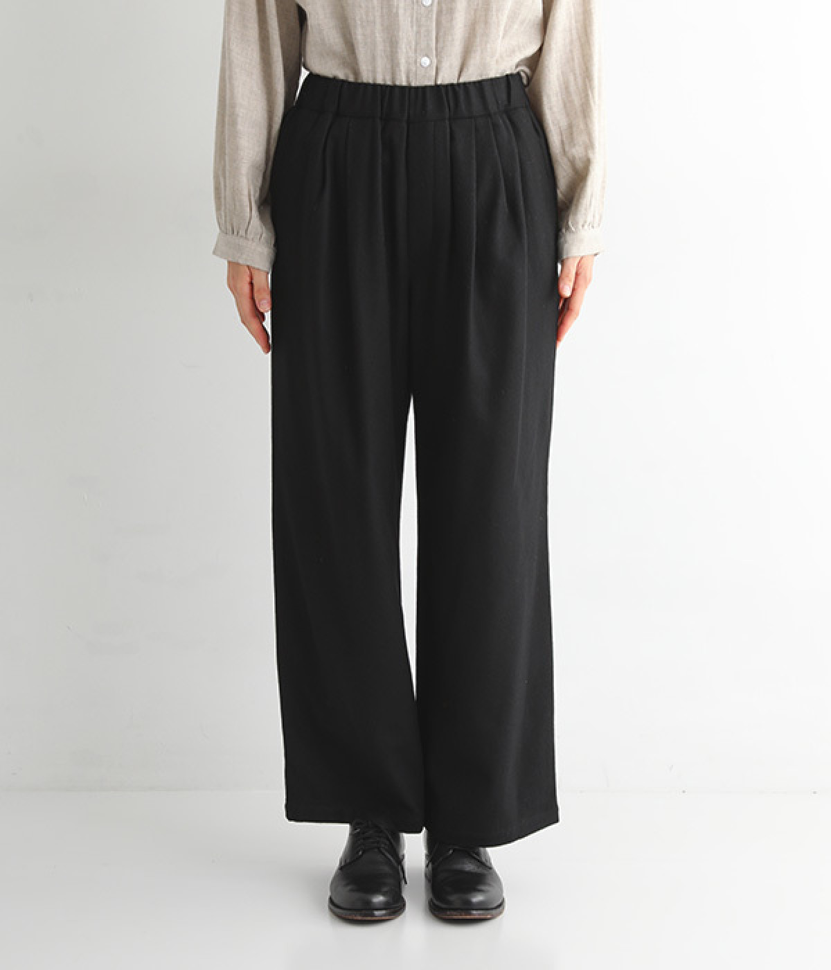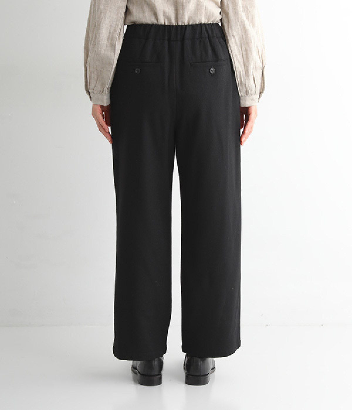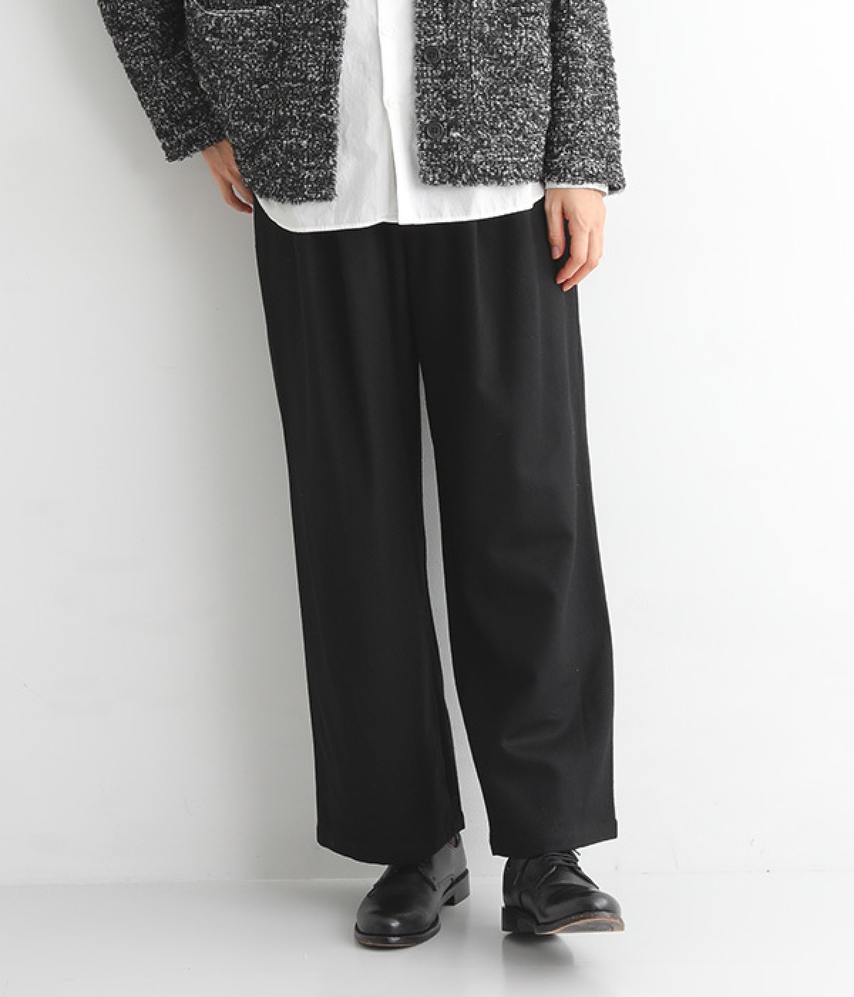 ゆったりと締めつけを感じにくいワイドストレートシルエット