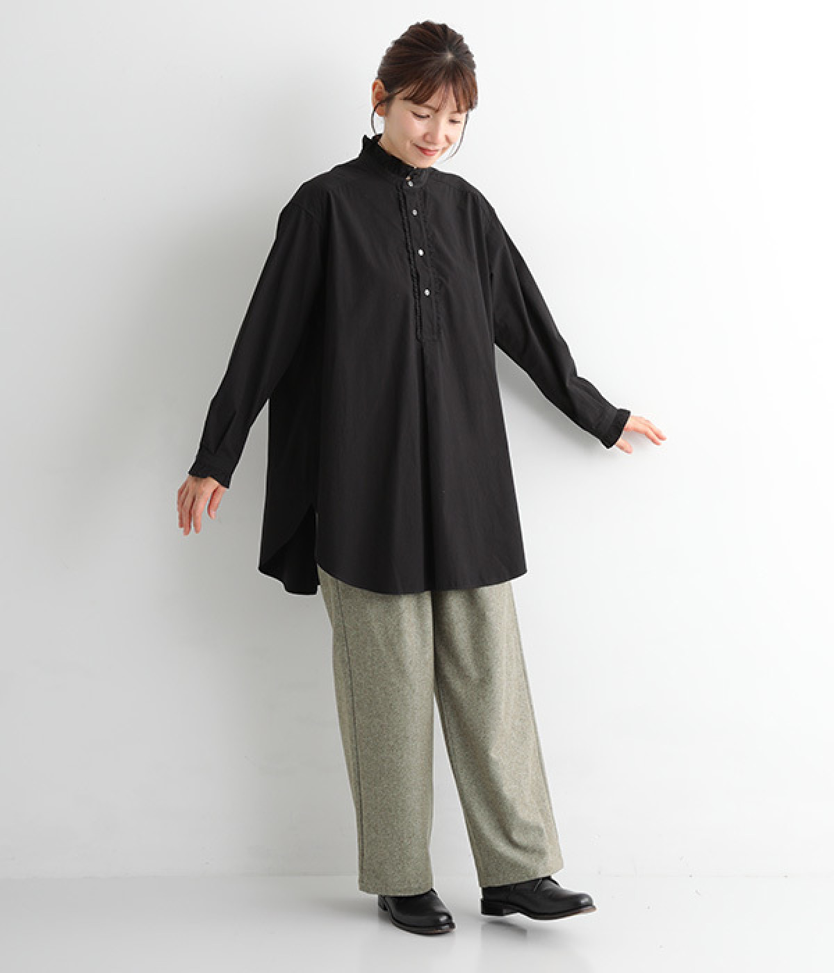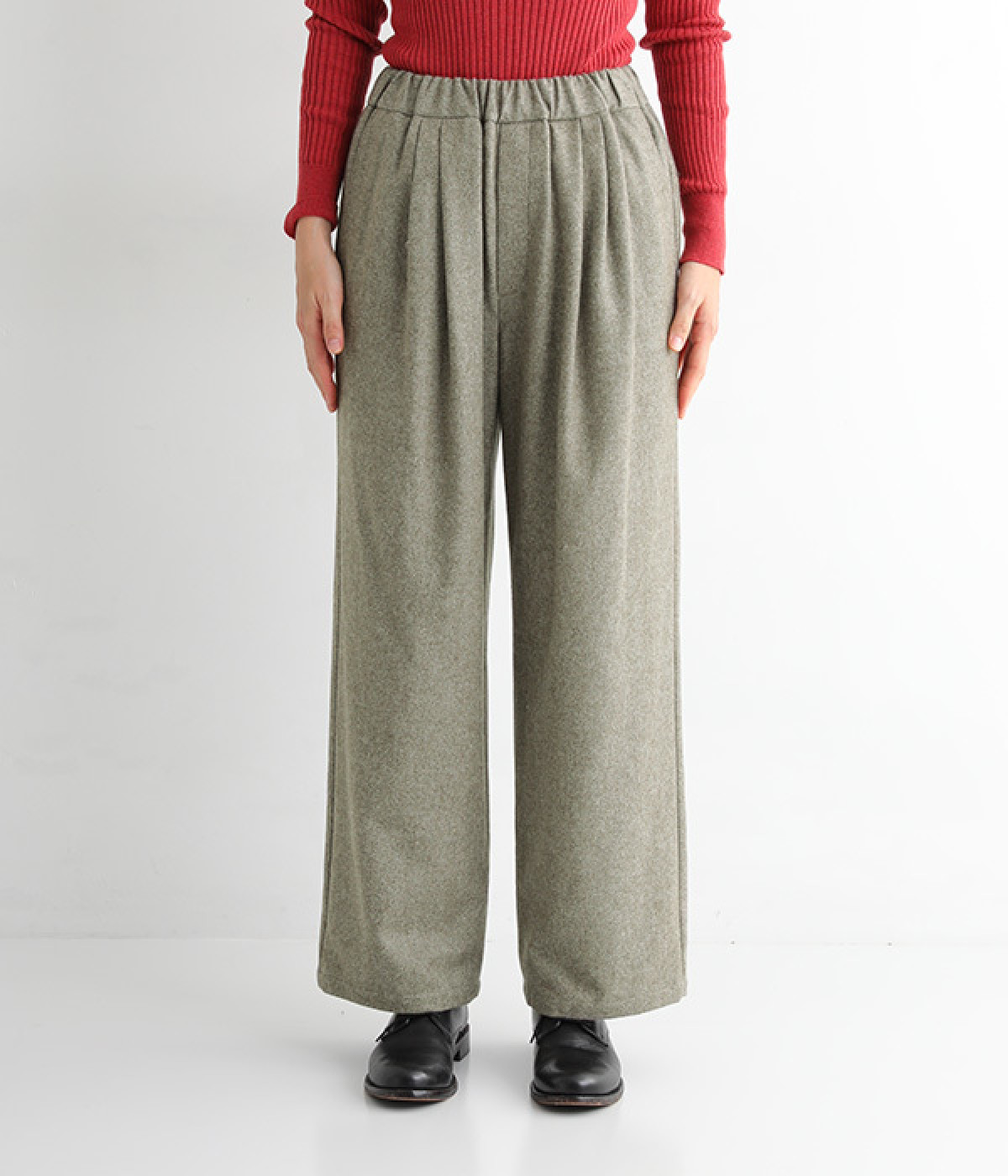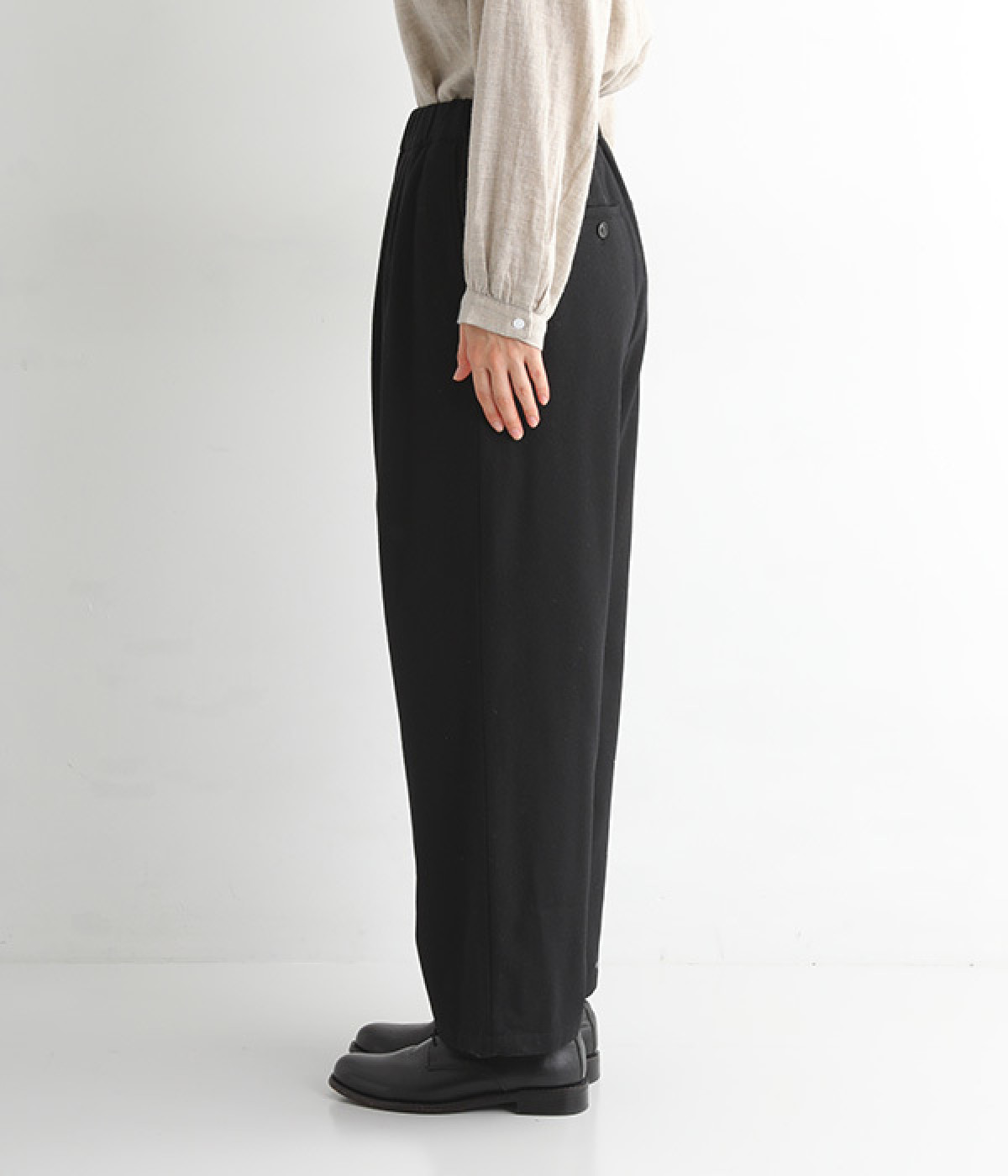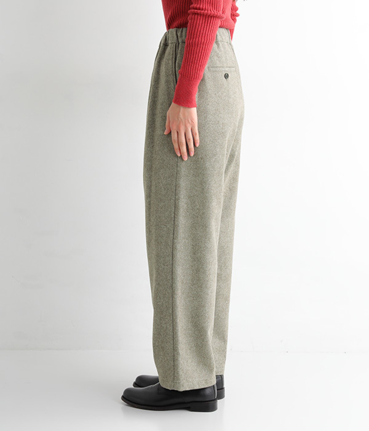 ゆったりと締めつけを感じにくいワイドストレートシルエット