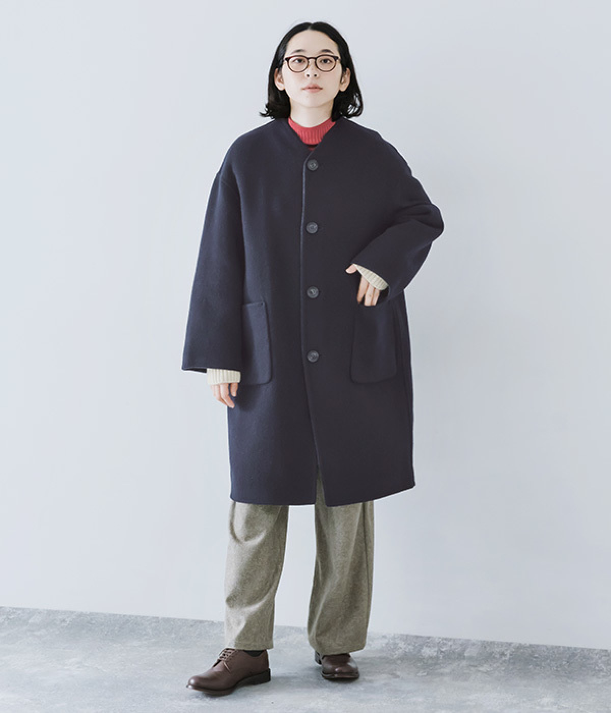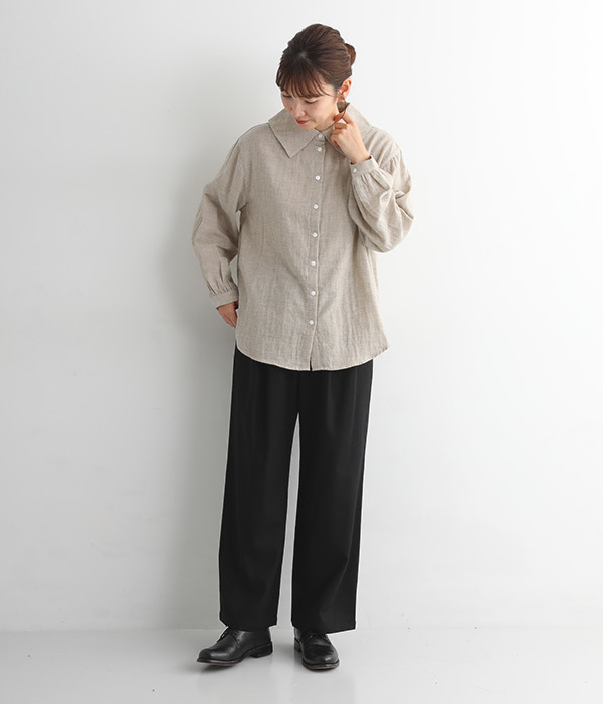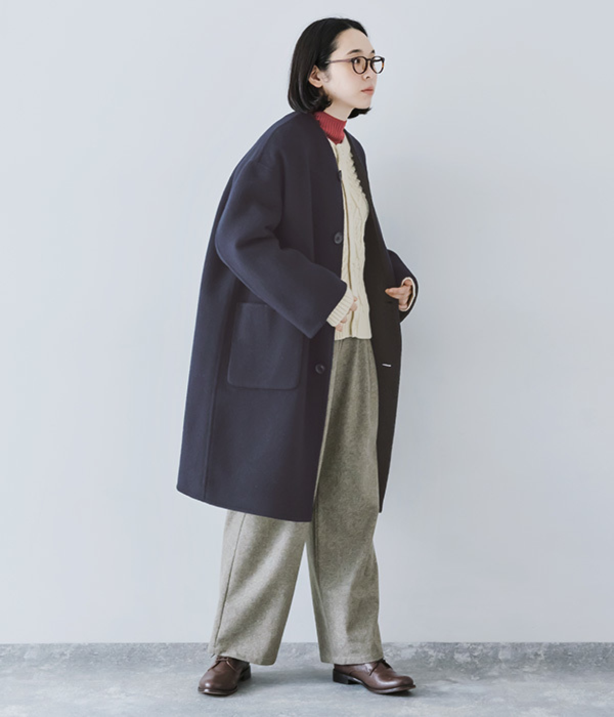 大人の装いにマッチする自然な生地の落ち感