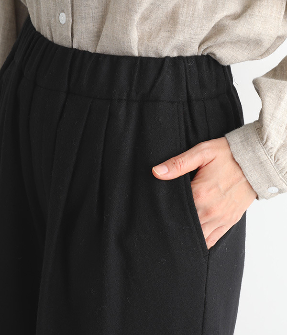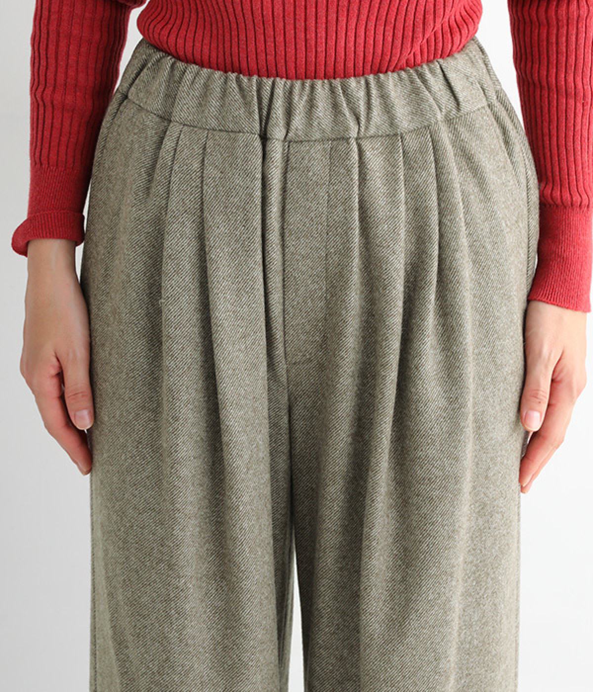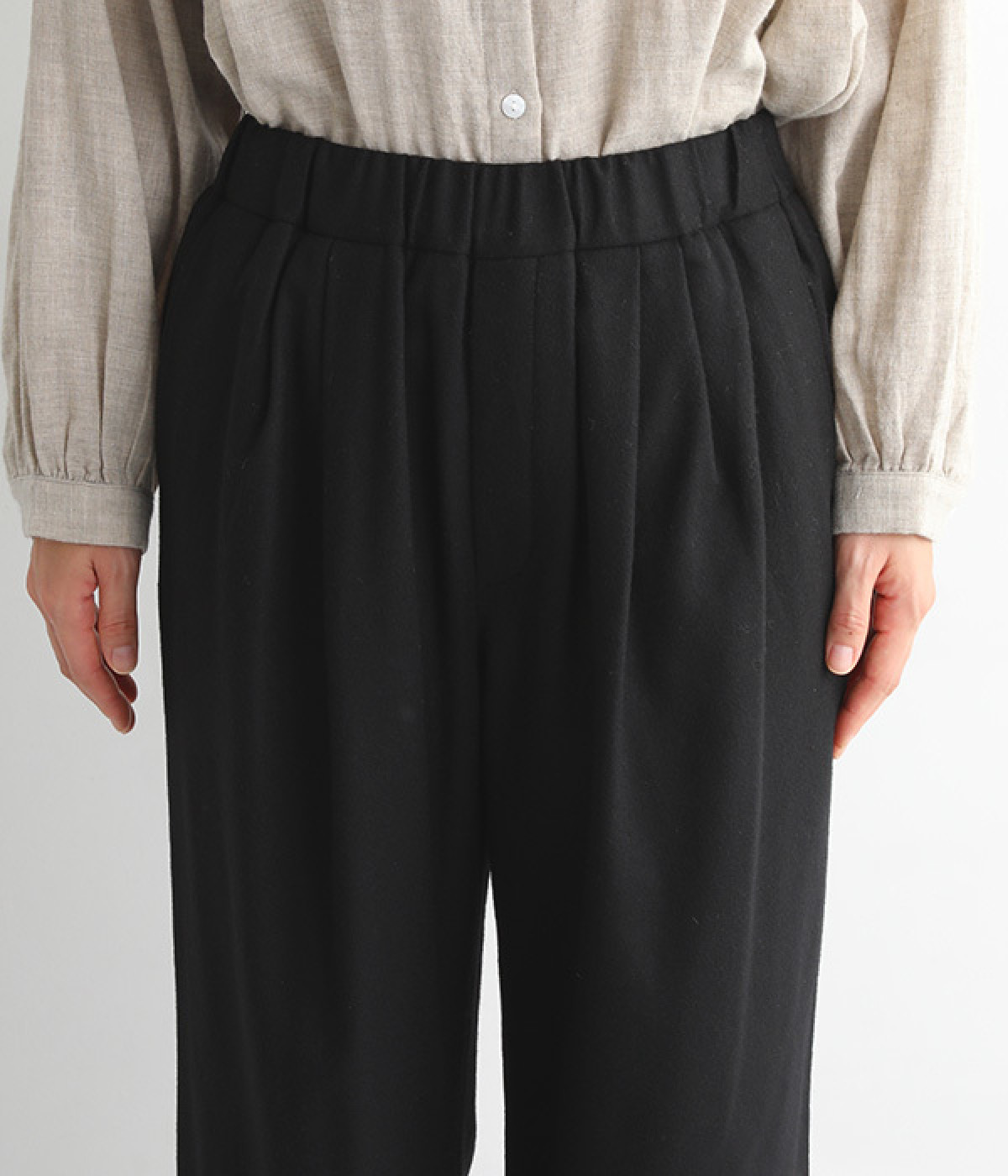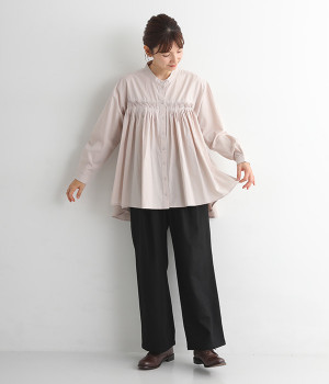 ウエスト前にタックを入れておなかまわりをすっきりと