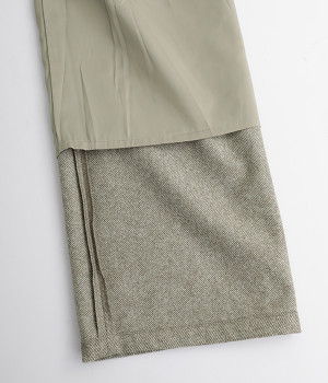ひざのあたりまで裏地をつけて脱ぎはきを簡単に