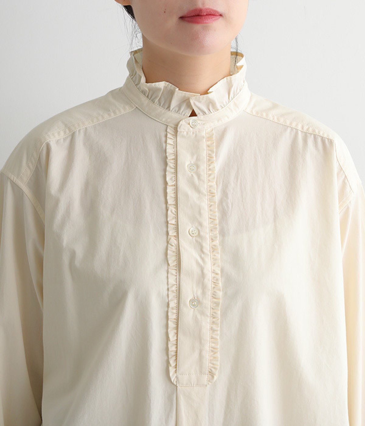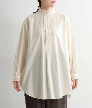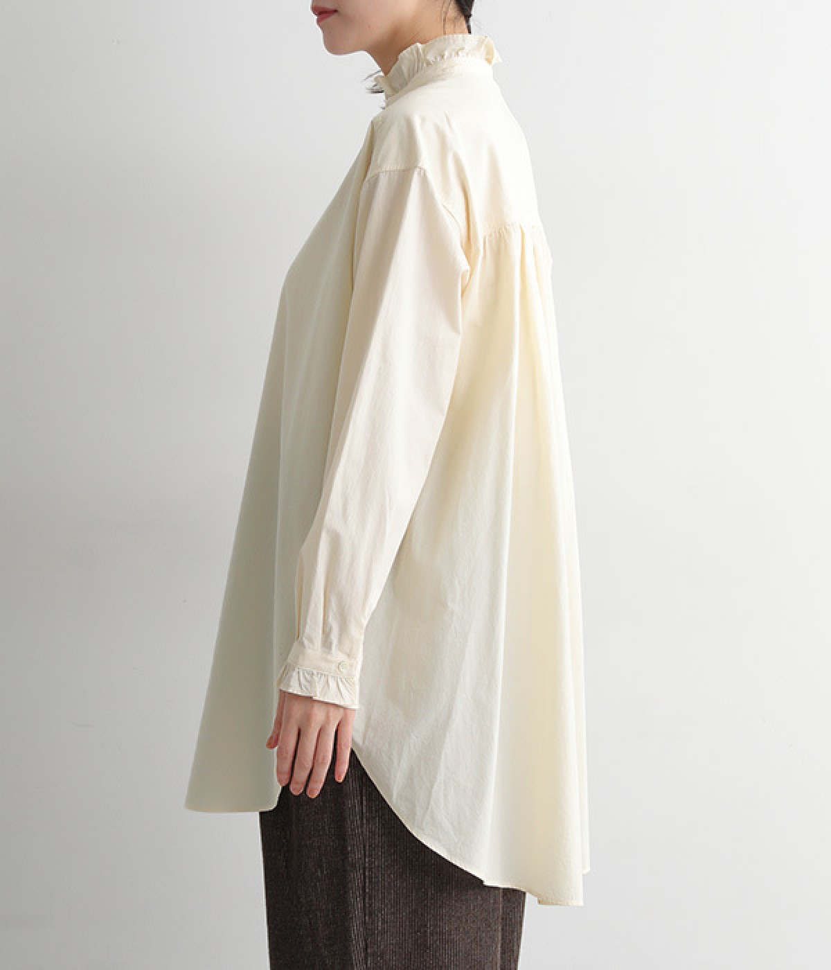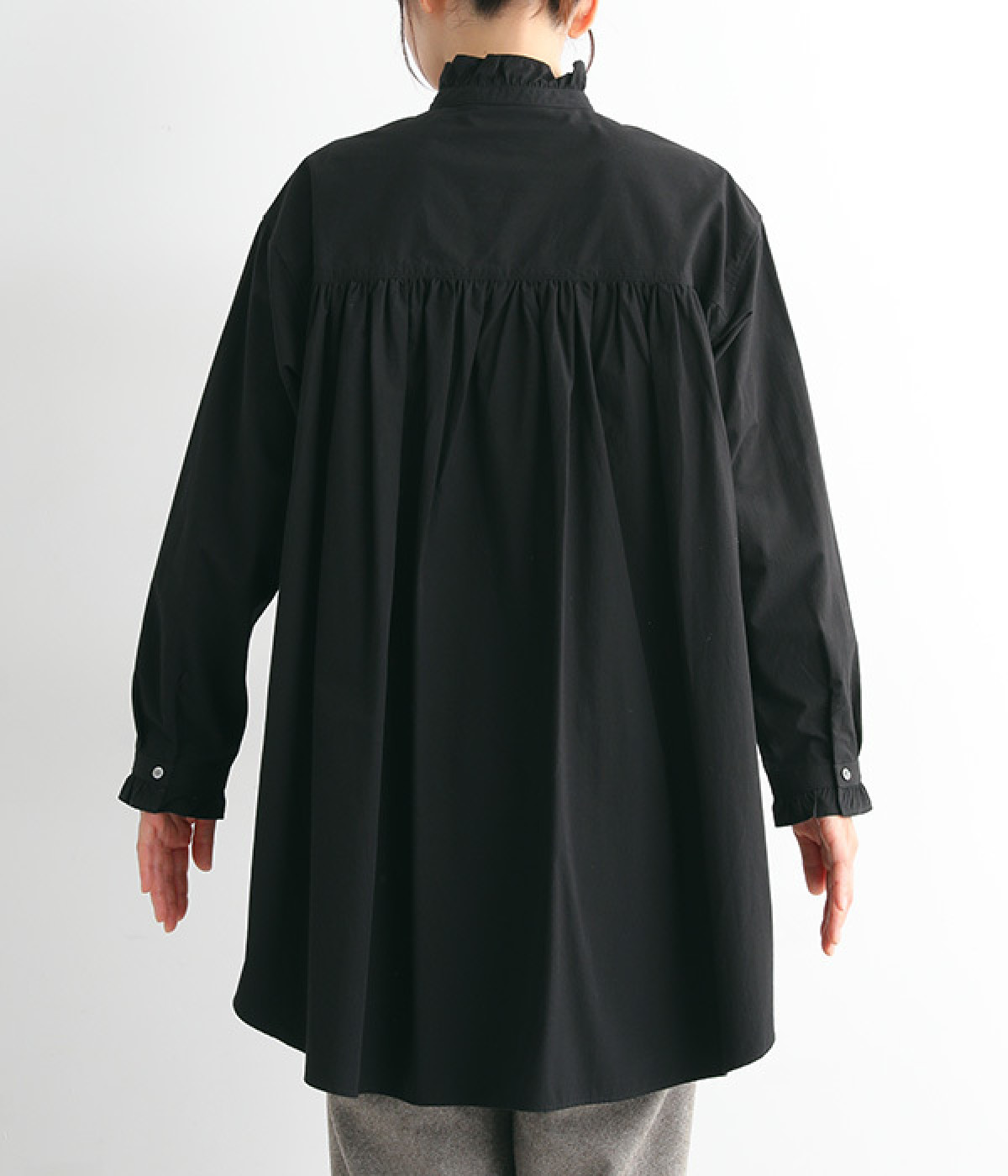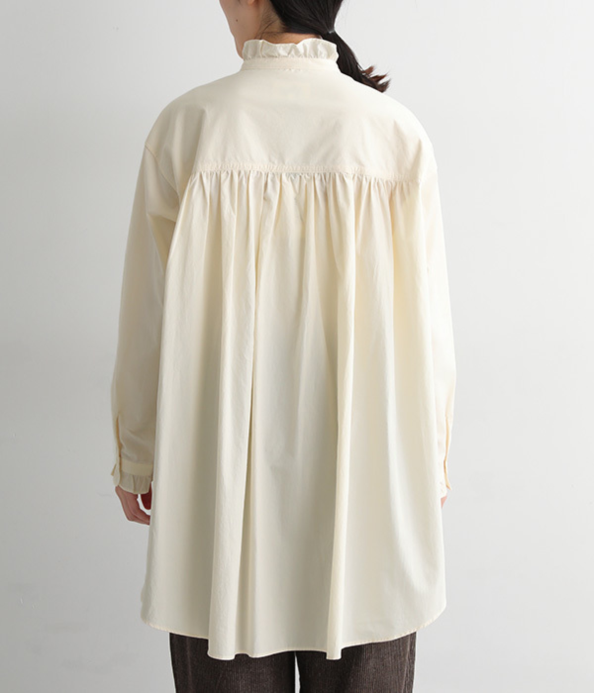 背ヨークにいくつもギャザーを入れ、ふわっとソフトな印象に