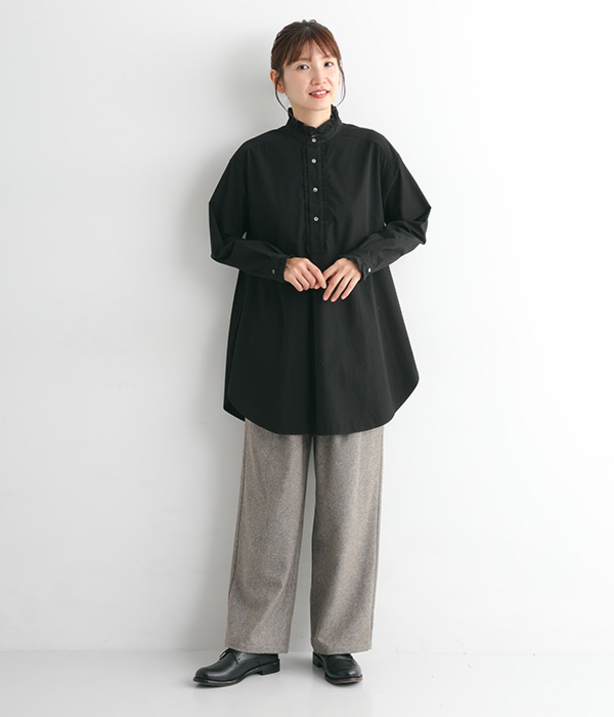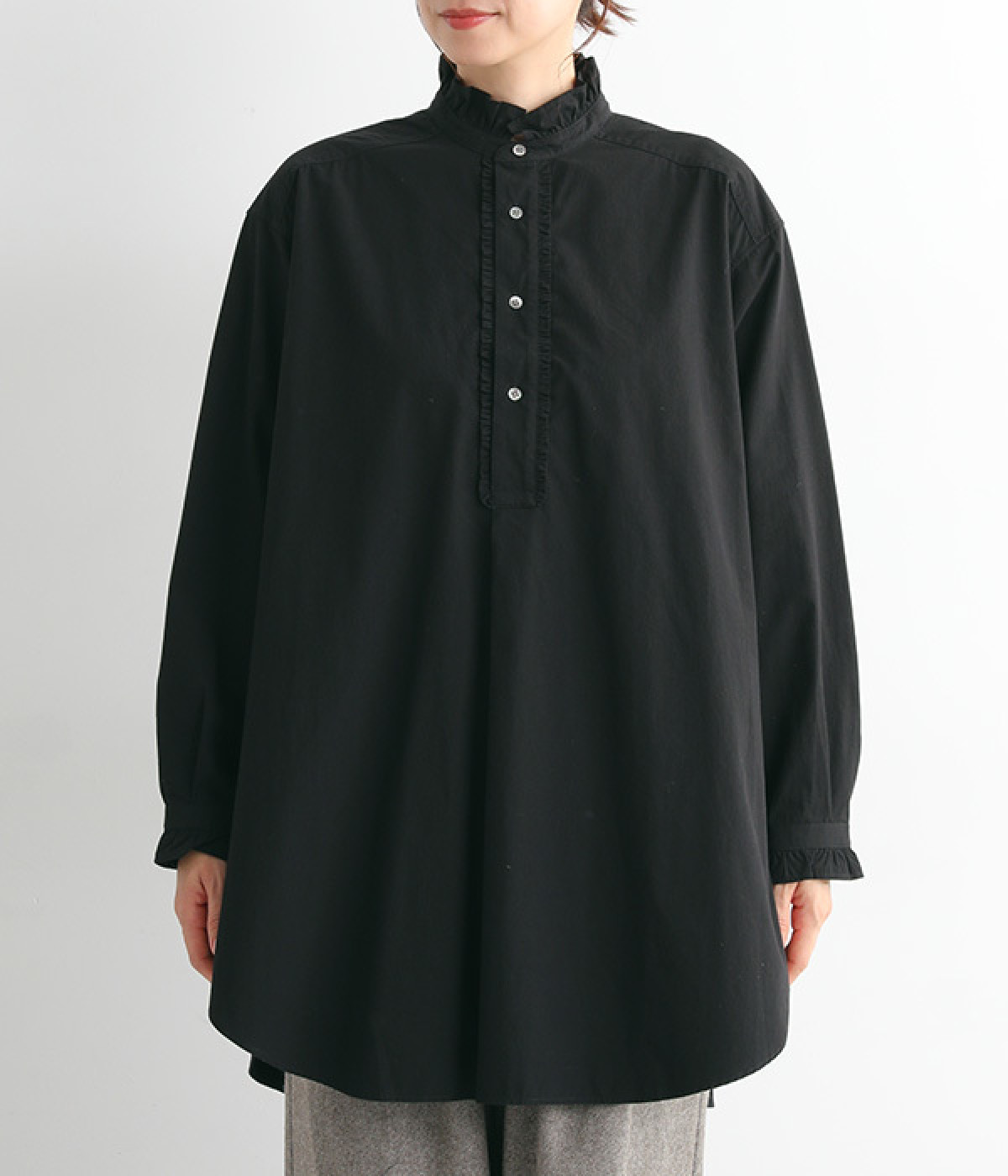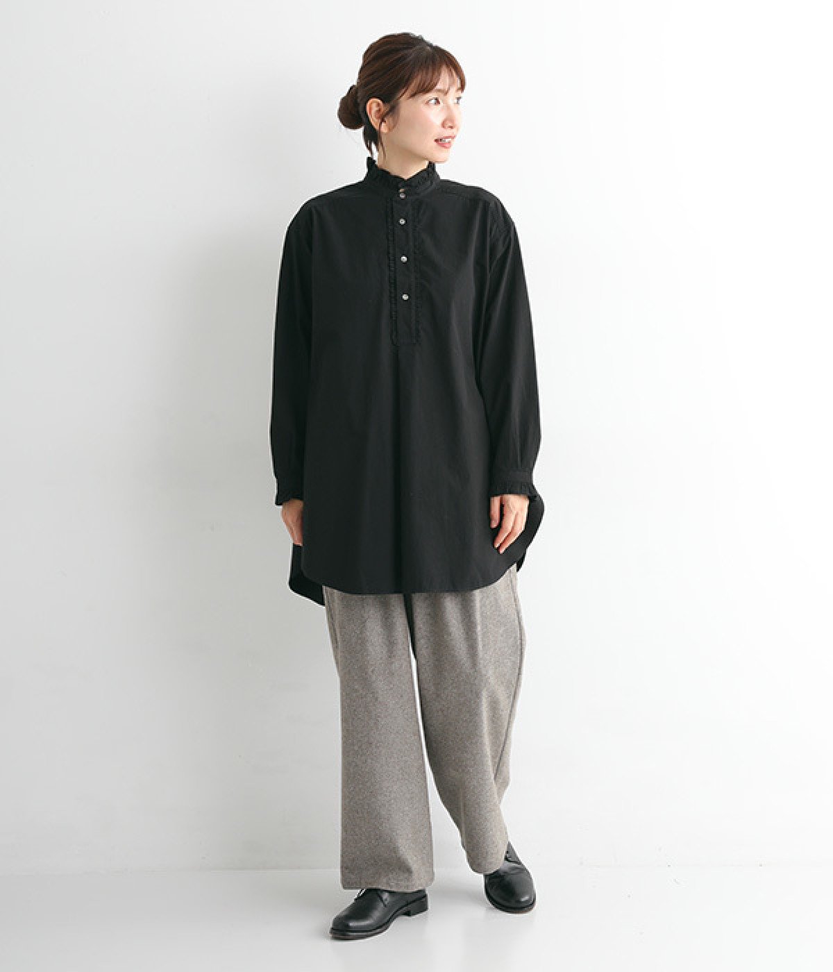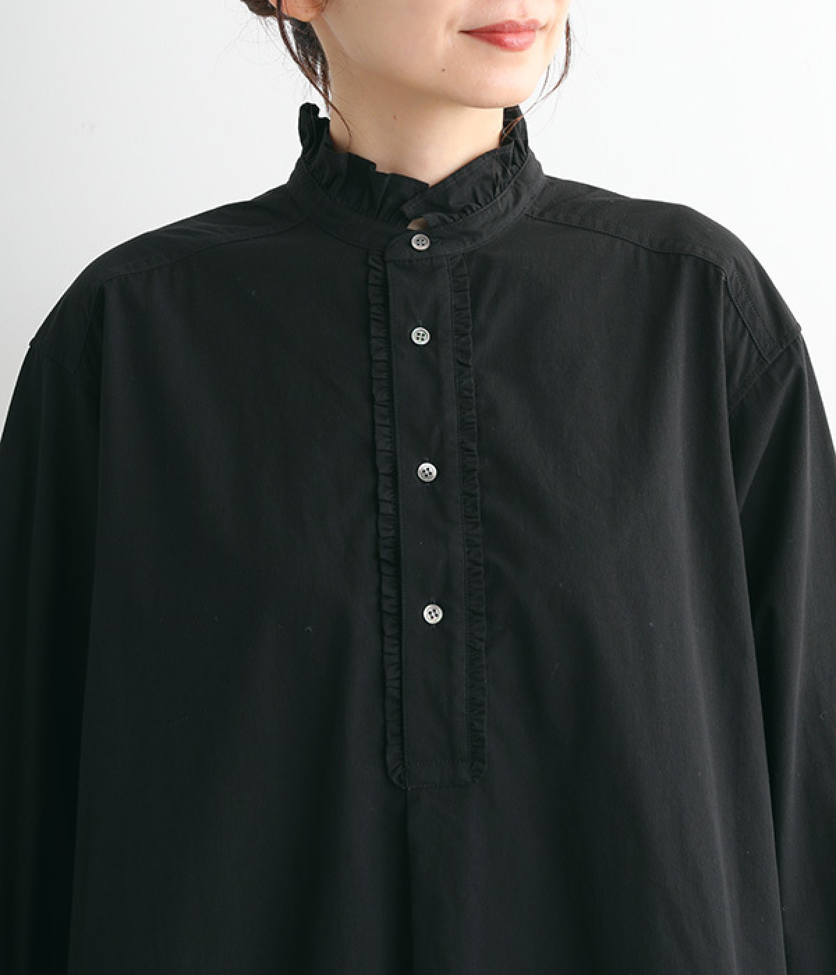 背ヨークにいくつもギャザーを入れ、ふわっとソフトな印象に