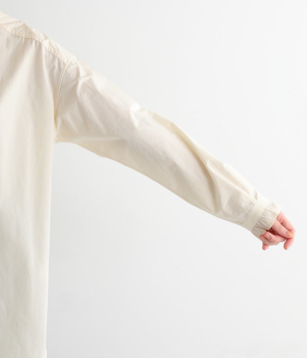 特有のハリが着たときのシルエットをきれいに