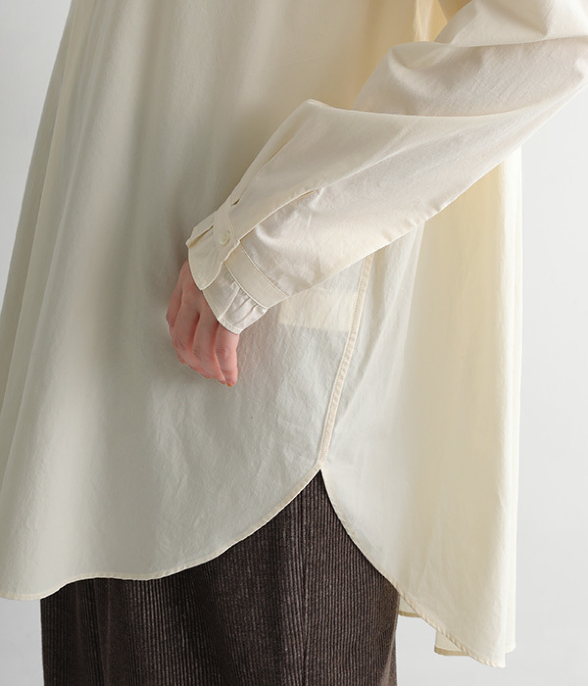 ボトムをおしゃれにのぞかせるサイド裾のラウンドカット