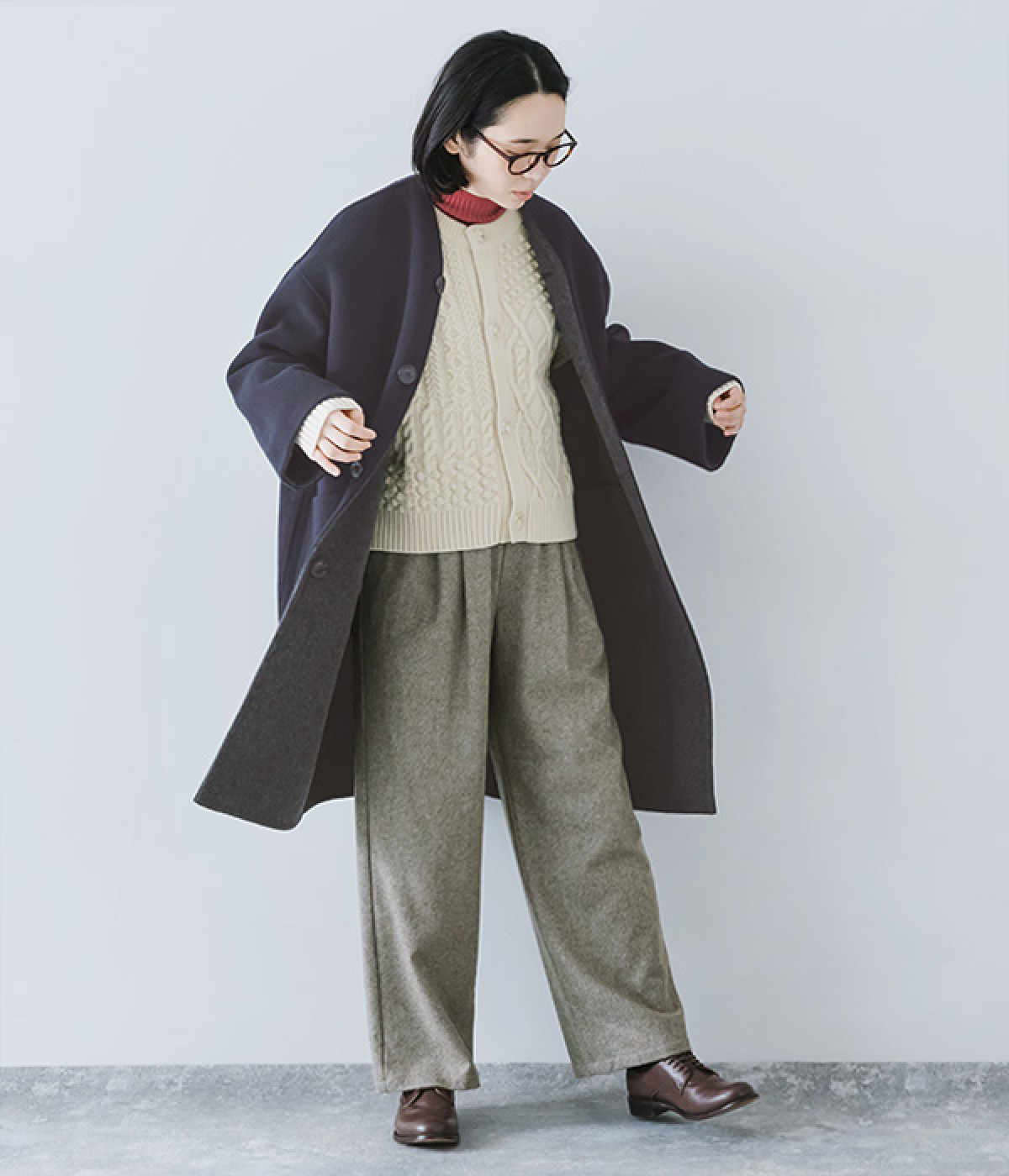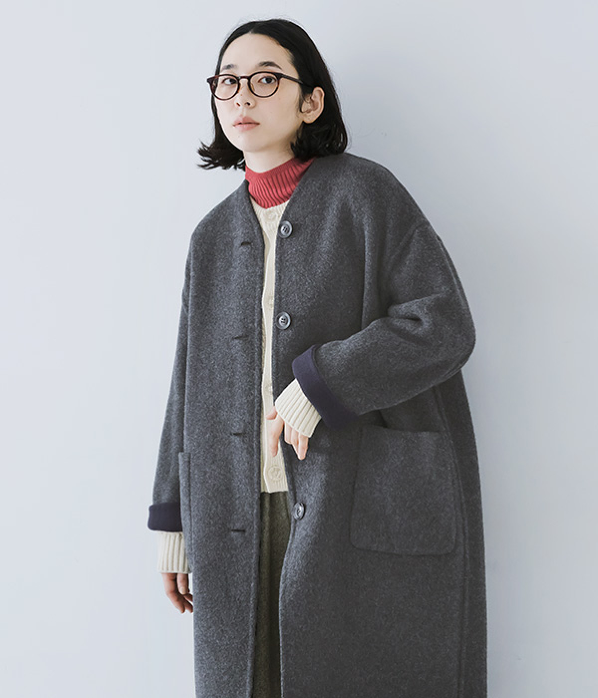 ボタンをすべて留め、コンパクトなセーター風に着ても◎