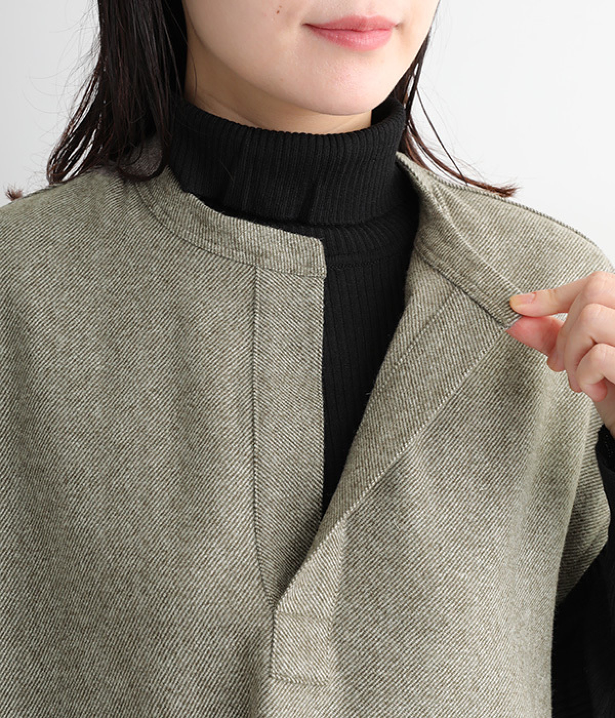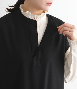 襟ぐりは重なり合うキーネックでデコルテまわりはゆったり