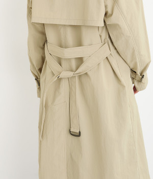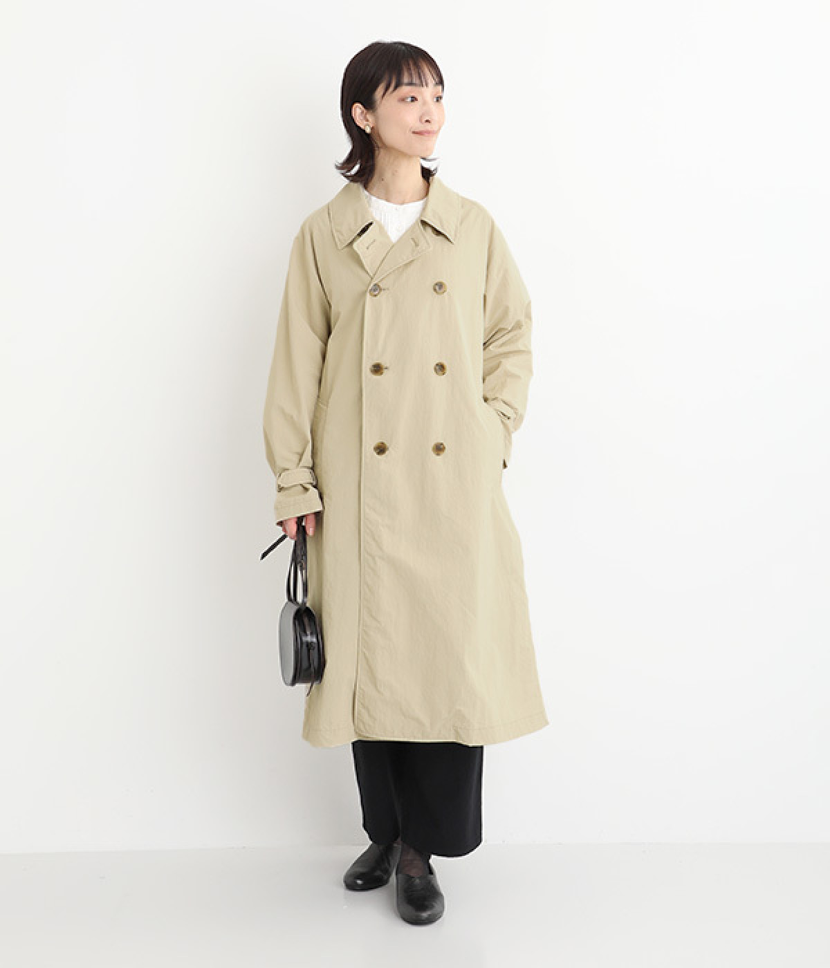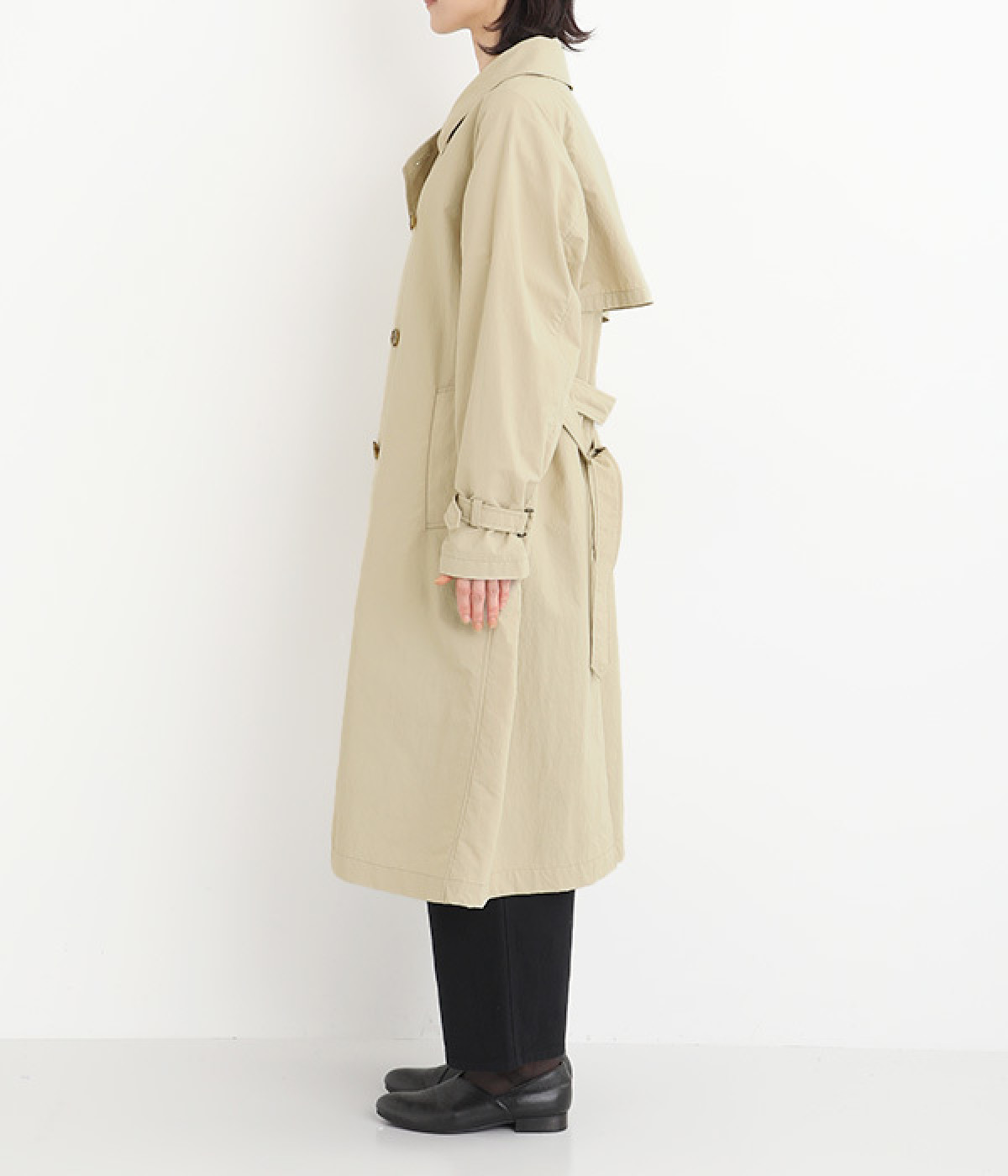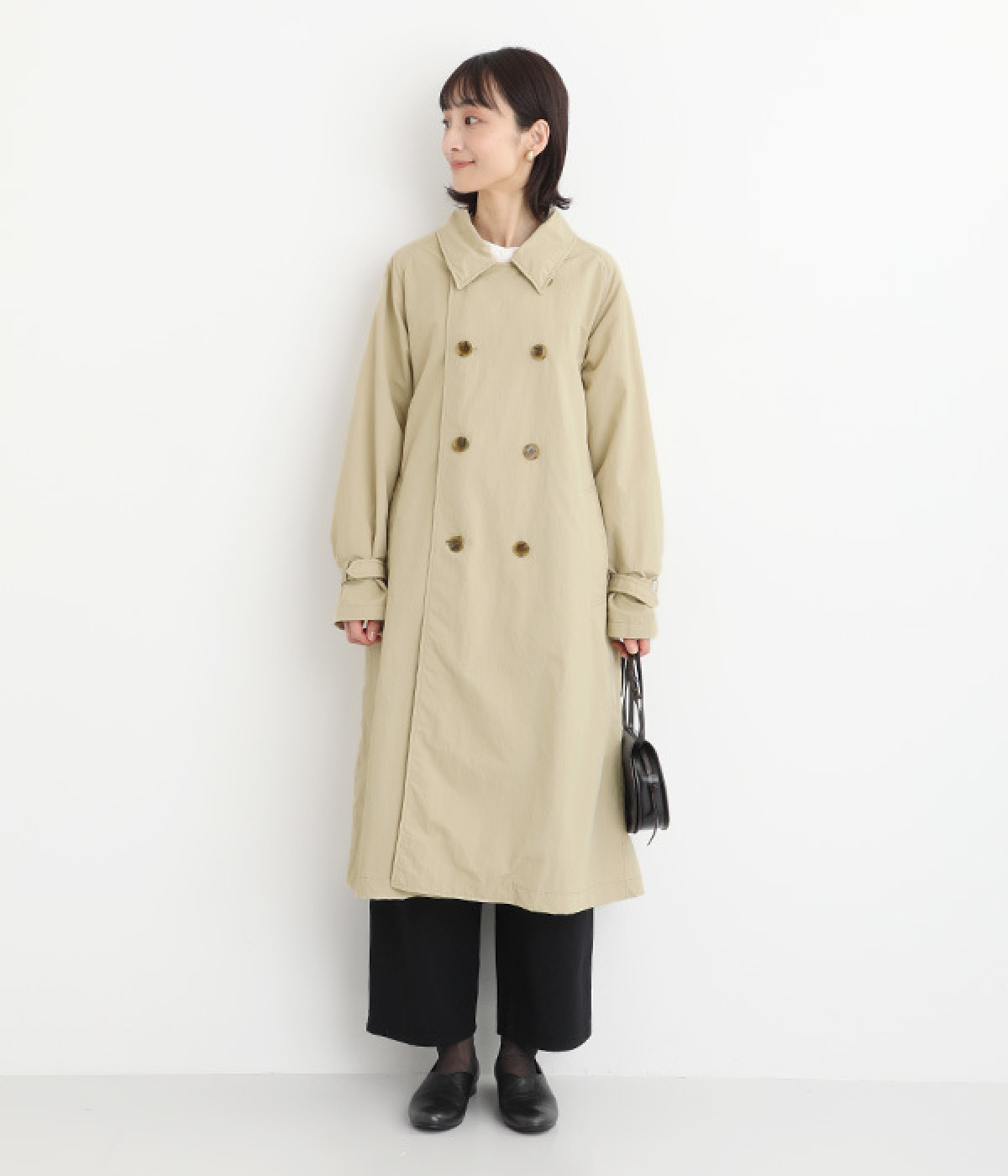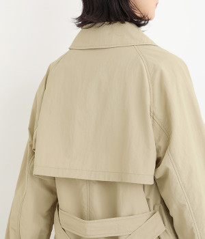ゆったりと着こなせる、こなれ感漂うトレンチコート。腕を動かしやすいラグランスリーブもポイントに。よそいきの着こなしはもちろん、前をあけてラフに羽織って合わせるのもおすすめな一枚です。