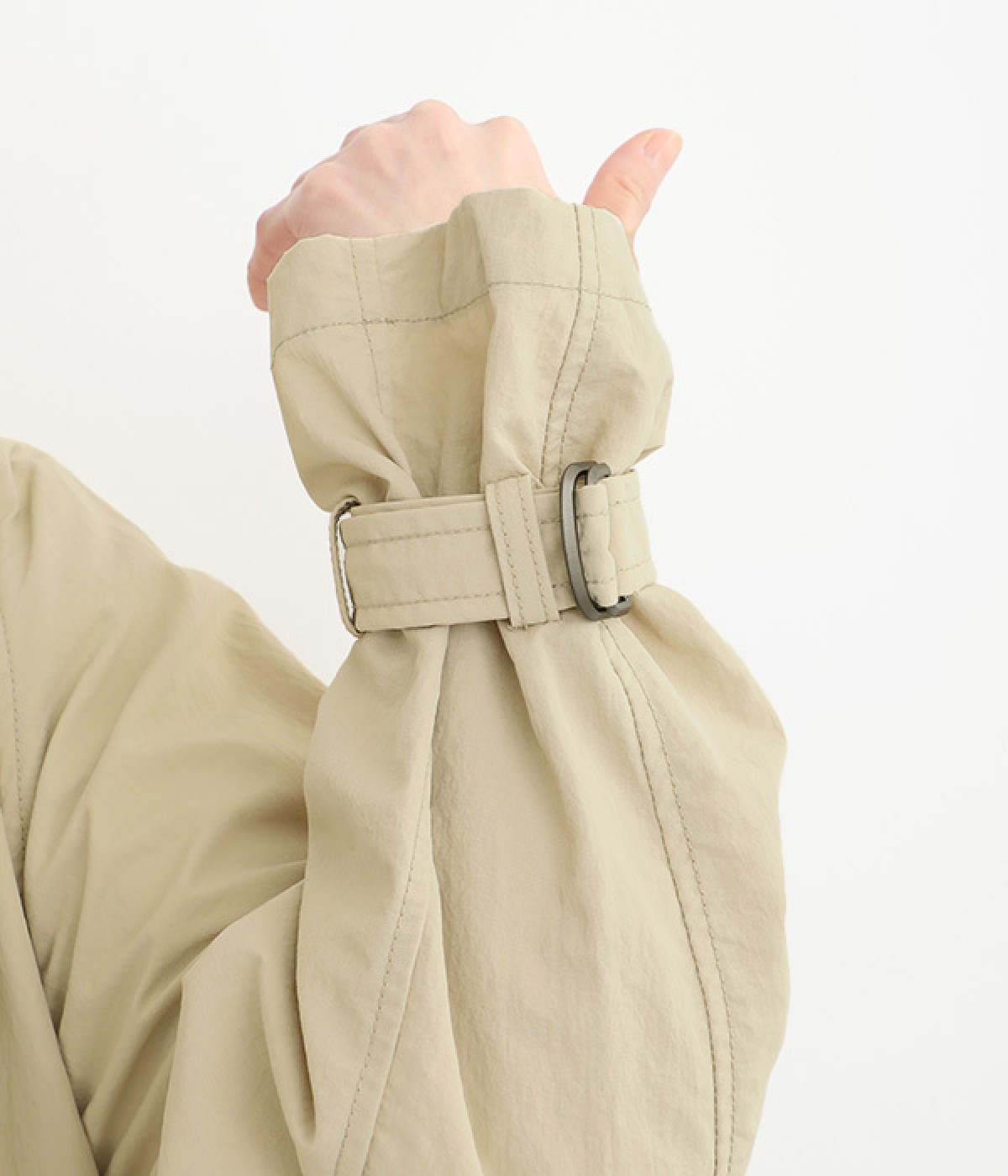 撥水加工をほどこした、軽量のナイロン生地を使用しています。しっかりと陰影のつく生地は、シャリ感があり軽量で爽やかな質感です。