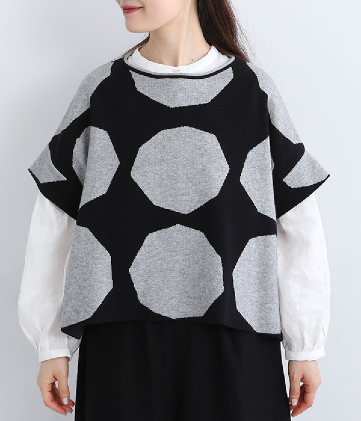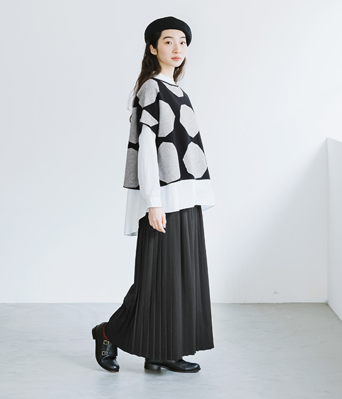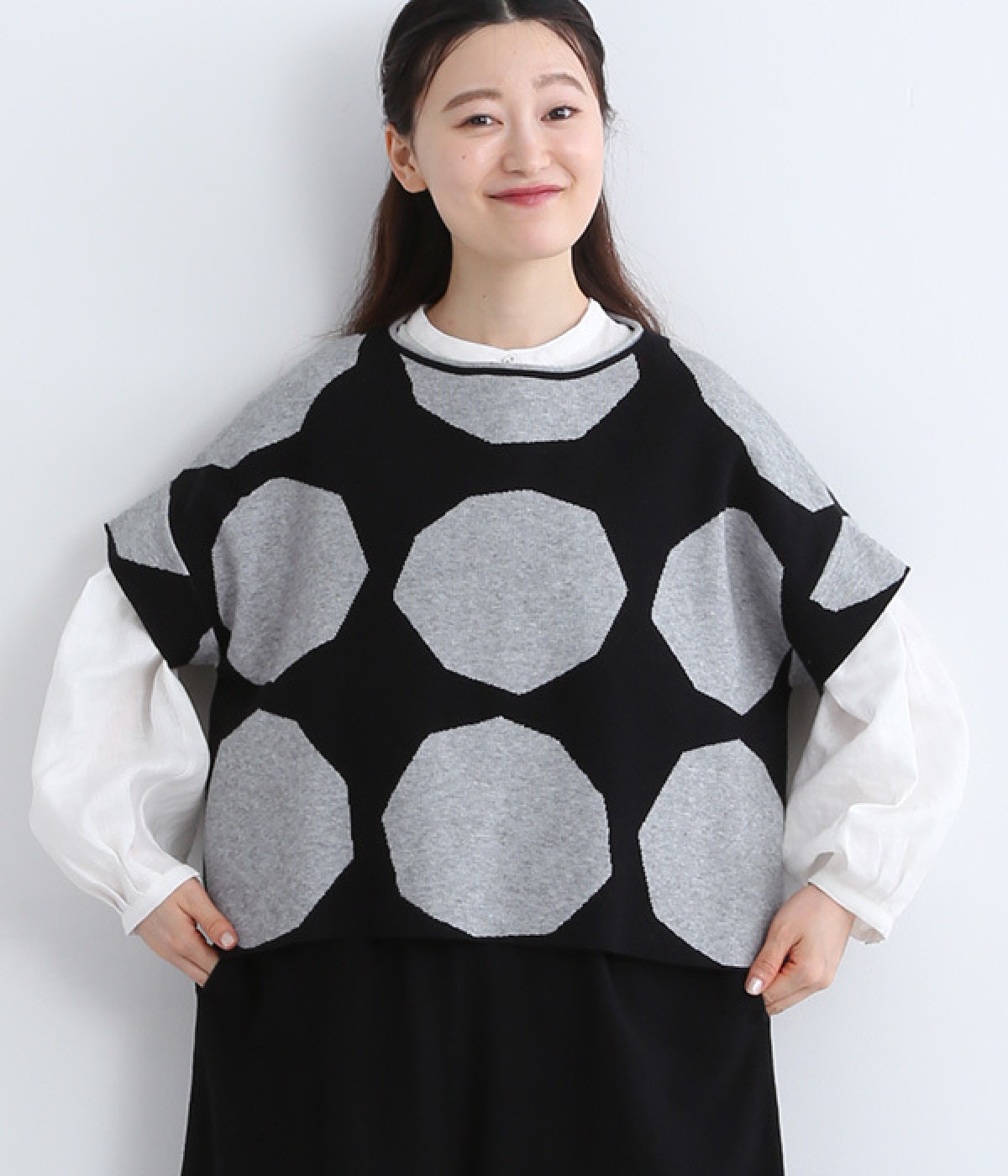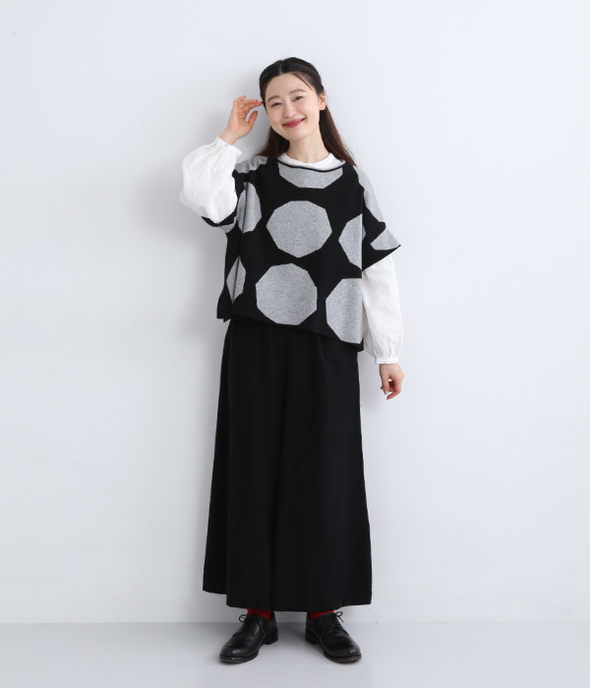 やや角張ったドットが新鮮味のある着こなしを完成