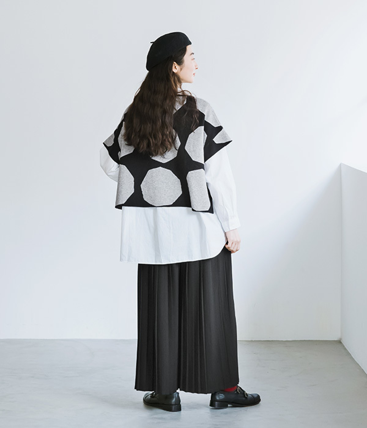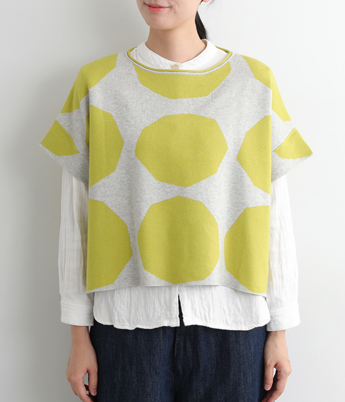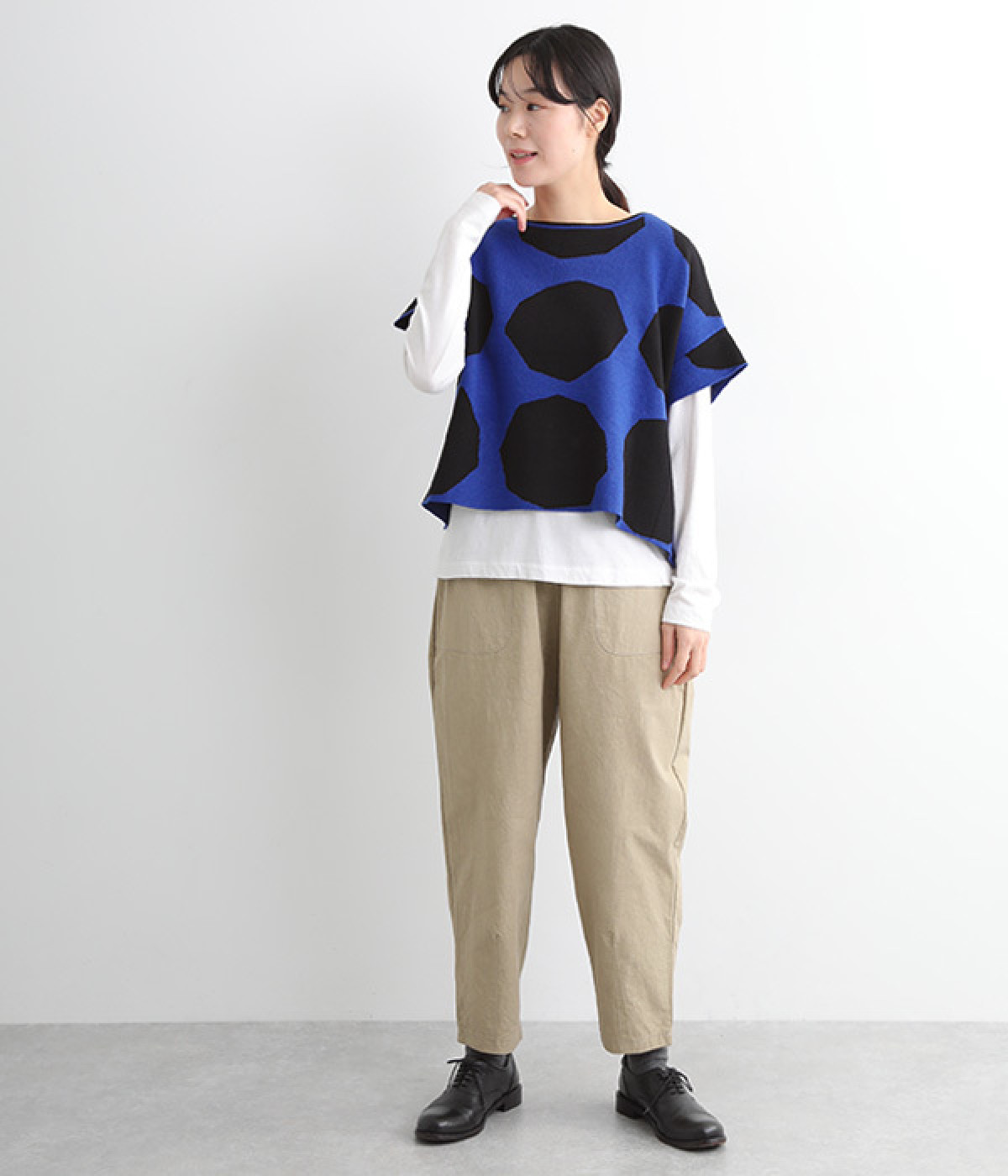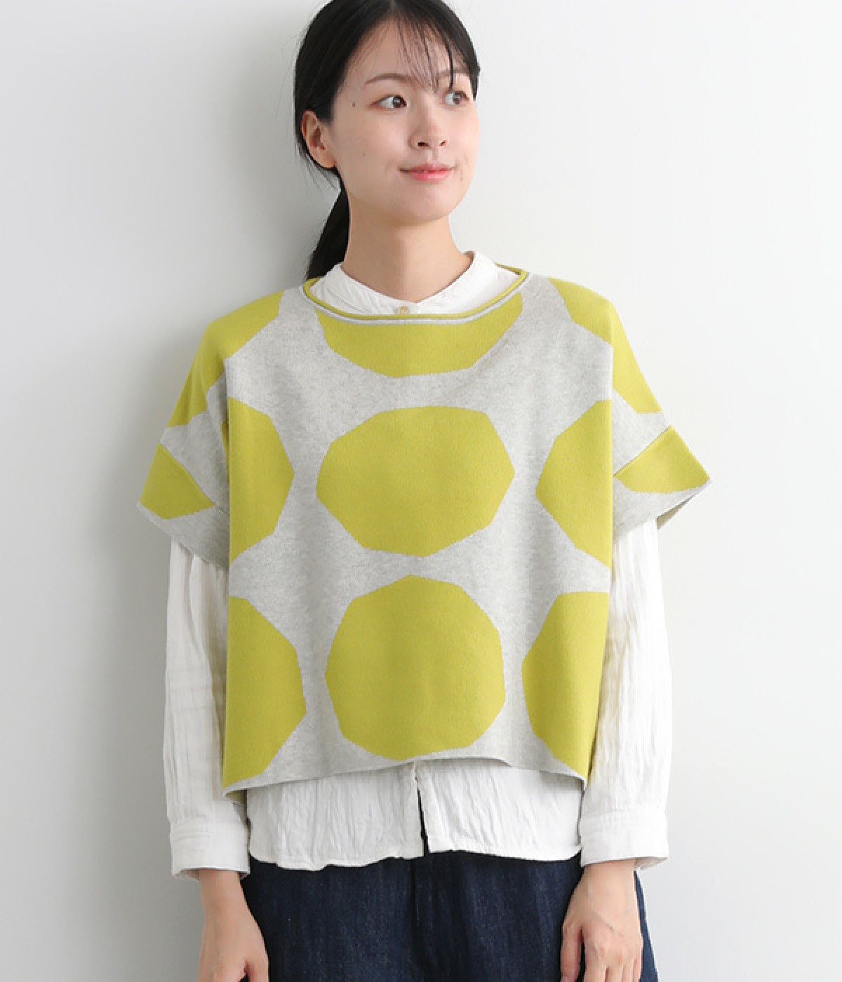 やや角張ったドットが新鮮味のある着こなしを完成