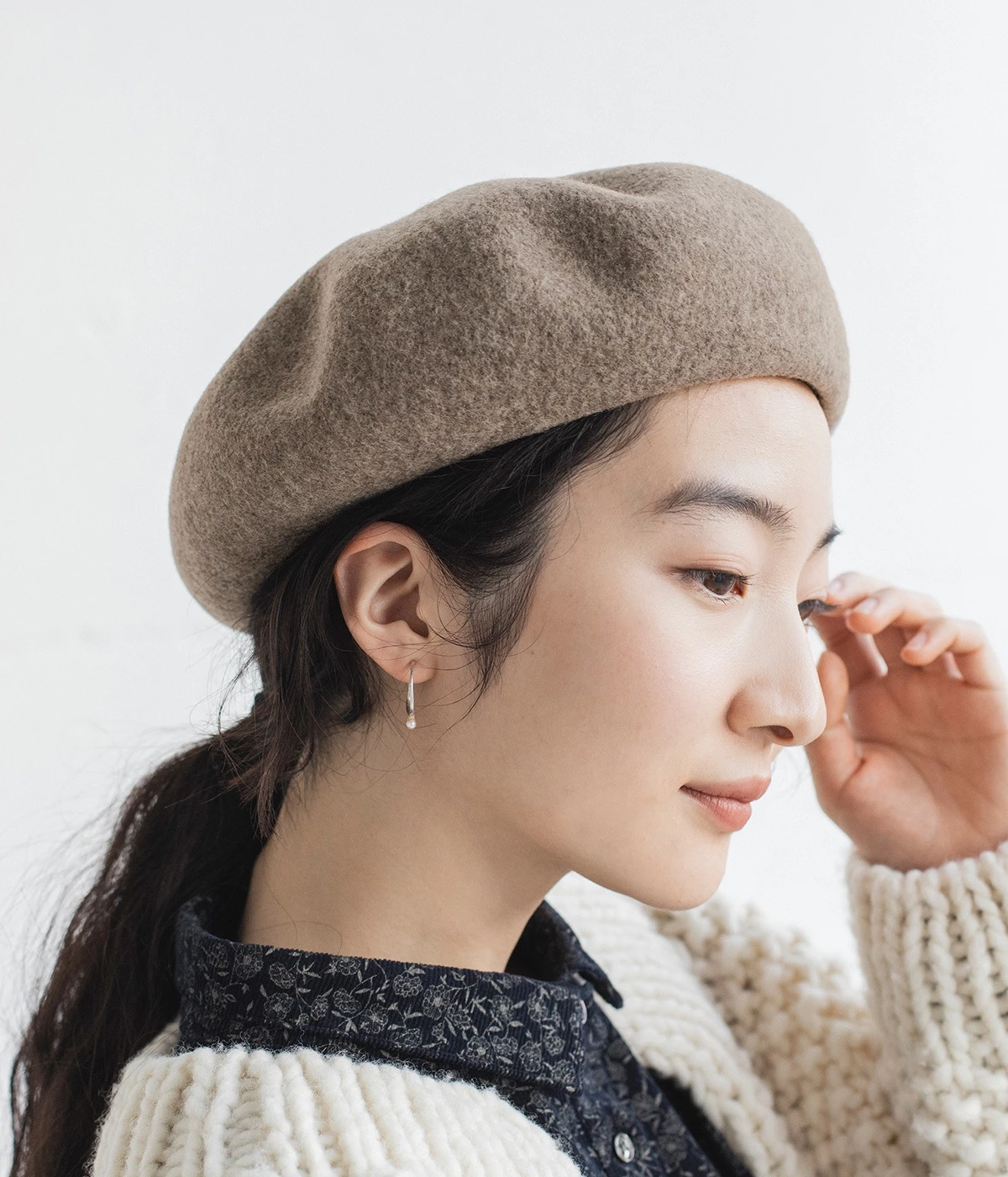 丸みのあるシルエットが愛らしいベレー帽です。深さのあるトーク帽のようなシルエットが特徴。トップ部分にちょこんとついたチョッポがアクセントです。肉厚でしっかりとした高級感のあるフェルトは、高品質なオーストラリアのエクストラファインウールを国内で紡績したもので、素材からこだわったメイドインジャパンの逸品です。洋服に合わせやすい落ち着いたカラーが、秋冬のコーディネートのポイントに。