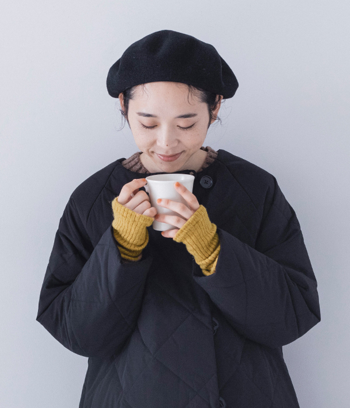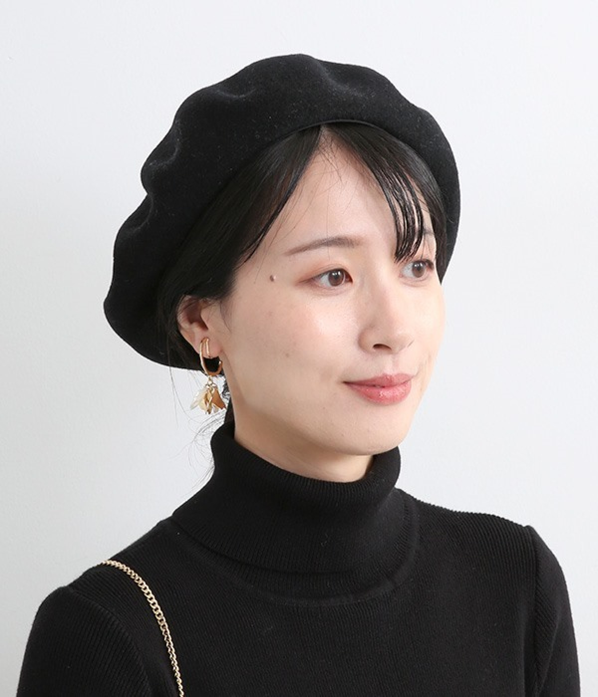シンプルな中にも個性を演出できる、ニュアンスたっぷりのベレー帽。頭頂部をつまんで5つに割れるようにタックを付け、かぶると立体的なドレープが生まれるのが特徴的です。繊維が細くなめらかで、チクチクしにくいエクストラファインウールの上質な風合いも◎。日本製の仕立ての良さが感じられ、デイリーに使いたくなるアイテムです。