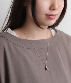 以前に生産終了となったうさぎリンゴネックレスが、よりリンゴらしいカラーにリニューアルされて登場です。真っ赤な皮と、蜜がたっぷり詰まっていそうな黄色い実がおいしそう。うさぎの形にカットされたリンゴは、どこか懐かしい気持ちにさせてくれます。華奢なチェーンにもさりげない主張があり、スタイリングを印象的に仕上げてくれます。