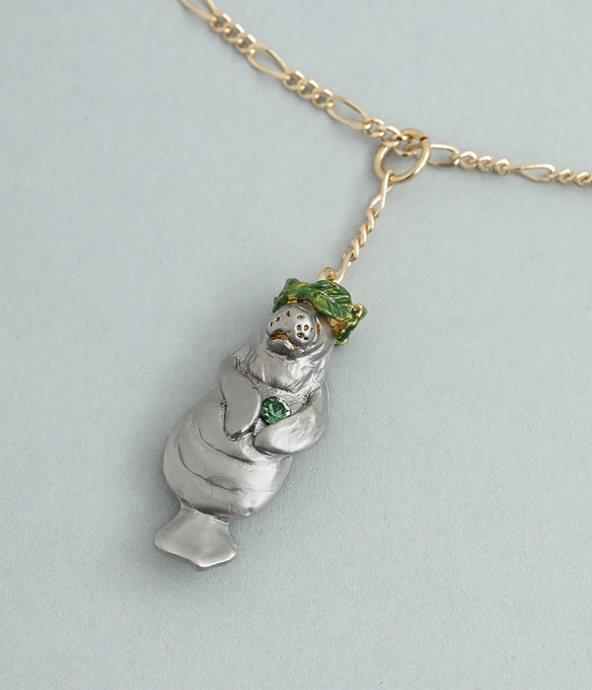 マナティーの頭上にレタスや小松菜などがぷかぷか浮かぶ様子を表現
