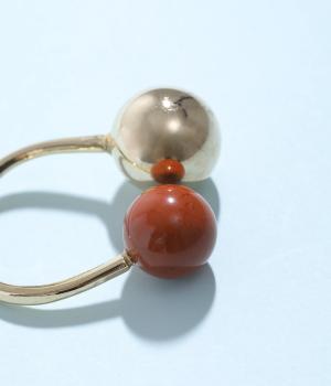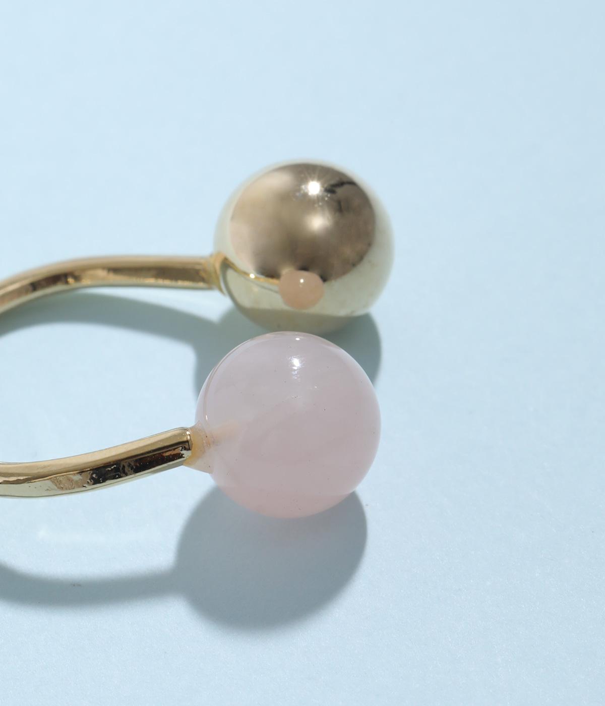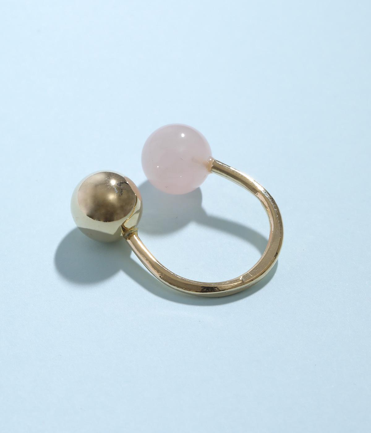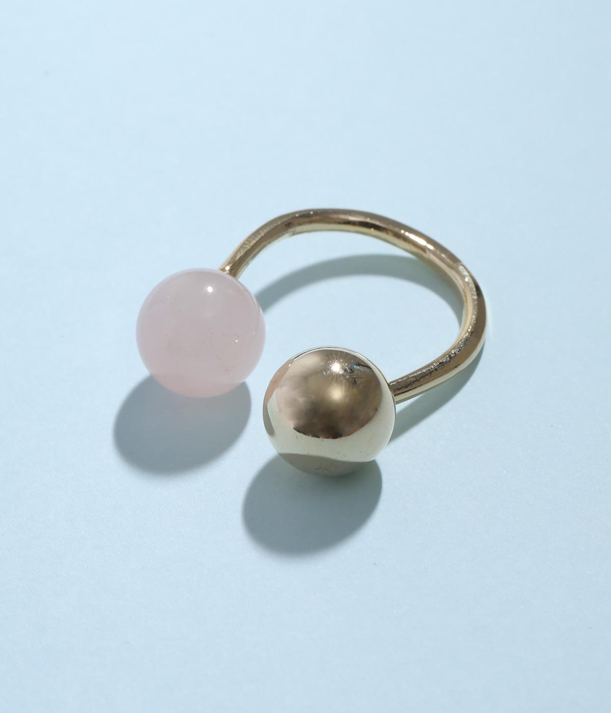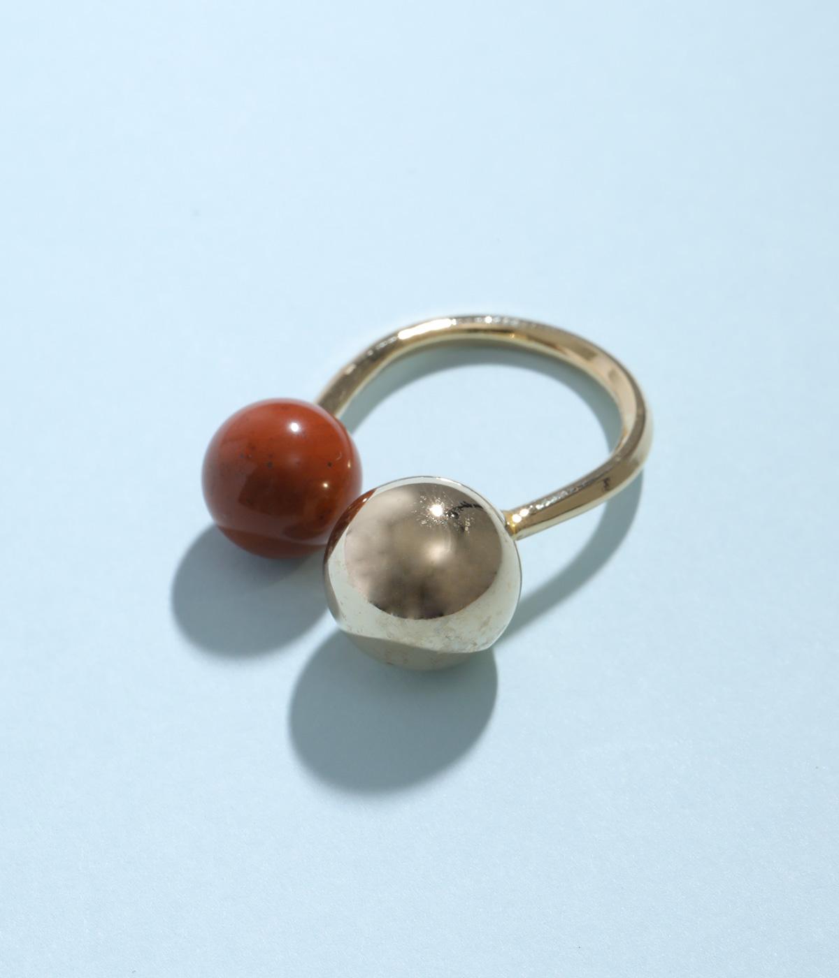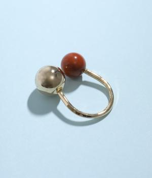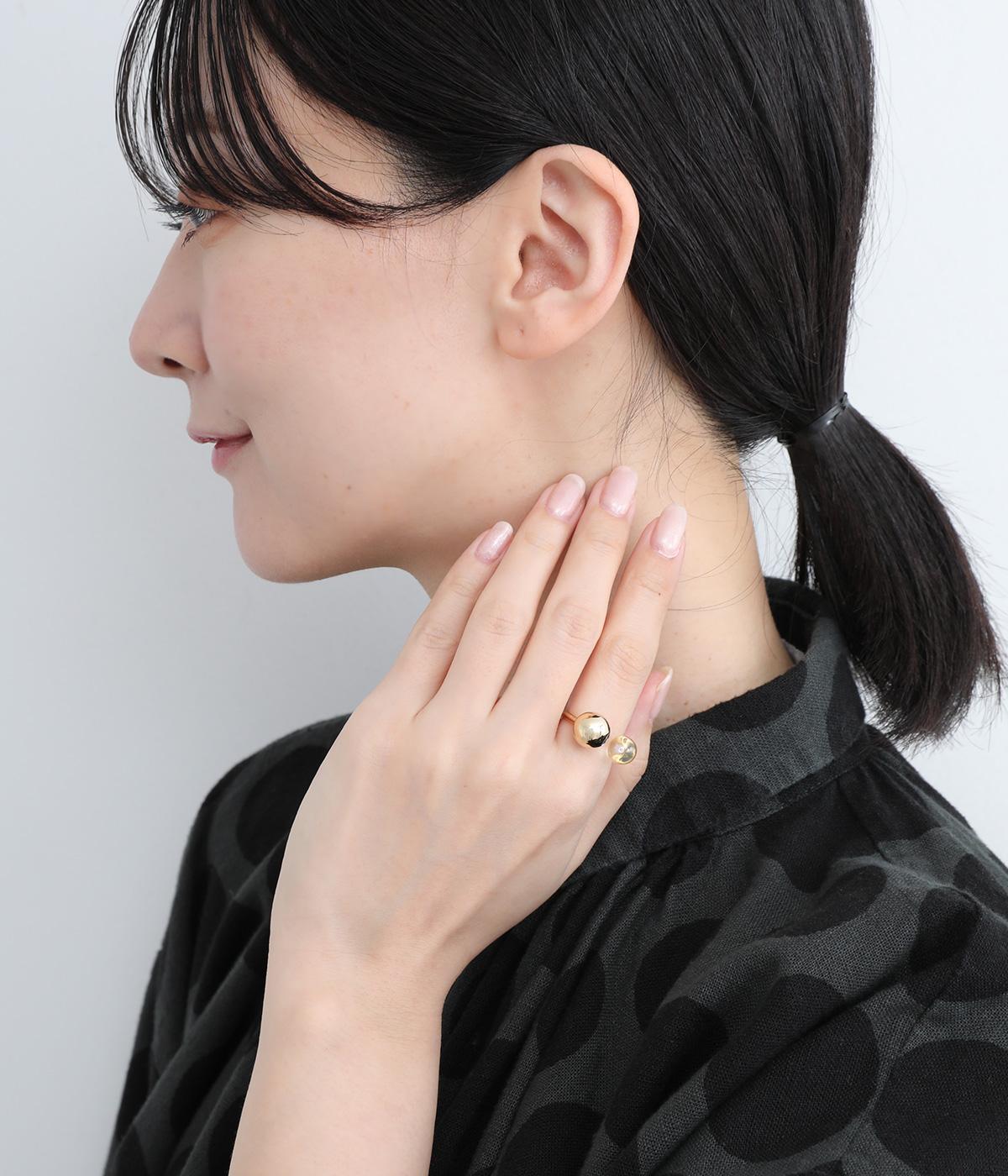 天然石とメタルボールを組み合わせたボリュームたっぷりのリングです。手作業で曲げて作成された、ぬくもりのある佇まいが魅力。お守りのように、デイリーに身につけたくなるアイテムです。
