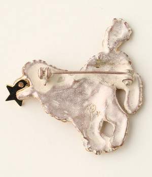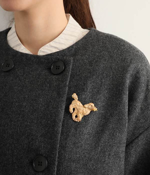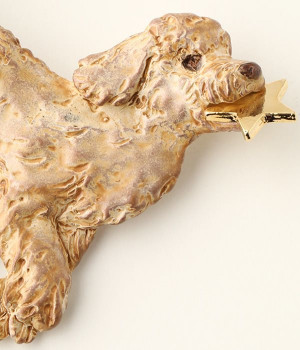星を捕まえて上機嫌なスタンダードプードルのブローチ。まるで、見て見て!と自慢しに来たようです。ふわふわの毛並みを思いっきり撫でてみたくなるアイテム。プードルのふわふわ感が、繊細な技術で見事に表現されています。存在感のある大きめのモチーフなので、大判のストールやトートバッグなどにつけてアクセントにして。