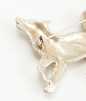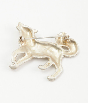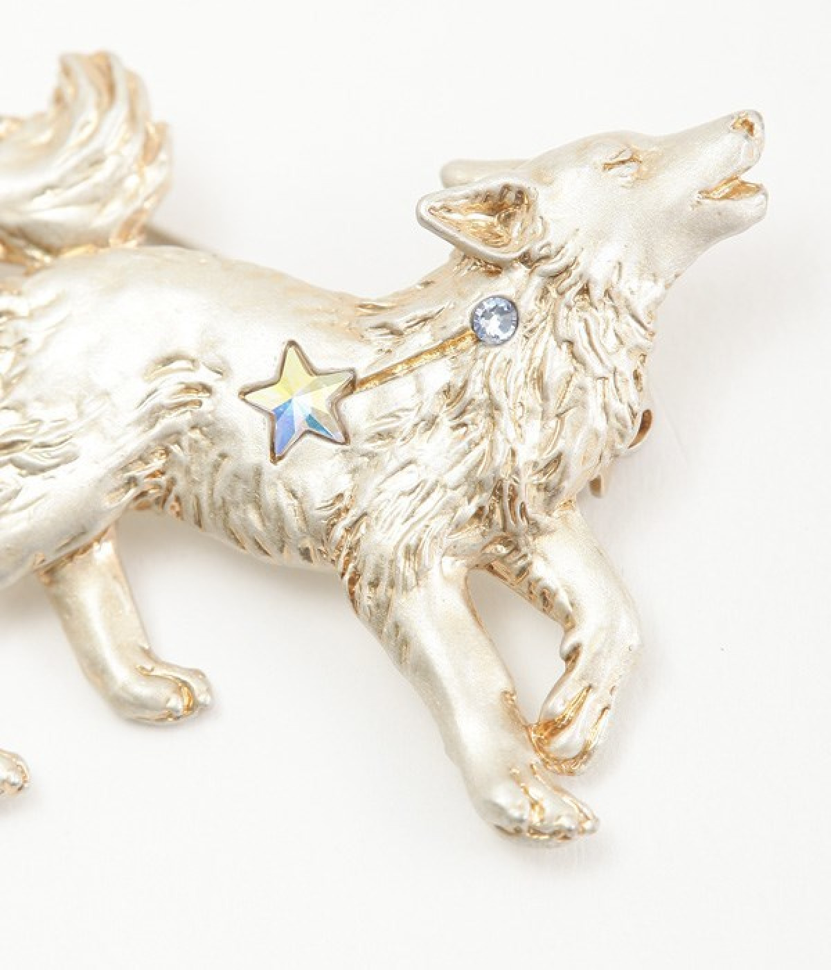きらきらとしたストーンが印象的な遠吠えをする、こいぬ座のブローチです。白と黄金色のフサフサとした毛並がとってもリアルに仕上がっており、上品な雰囲気のアイテムです。つけるだけで華やかでかわいらしさをプラスしてくれます。こちらは職人さんがハンドメイドでつくっており、ひとつひとつ塗や表情が違う繊細な作りとなっています。