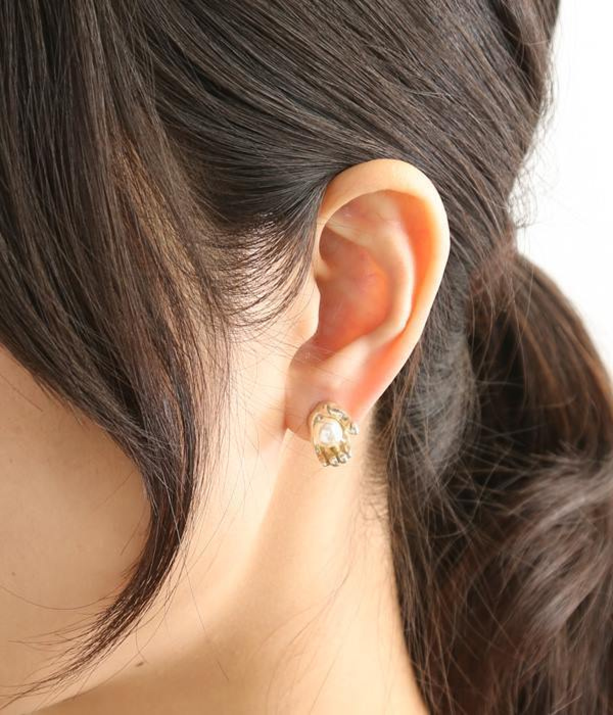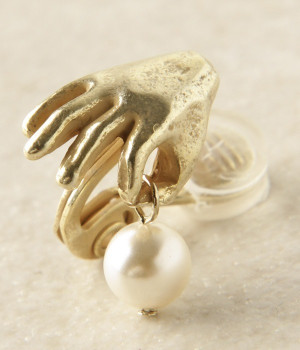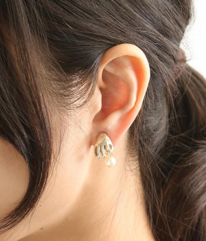 商品名であるハーヴェストは「収穫」を意味しています。リアルな手が上品に光るパールを収穫している個性的なイヤリング。パールが耳元でゆらゆらと揺れて大人かわいいアクセントになります。立体的な手はちゃんと裏側までしっかりデザインされており、ハンドメイドならではの細かな作りになっています。