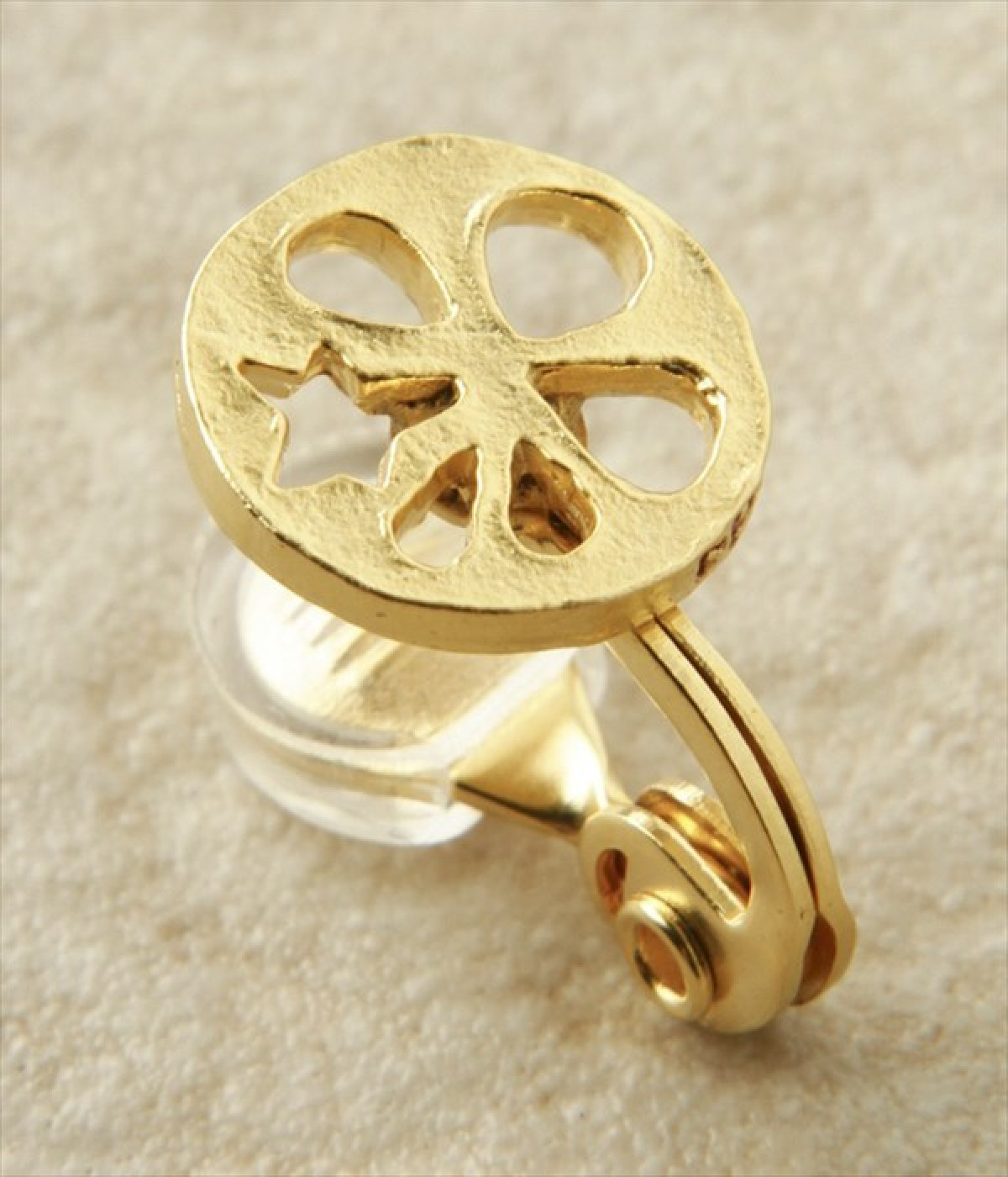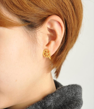 野菜シリーズの中でも人気のレンコンモチーフにしたキュートなイヤリングです。上品なゴールドのカラーリングとほどよい大きさなので使いやすく、耳元を飾る素敵なアクセントになります。片方のイヤリングだけレンコンの穴の一部をお星さまにしたアシンメトリーなデザインがとってもユニーク。遊び心溢れるアクセサリーです。