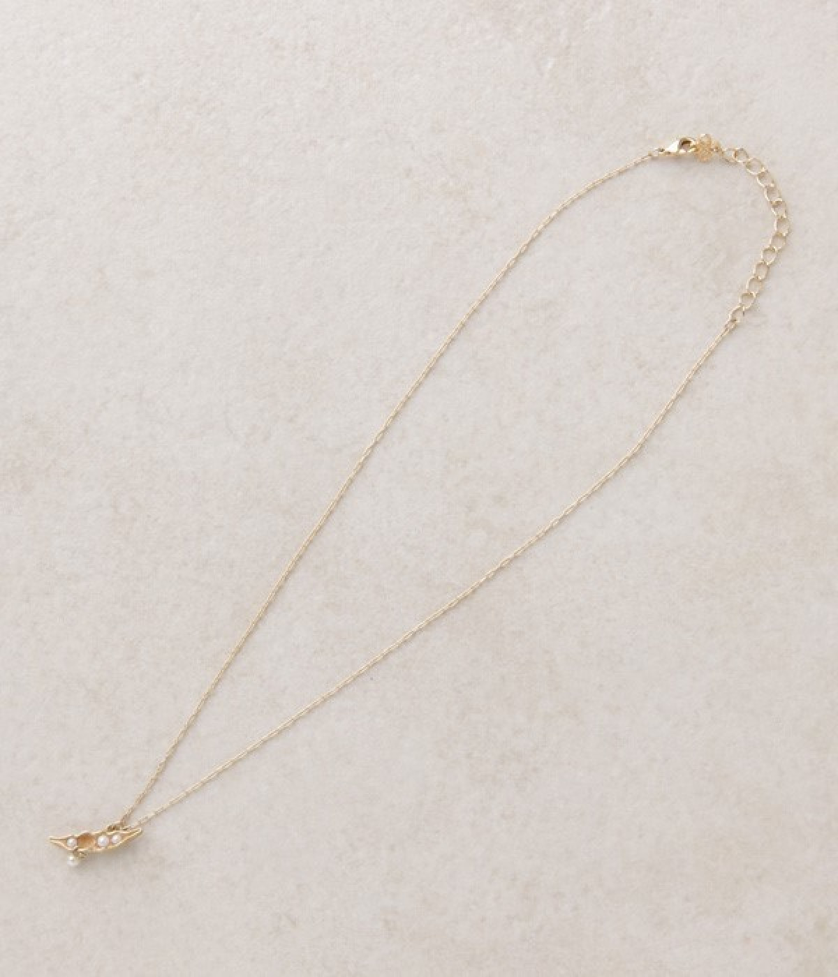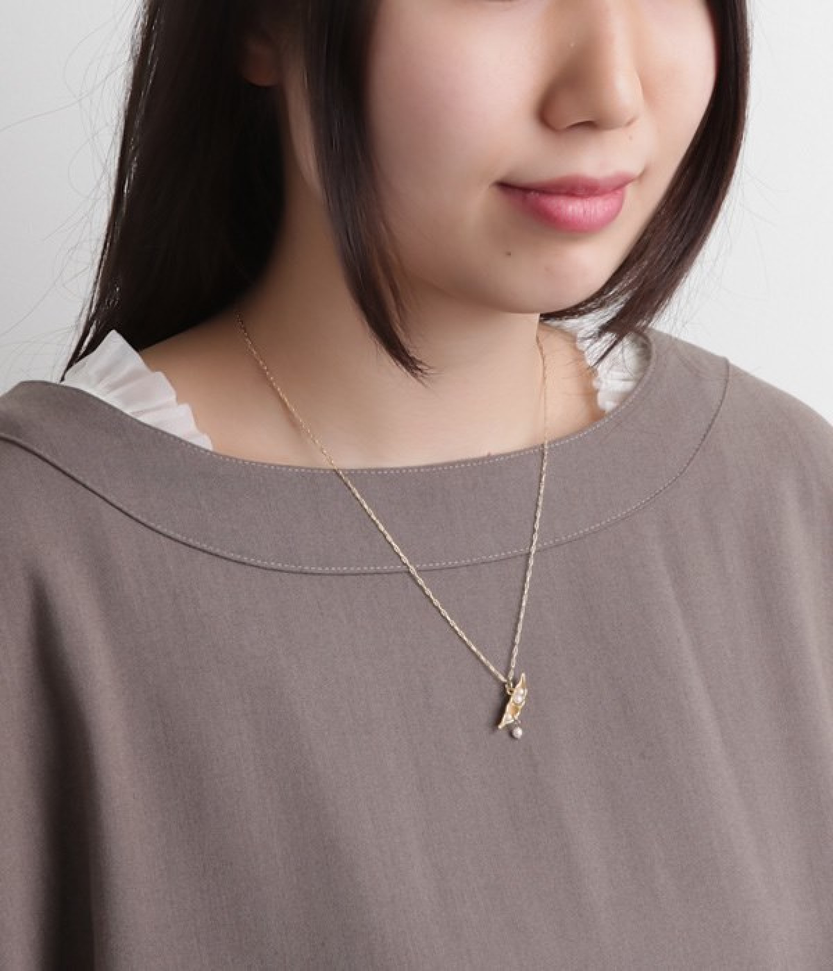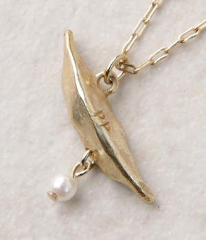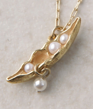 さりげなくユニークなアクセサリーを取り入れたい方にもおすすめのプチペンダント。ぽろっとこぼれたパールがゆらゆら揺れて、上品な印象を与えています。身に付けたときにさやえんどうが斜めになるようこだわってデザインされました。チェーンの長さはアジャスターで調整可能。遊び心と女性らしい品のよさを兼ね備えた秀逸アイテムです。