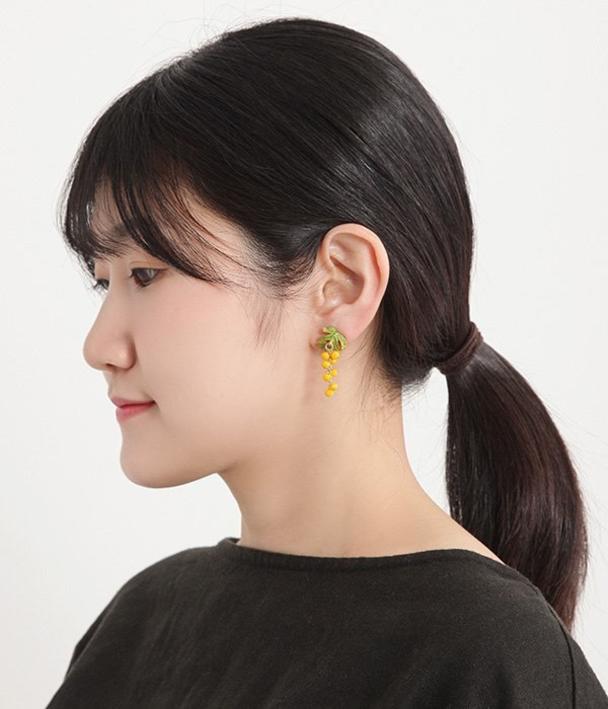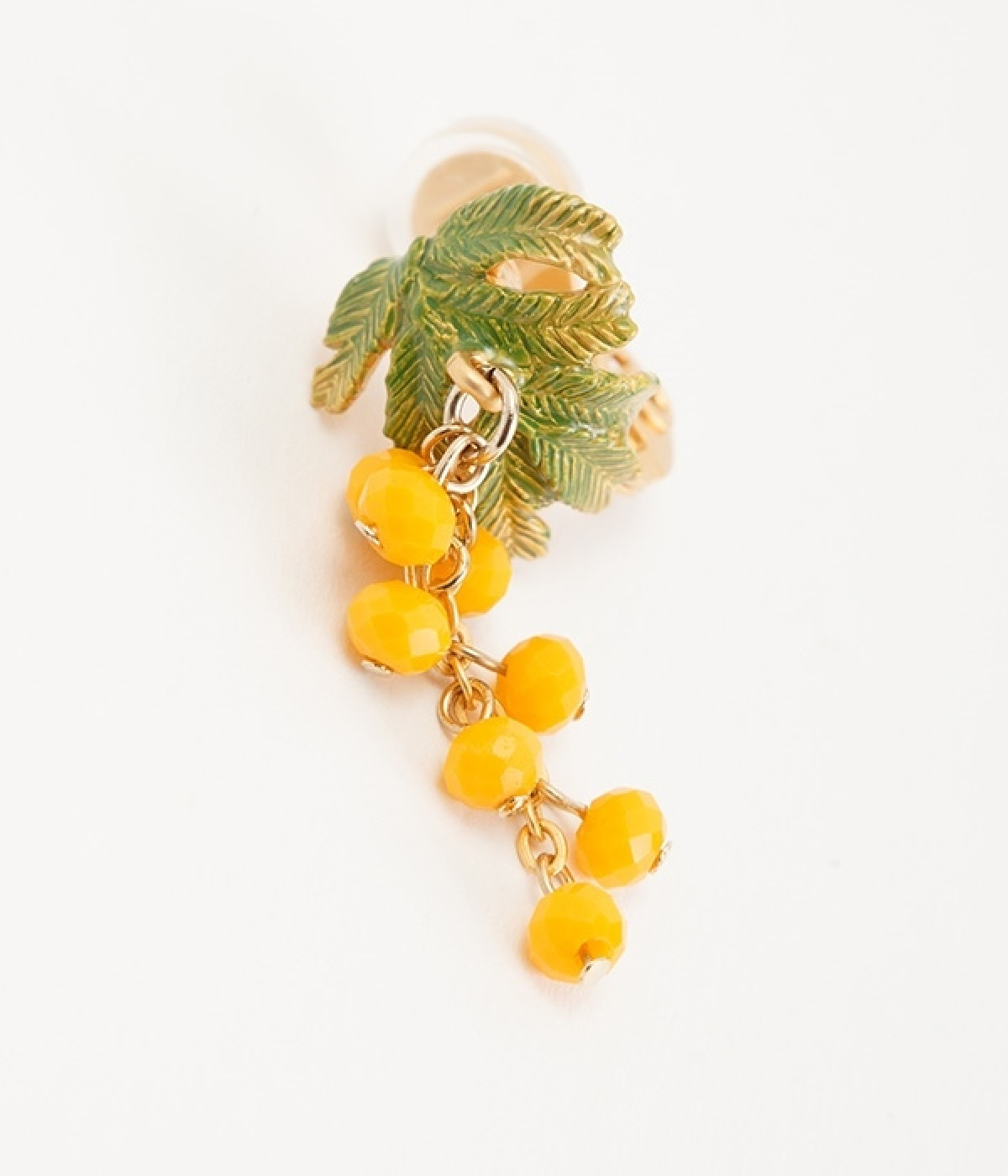 春の訪れを告げる花・ミモザをモチーフにしたイヤリング。身体を動かすたびに黄色いポンポンがゆらゆらと揺れて、 顔まわりを明るく華やかにみせてくれます。モチーフが大きすぎないので、どんなコーディネートとも相性抜群◎。デイリー使いからちょっとしたお出かけまでシーンを問わず使える、大人かわいいデザインのアクセサリーです。