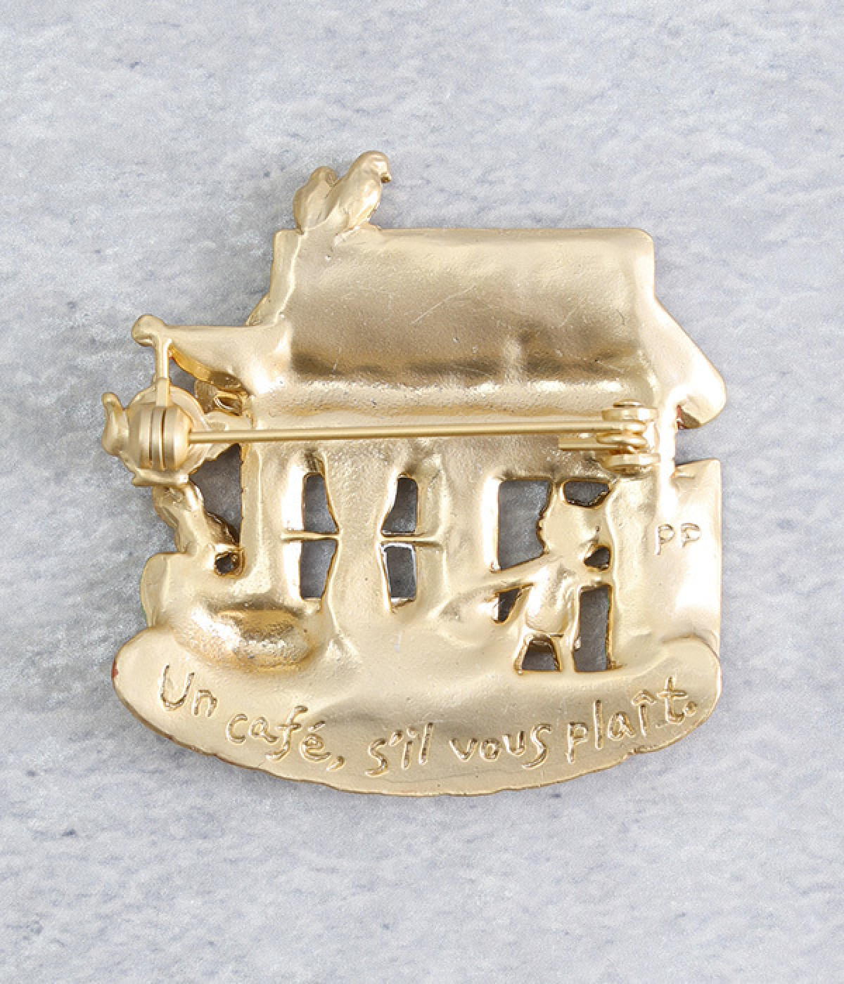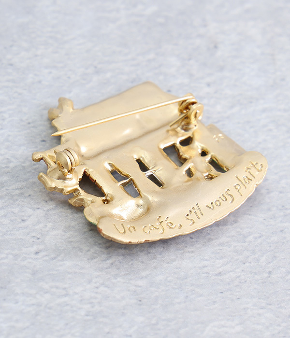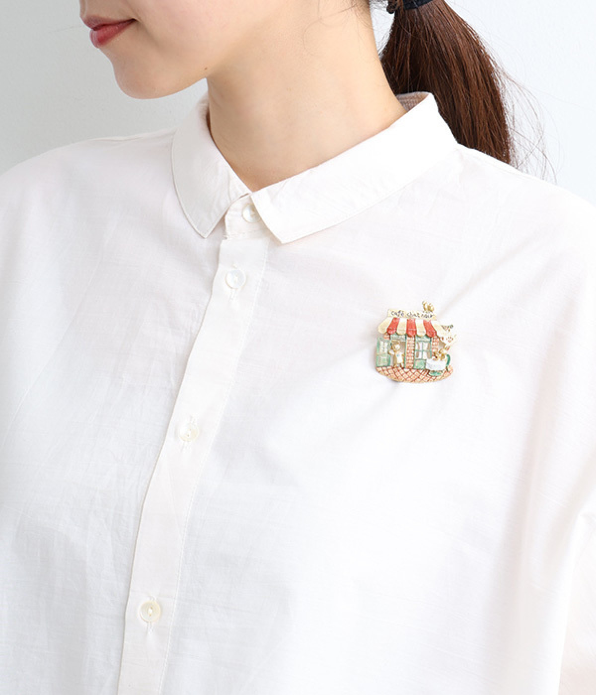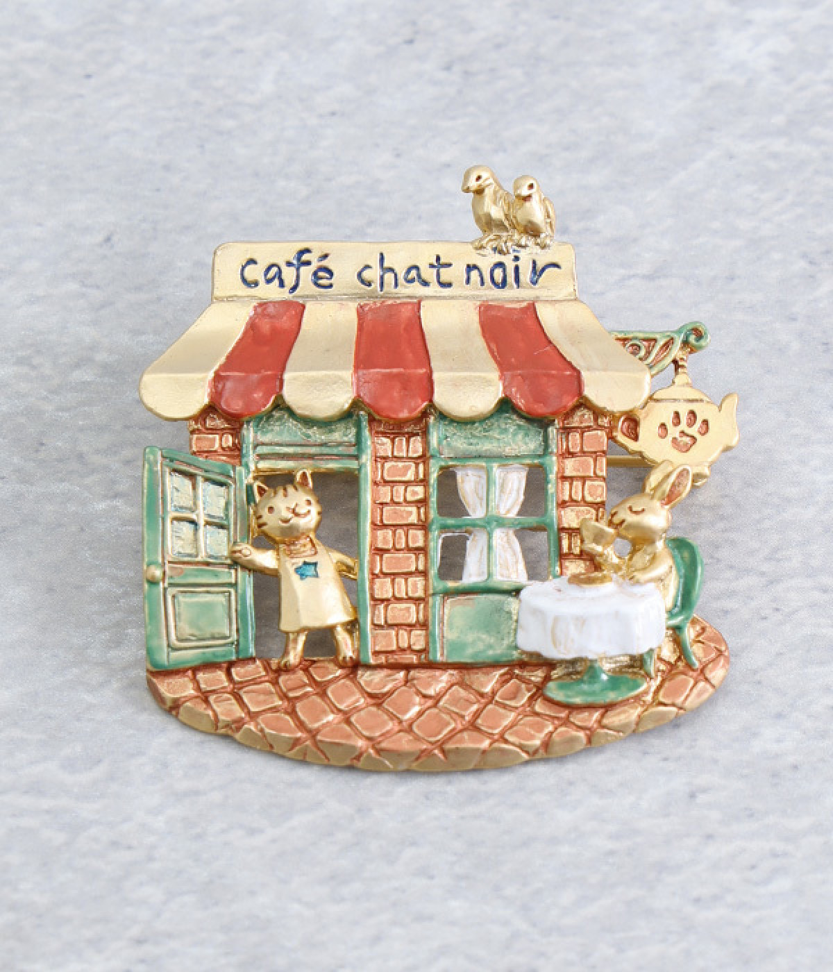 黒猫店長が営む、コーヒーと紅茶がおいしいカフェをそのままブローチにしました。裏通りにひっそりと佇む、知る人ぞ知るカフェのようなイメージで作られています。色とりどりで存在感のある大きめのサイジングは、シンプルなジャケットの胸元やストールのワンポイントにしてみると◎。ネコ好きな方へのギフトにしても喜ばれそうです。