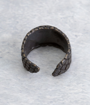 水溜まりに映るパリの夜景をモチーフにしたロマンティックなリングです。雨上がりの夜、石畳のゆがみで大小の水溜まりがある中、美しくライトアップされたエッフェル塔が反射で映っている様子を表現。街灯や店の明かりをイメージしたラインストーンをちりばめ、街の賑わいを華やかにデザインしています。ほどよいボリュームが手元を個性的に彩り、目に留まるたびに気分が上がりそう。