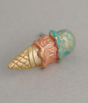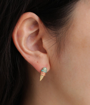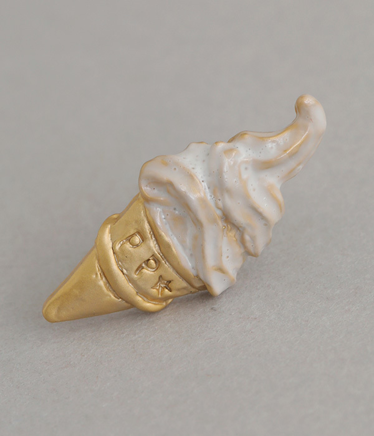 ゴールドのコーンに盛りつけたアイスが涼しげ