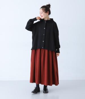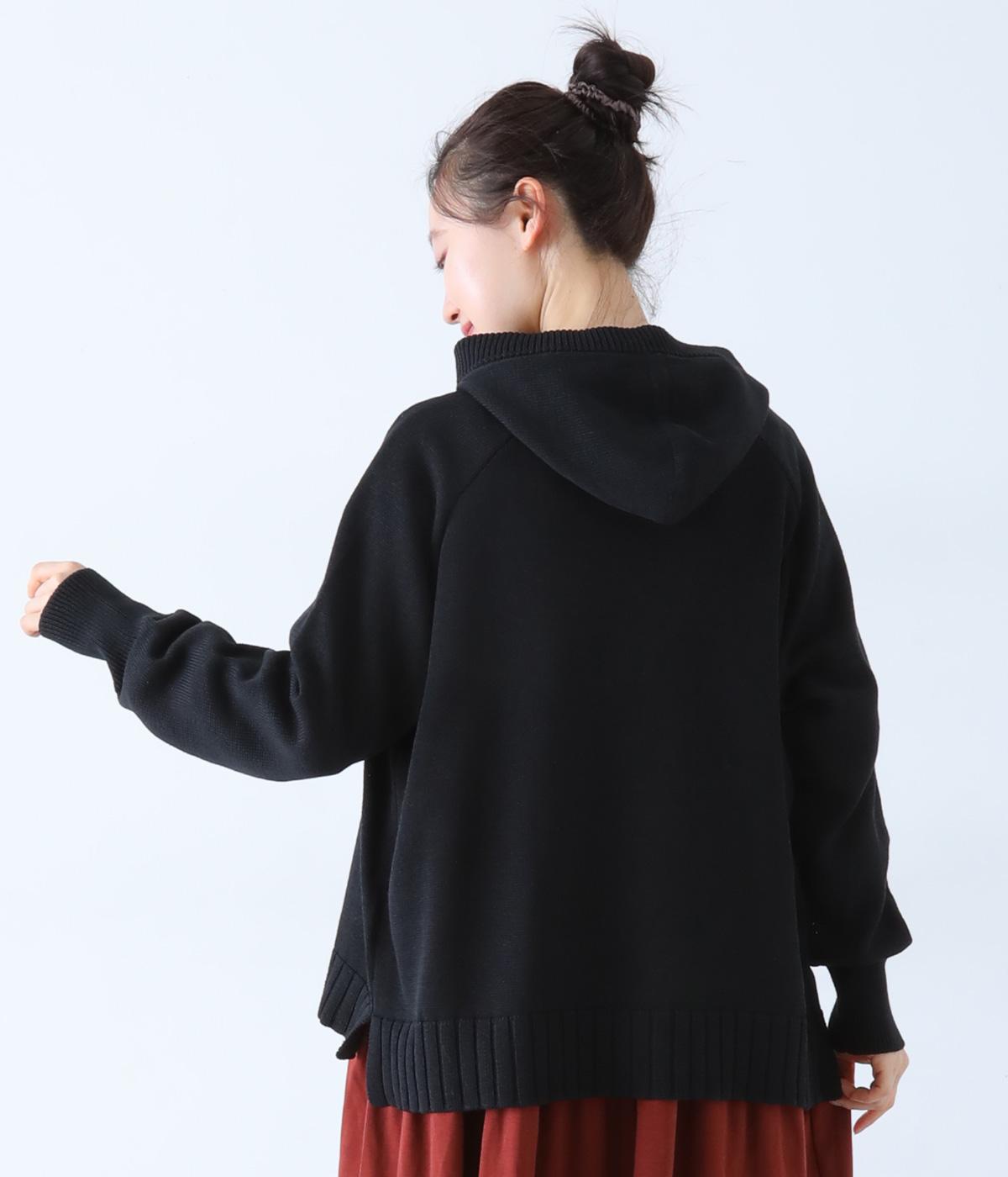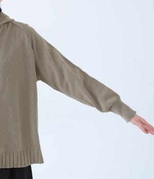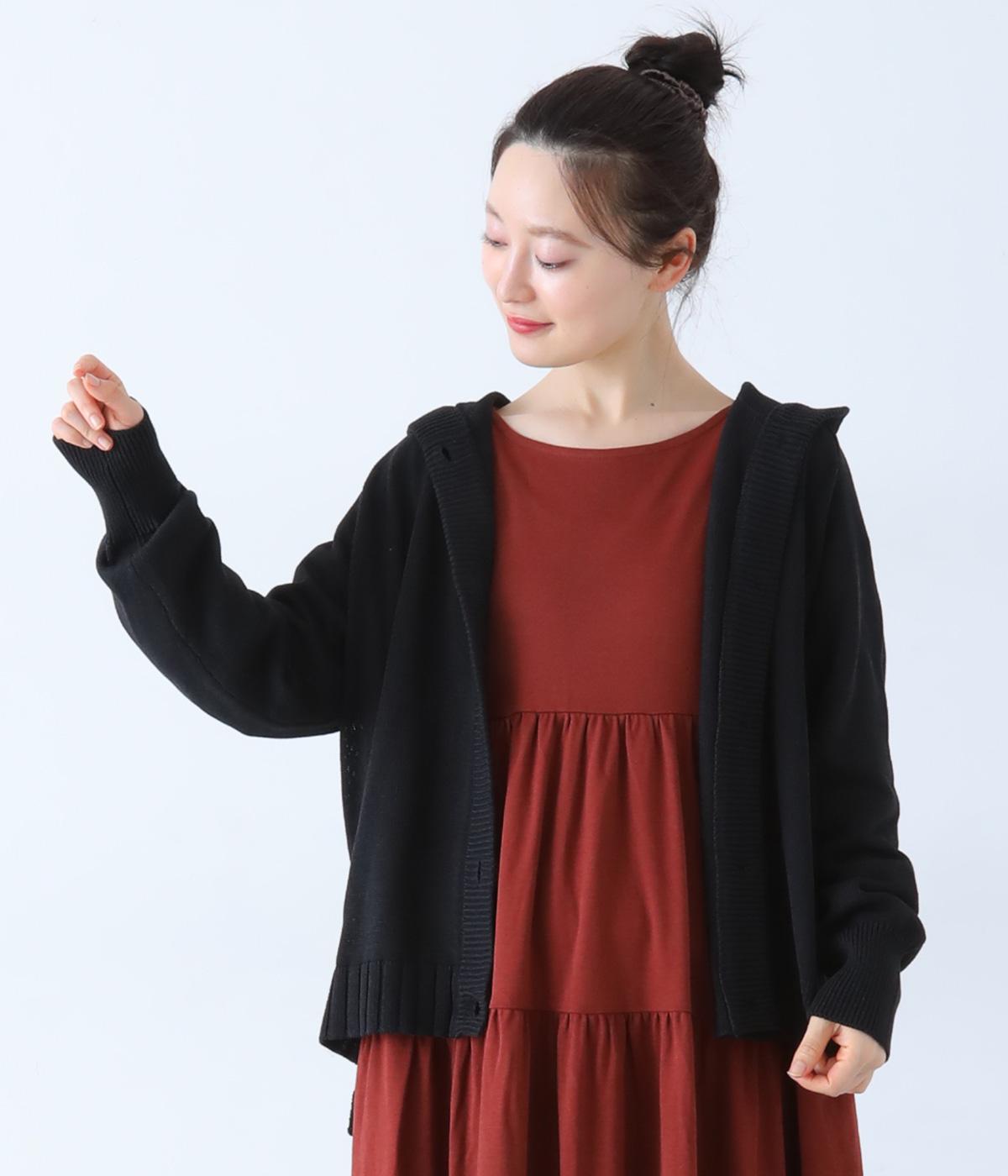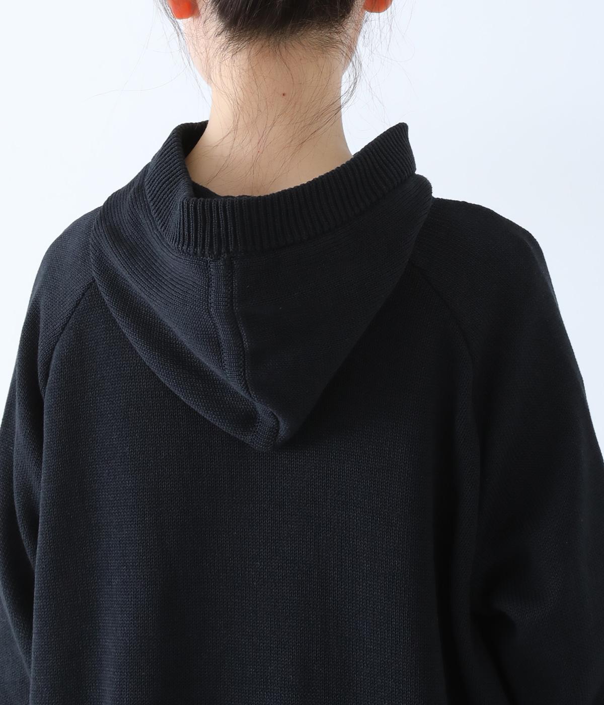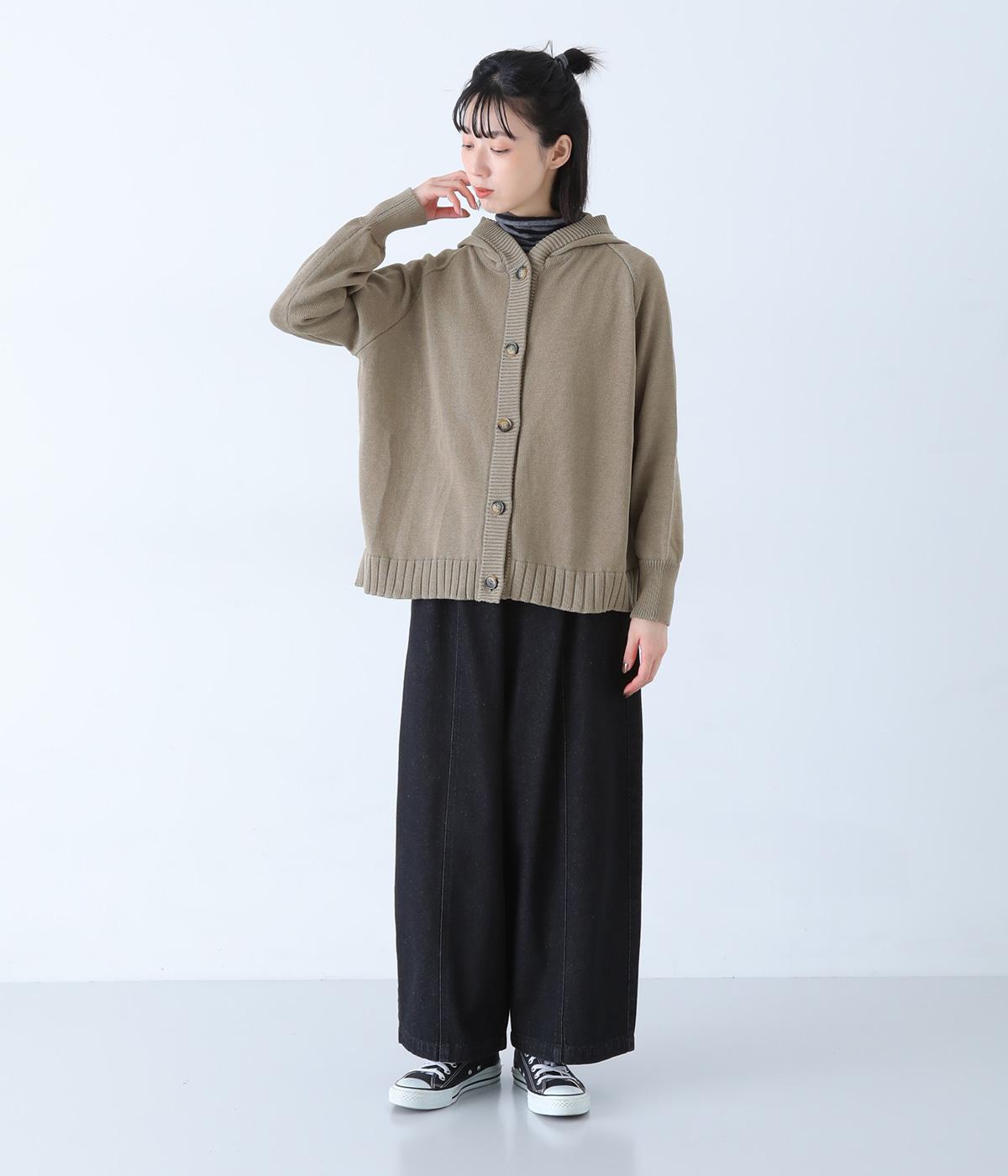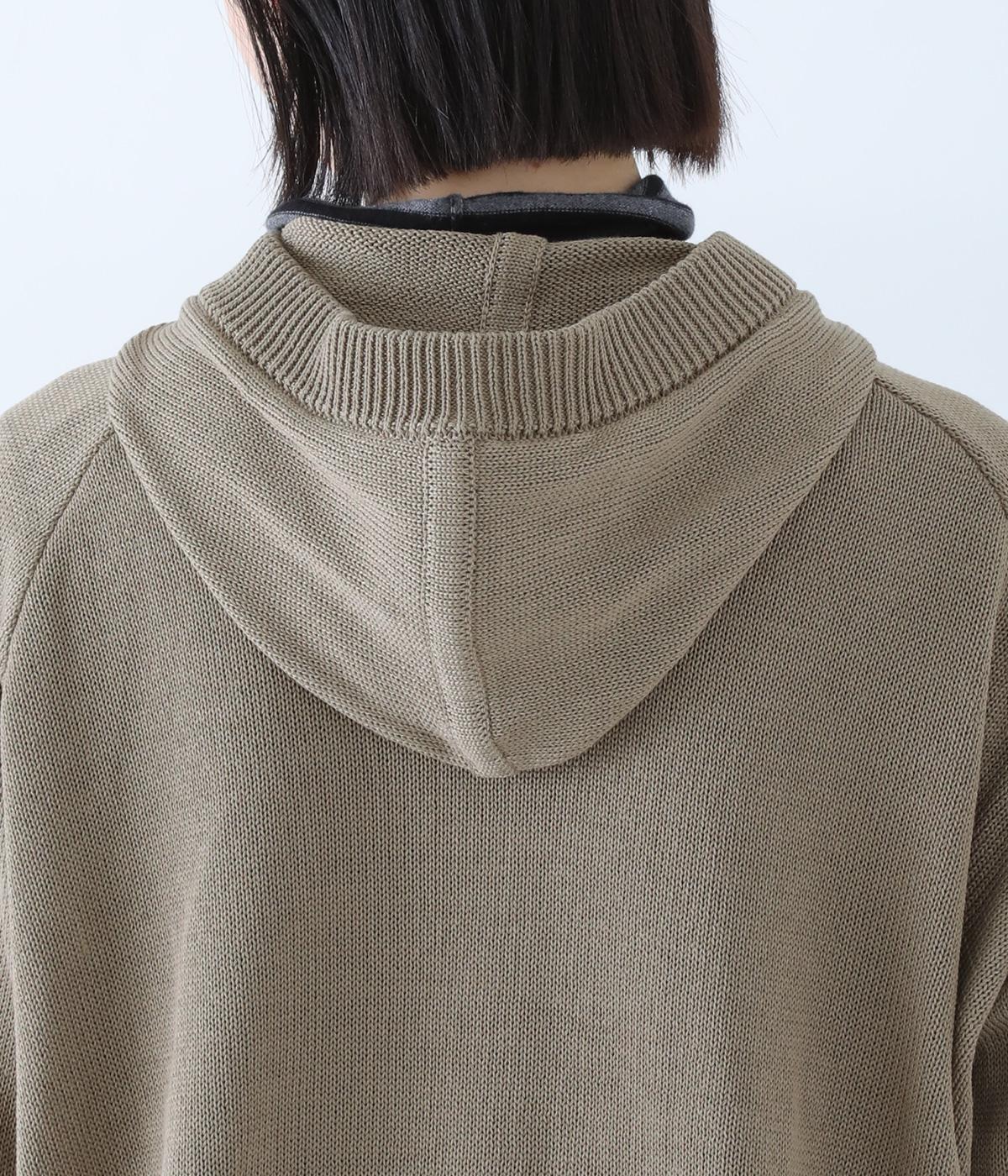 前立てや裾のリブ使いと、フードデザインが特徴のカーディガン。着丈に前後差をつけることでカジュアルさをおさえた大人らしい一着に仕上げました。ラフな印象になりすぎない適度にゆとりを持たせた身幅が◎。ラグランスリーブは肩ラインを女性らしく滑らかに見せてくれます。