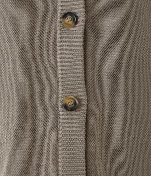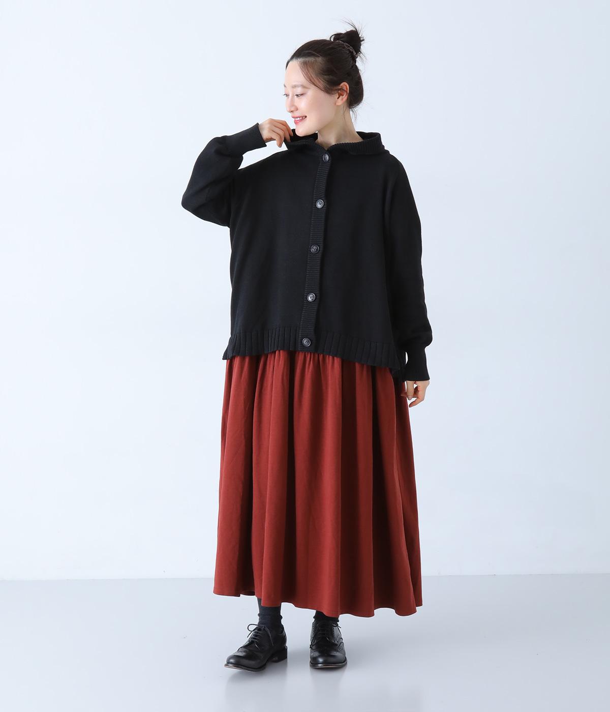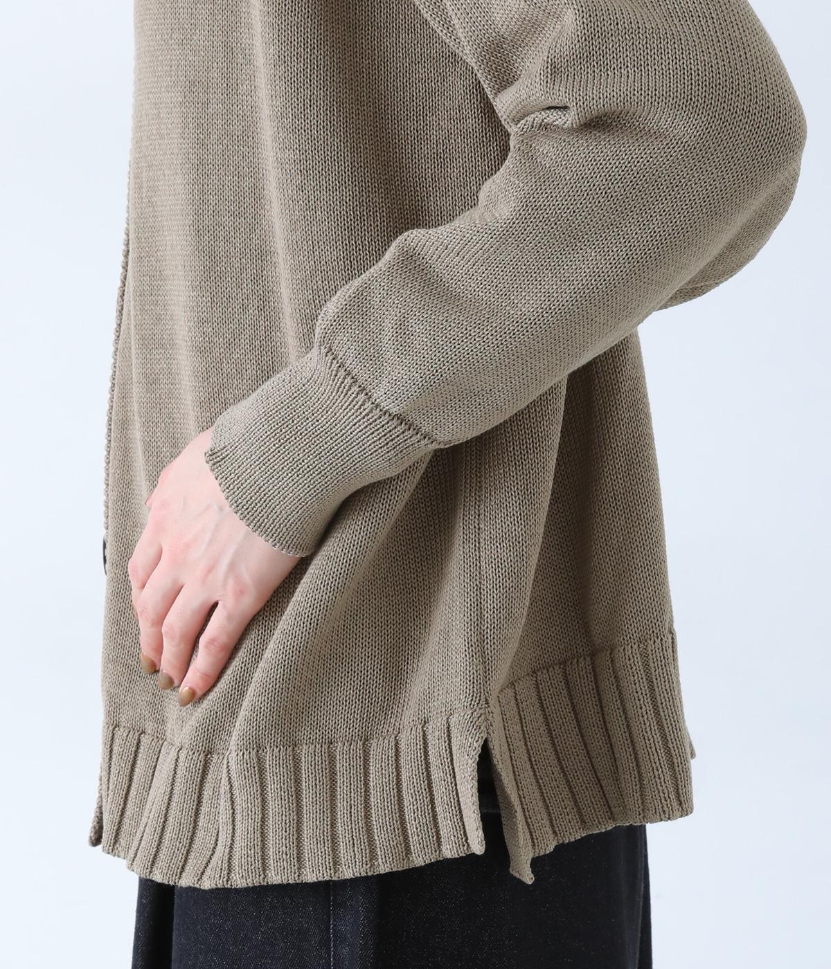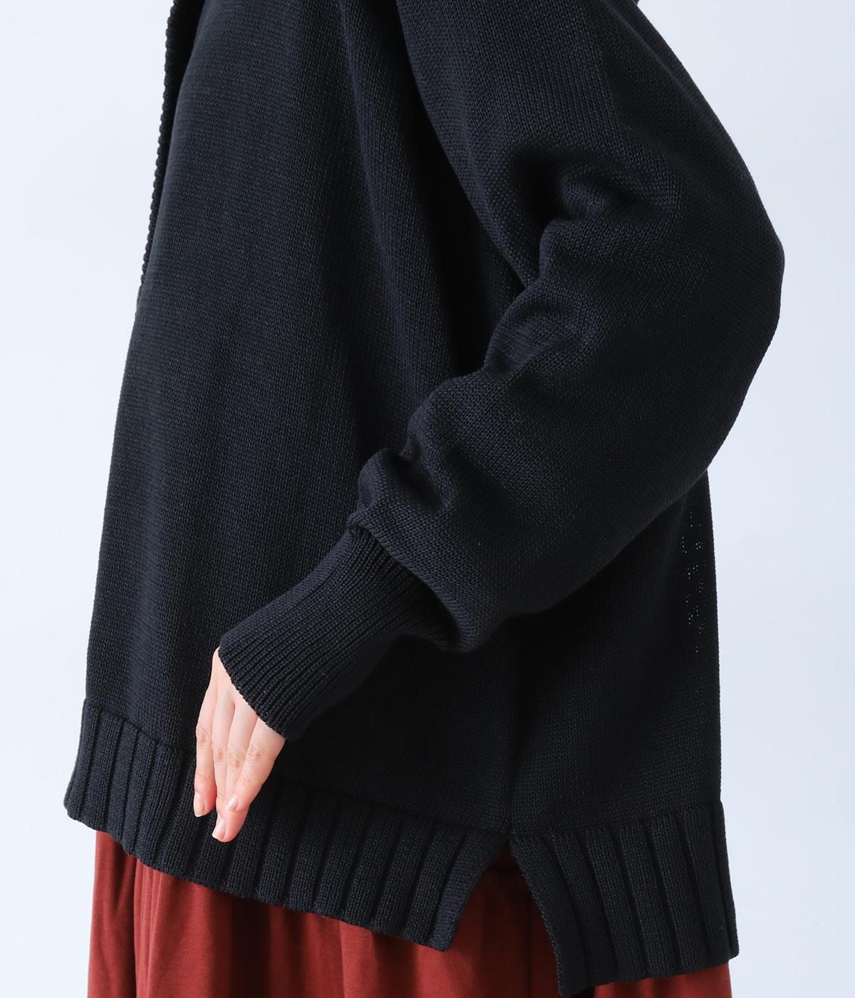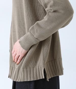 起毛感の少ないさらりとした肌触りのポリエステルニット。肌寒くなってきた時期には羽織りとして、冬はアウターの下に合わせるなどロングシーズン取り入れやすい適度な厚みが魅力です。