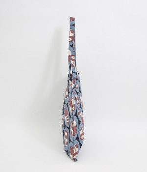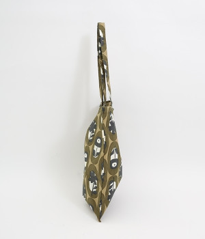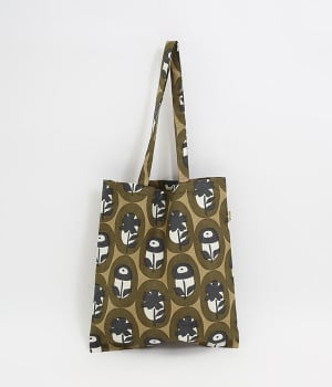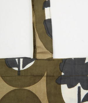 額縁に収まっているようなフレームフラワー柄プリントが目を惹くエコバッグです。花柄でもラフなタッチに甘すぎない落ち着いた配色で大人カジュアルスタイルにも合わせやすい仕上がり。肩にもかけやすいハンドルに無駄を削いだシンプルな作りで使い勝手もよく、持ち歩き用として活躍します。毎日使うものだからこそ気分の上がるお気に入りのプリントアイテムを選びたいもの。