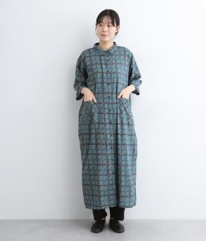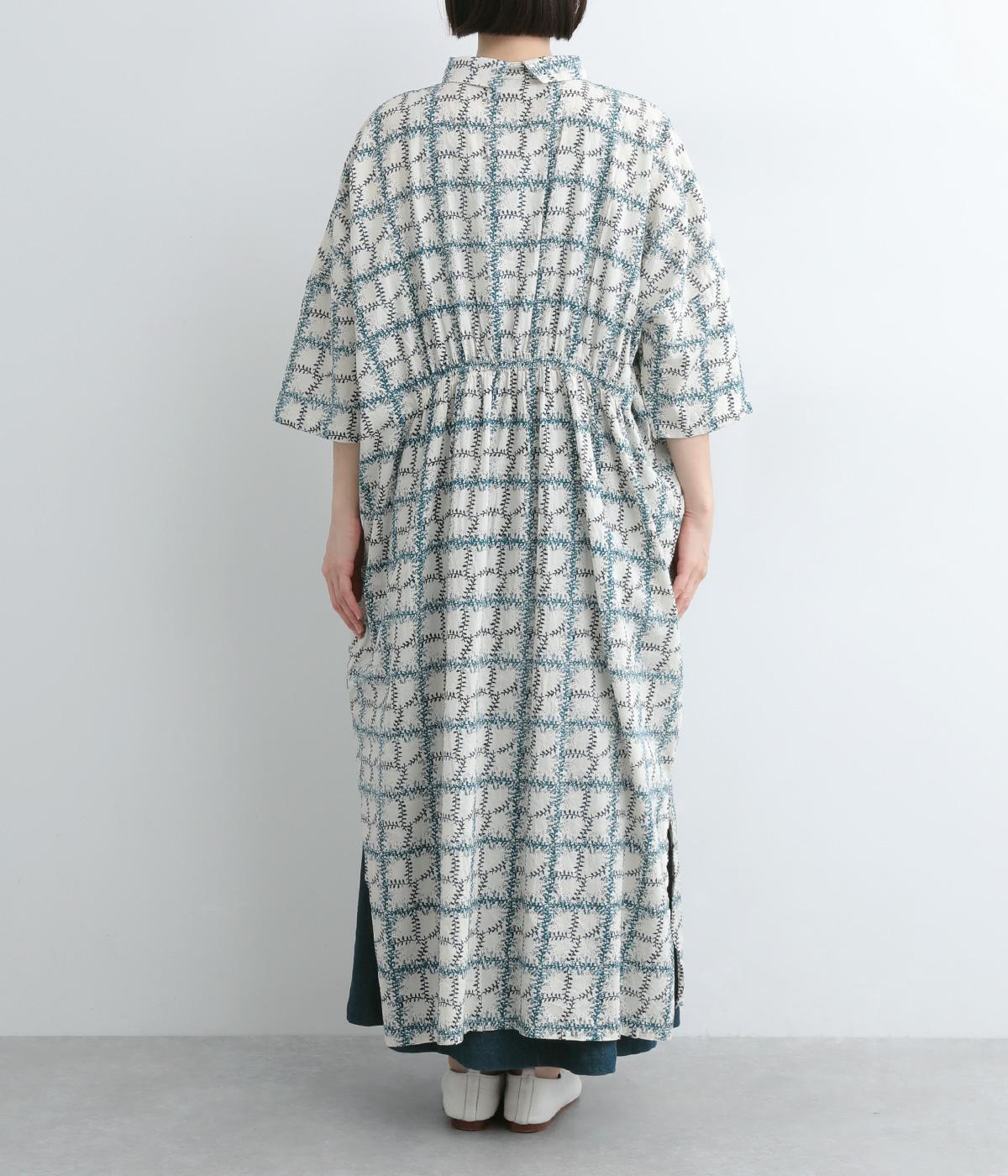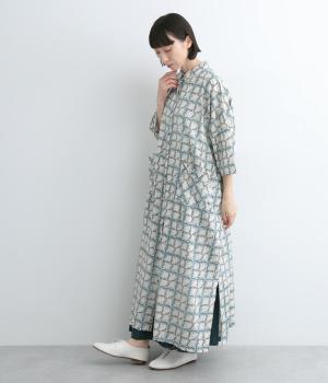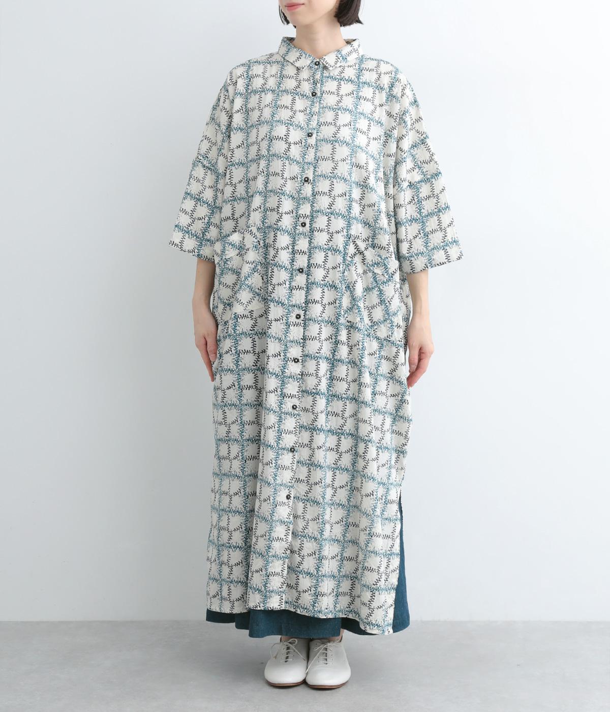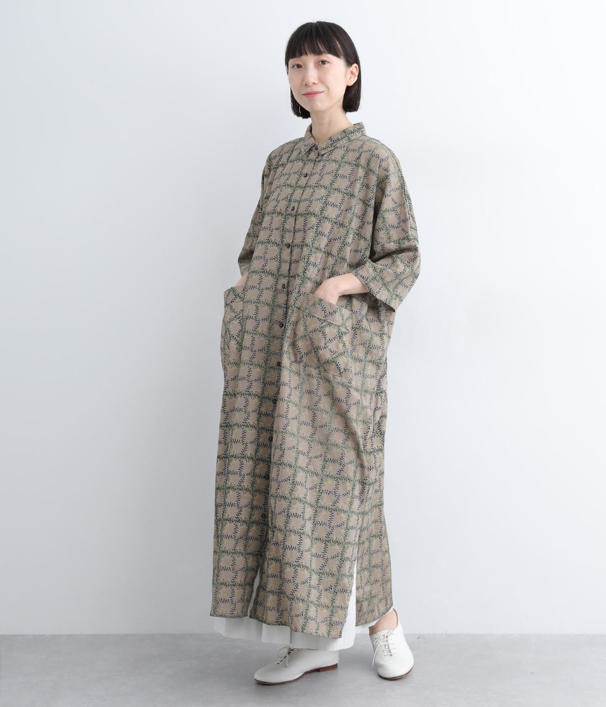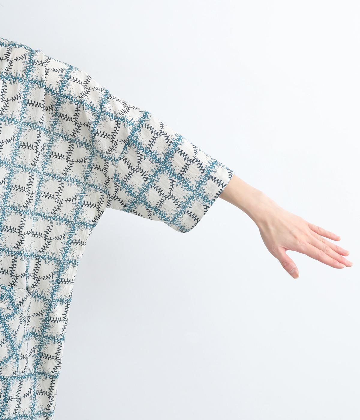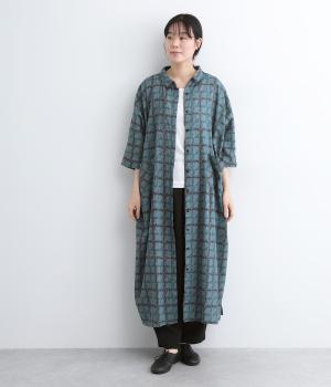たっぷりとしたワイドシルエットや裾カットデザインが特徴的な一枚。ワンピースとして着用しても足さばきは快適。前をあければライトガウンのような羽織りアイテムにもなります。ひじがかくれるほどの袖丈で季節の変わり目にも◎。
