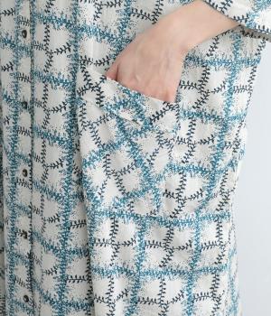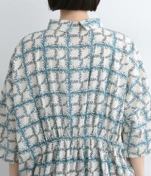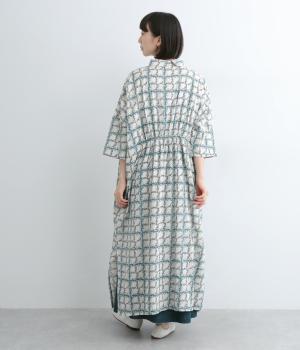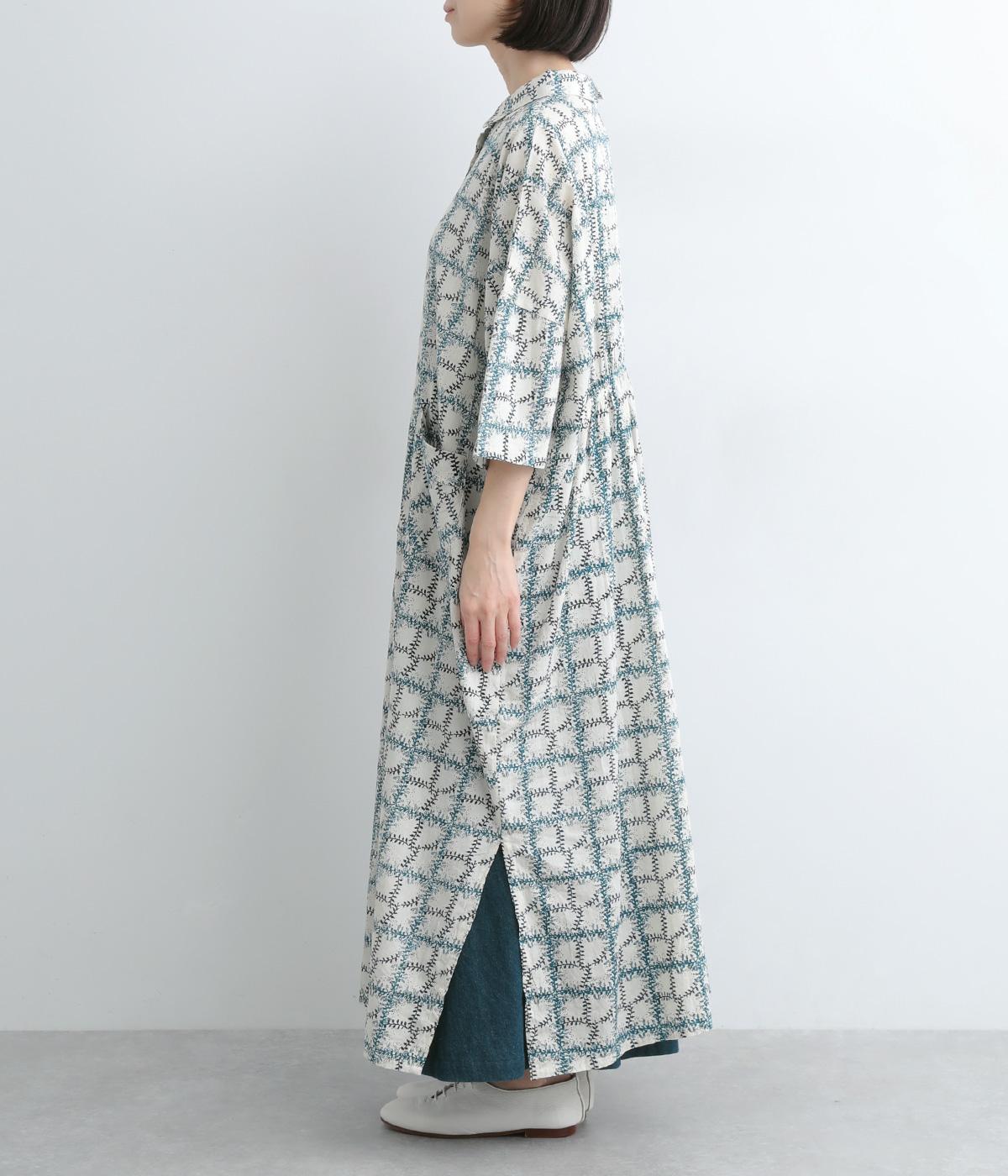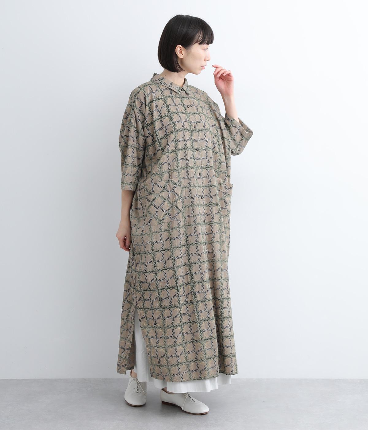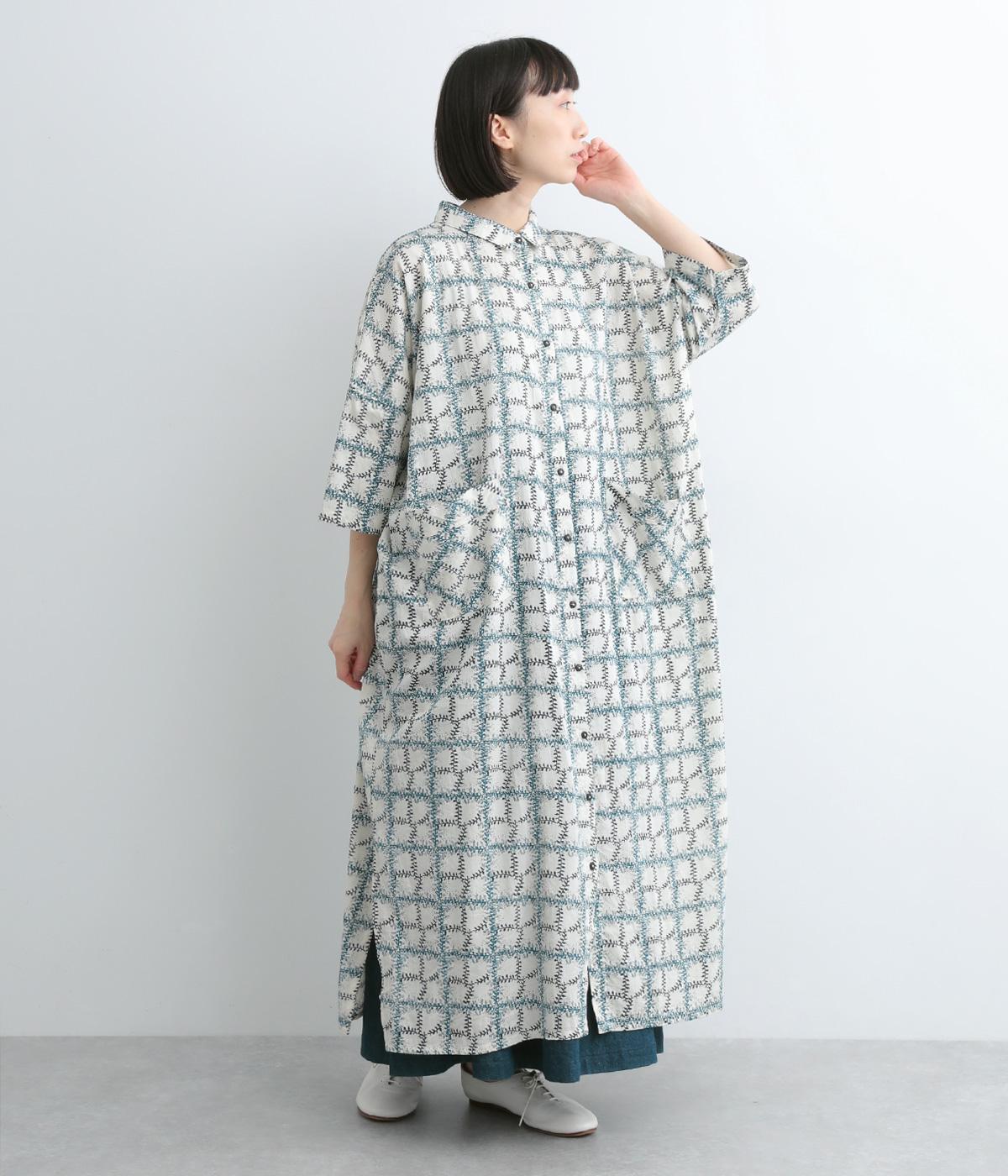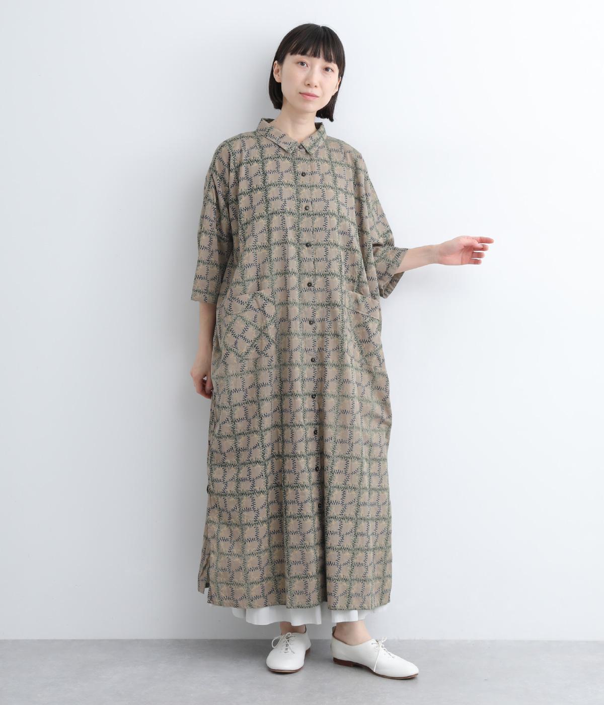 たっぷりとしたワイドシルエットや裾カットデザインが特徴的な一枚。ワンピースとして着用しても足さばきは快適。前をあければライトガウンのような羽織りアイテムにもなります。ひじがかくれるほどの袖丈で季節の変わり目にも◎。