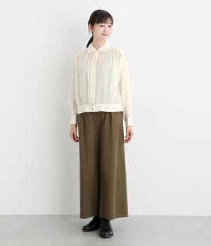 軽やかでさらりと纏えるレーヨンとコットンのミックス素材です。ほどよい透け感のある薄手の生地で、肌ばなれのよい着心地と自然な風合いが魅力です。
