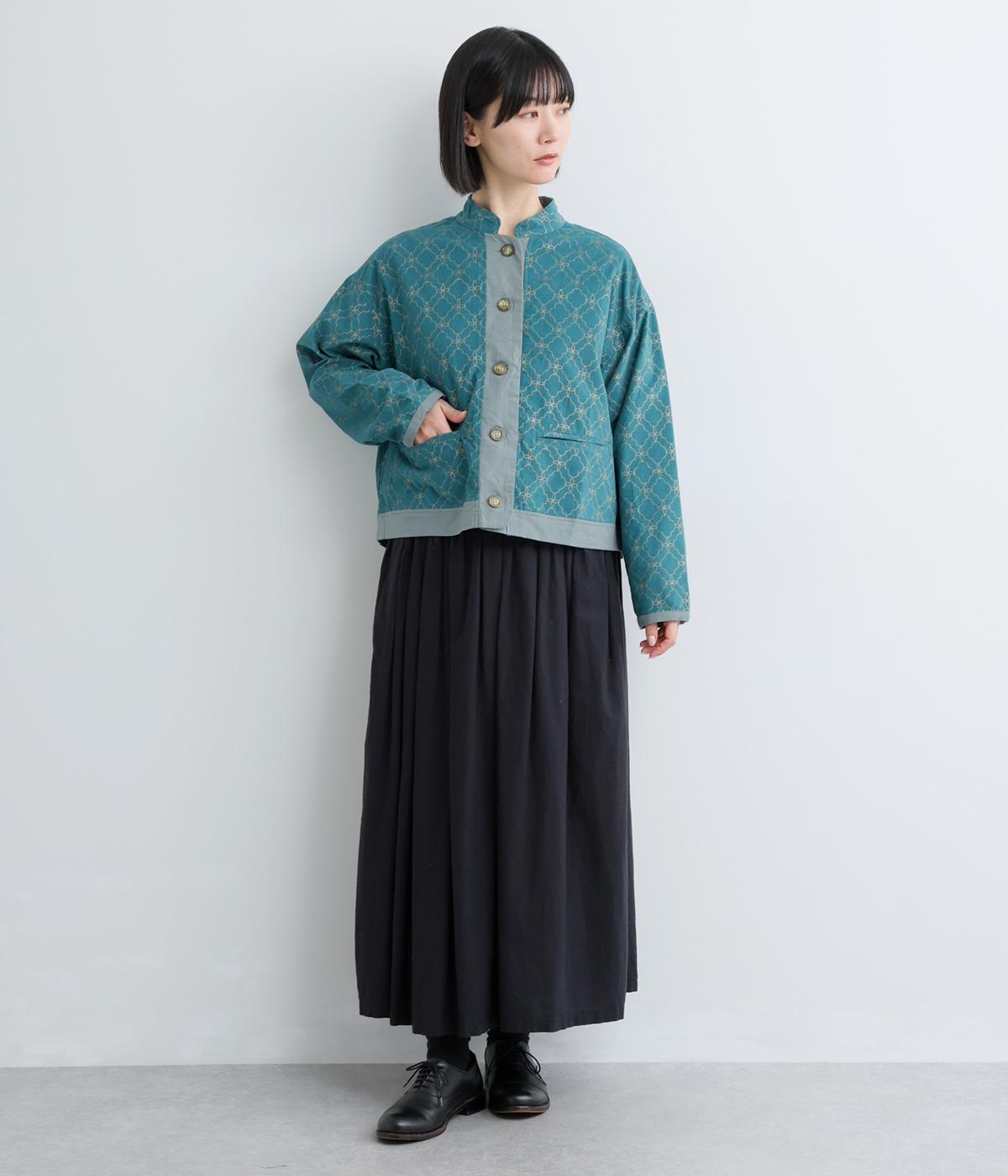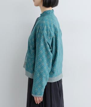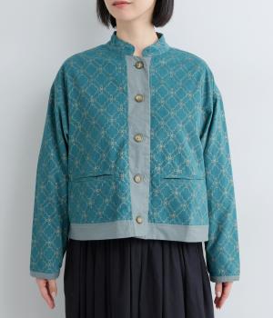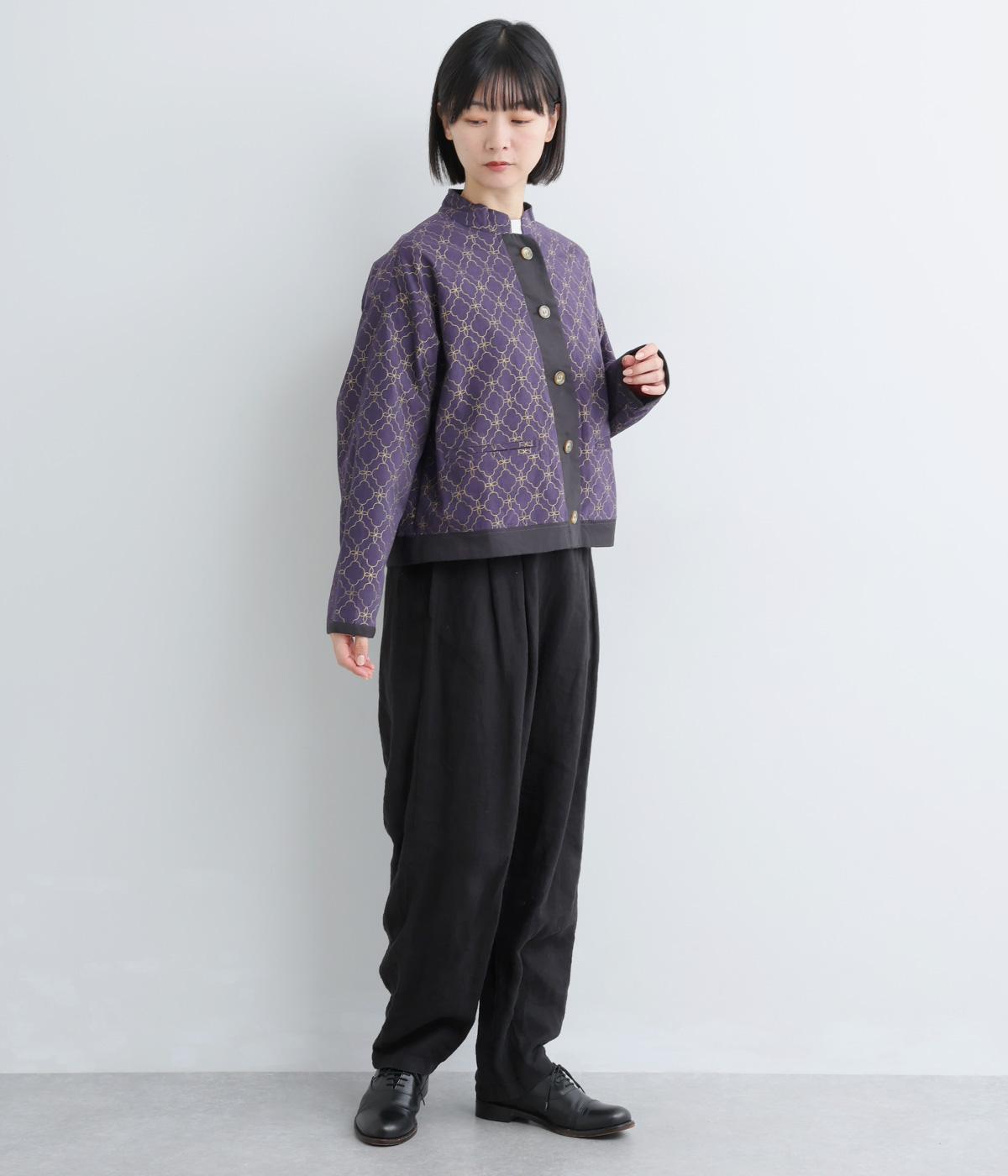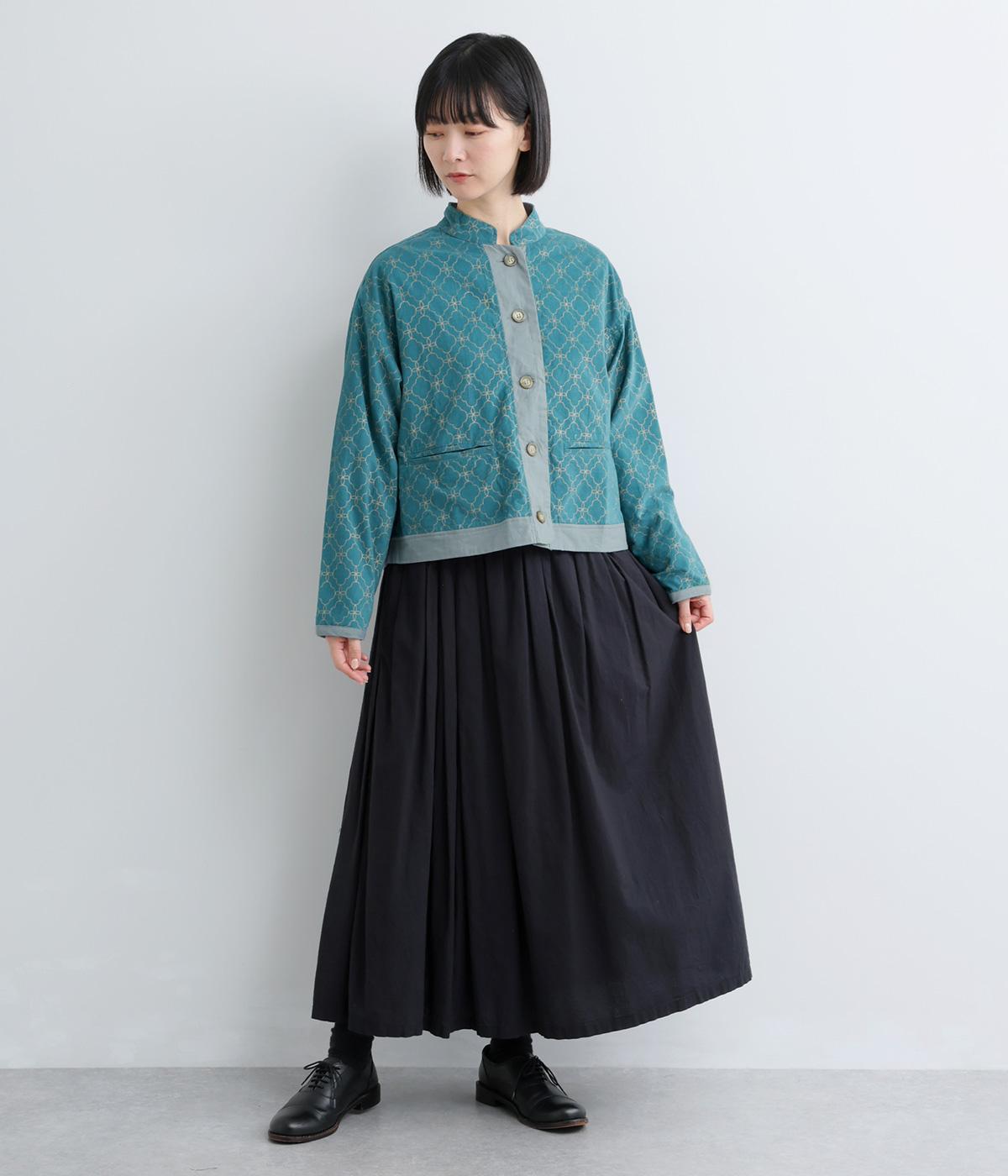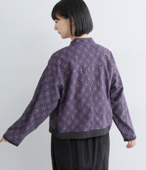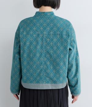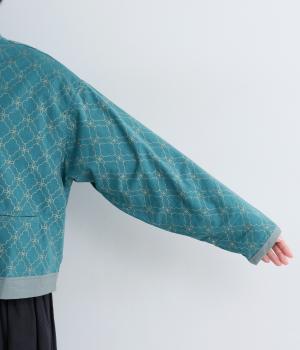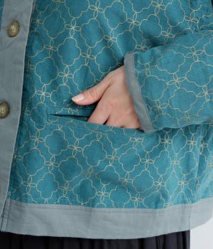 エキゾチックなムードのモロッカンプリントが目を引くシャツジャケット。前立てや裾は無地にして柄を引き立てつつ、バランスよく仕上げました。285gと軽量ながらきちんと感も備え、トップスにもライトアウターにも使える一枚です。