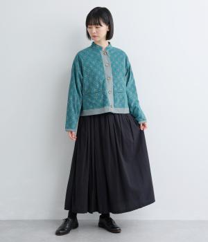 インドの職人さんが手仕事でプリントした手捺染コットンを使用しています。ひとつひとつ異なる味わいが魅力です。コットンベルベットのほのかな光沢感が上品な雰囲気です。