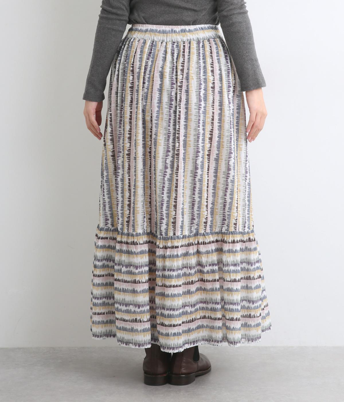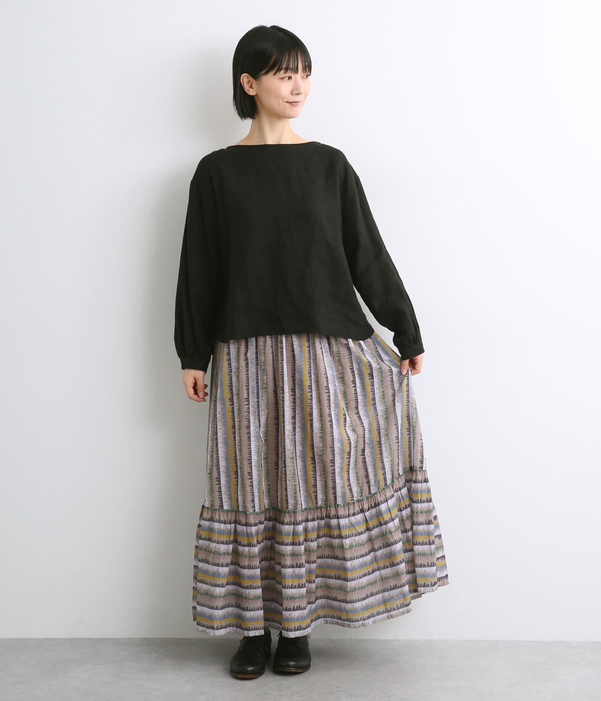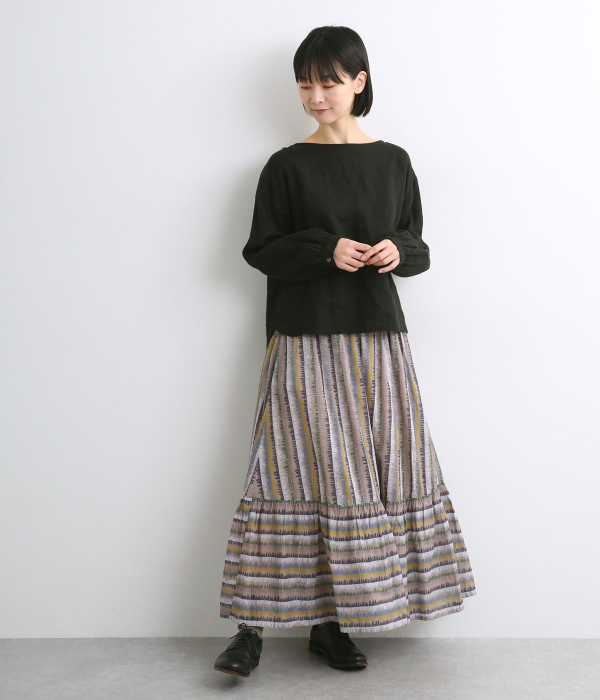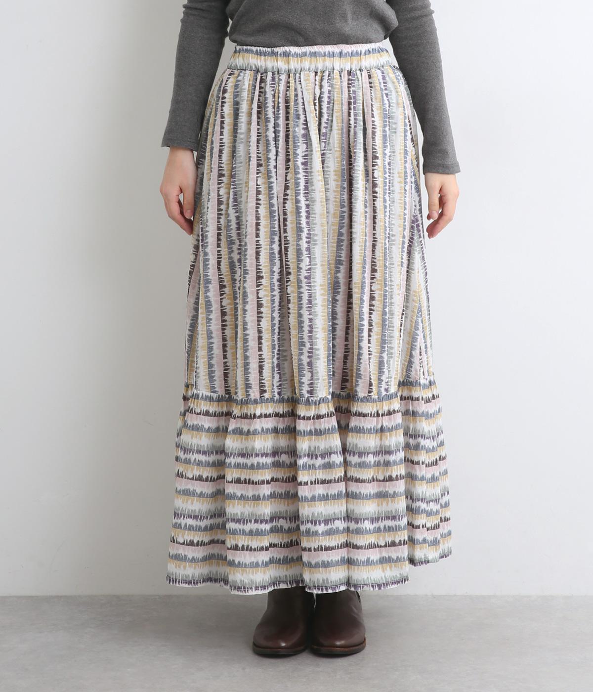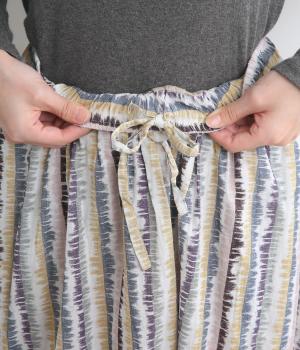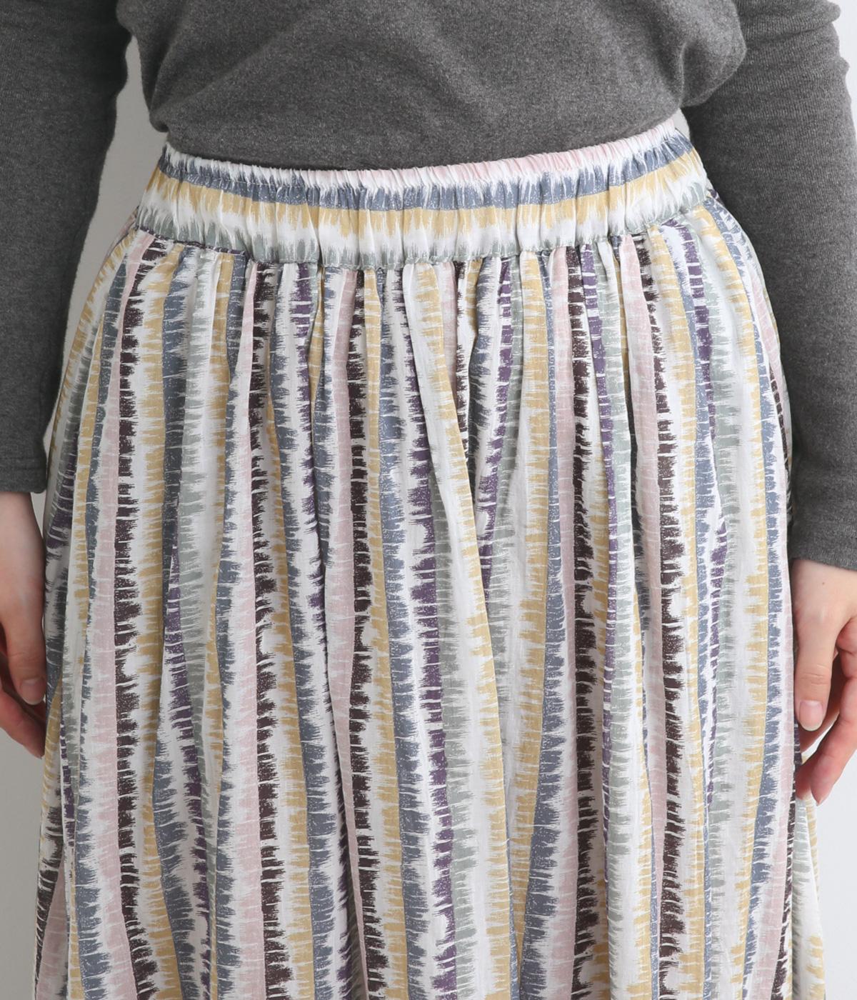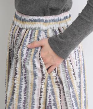 やわらかな雰囲気のストライプ柄ロングスカート。筆で描いたようなかすれタッチが、味わいのある表情を添えます。裾で柄の向きを変えてアクセントをつけました。ウエストはゴム仕様で、裏地付きの快適な穿き心地です。