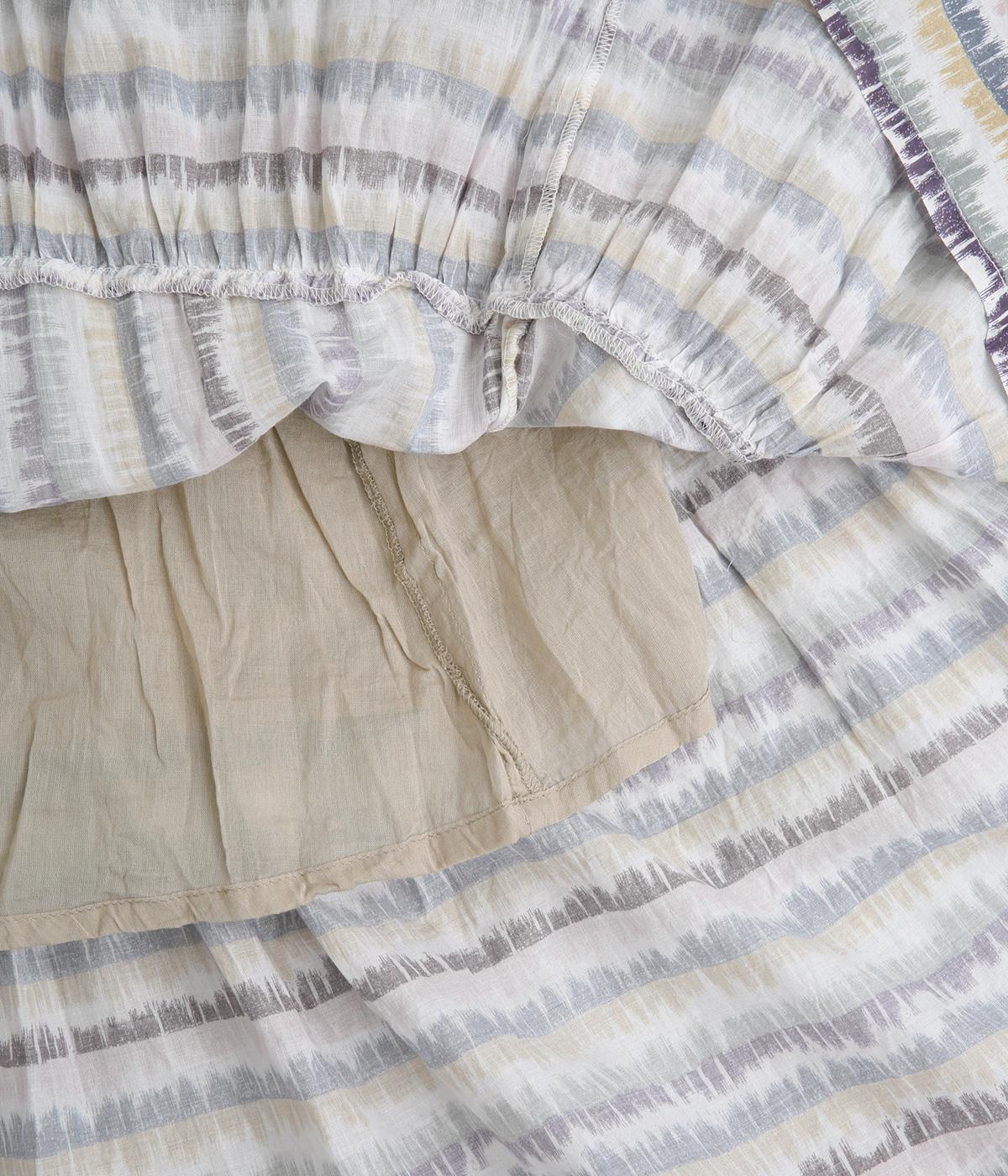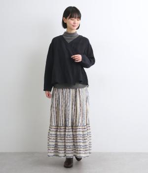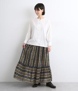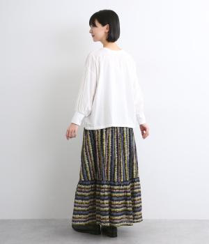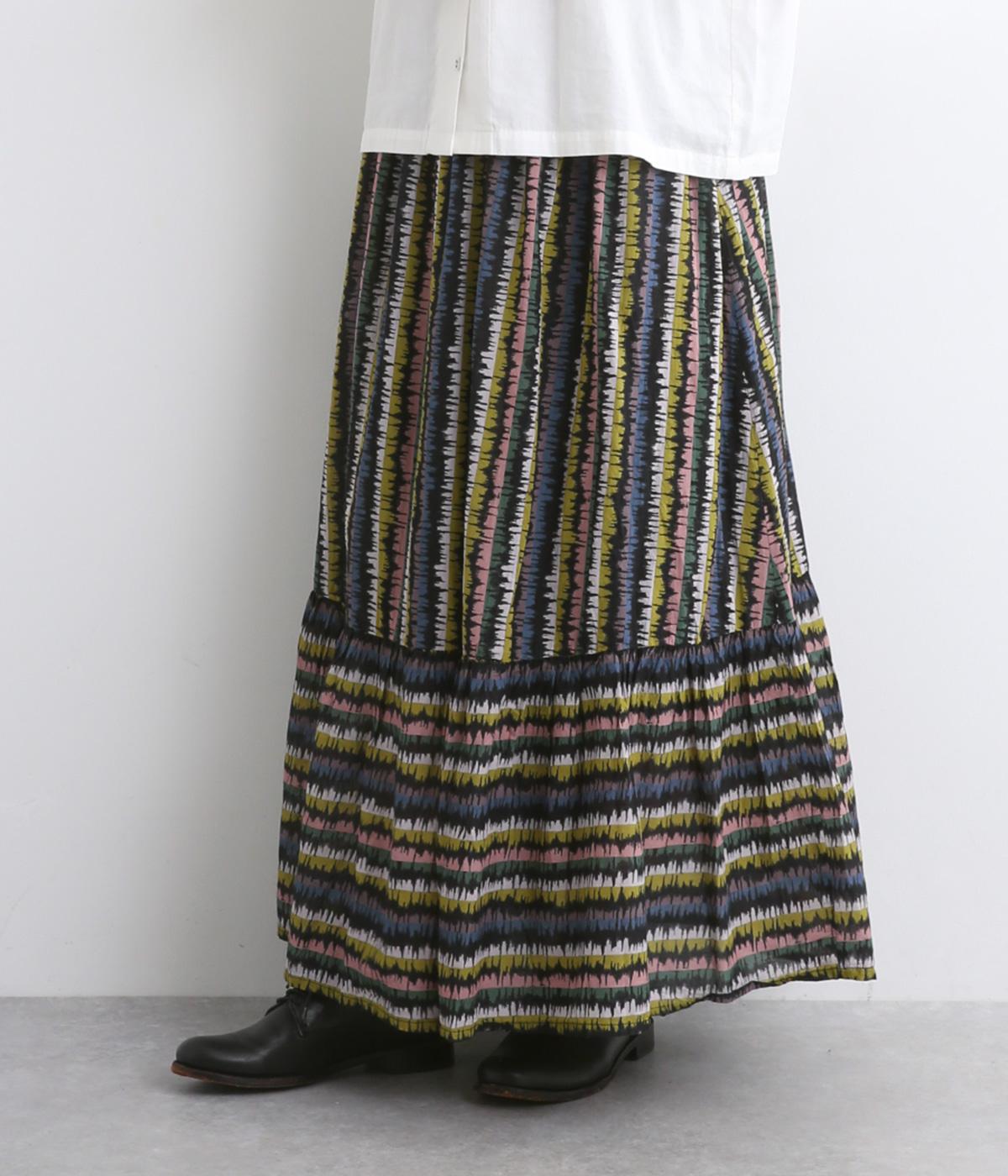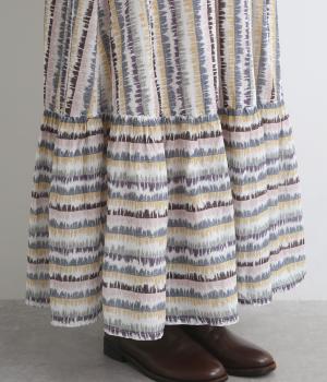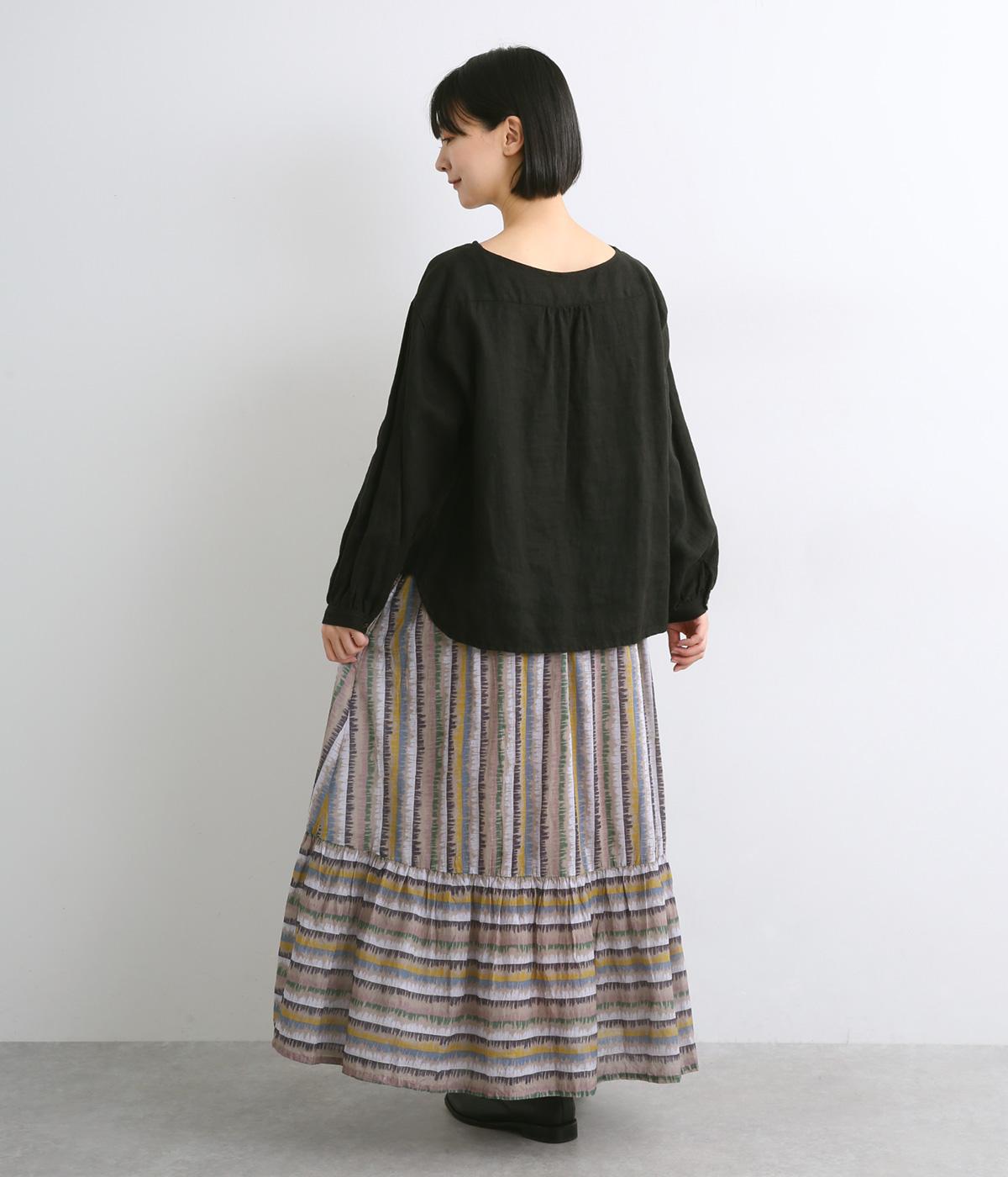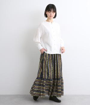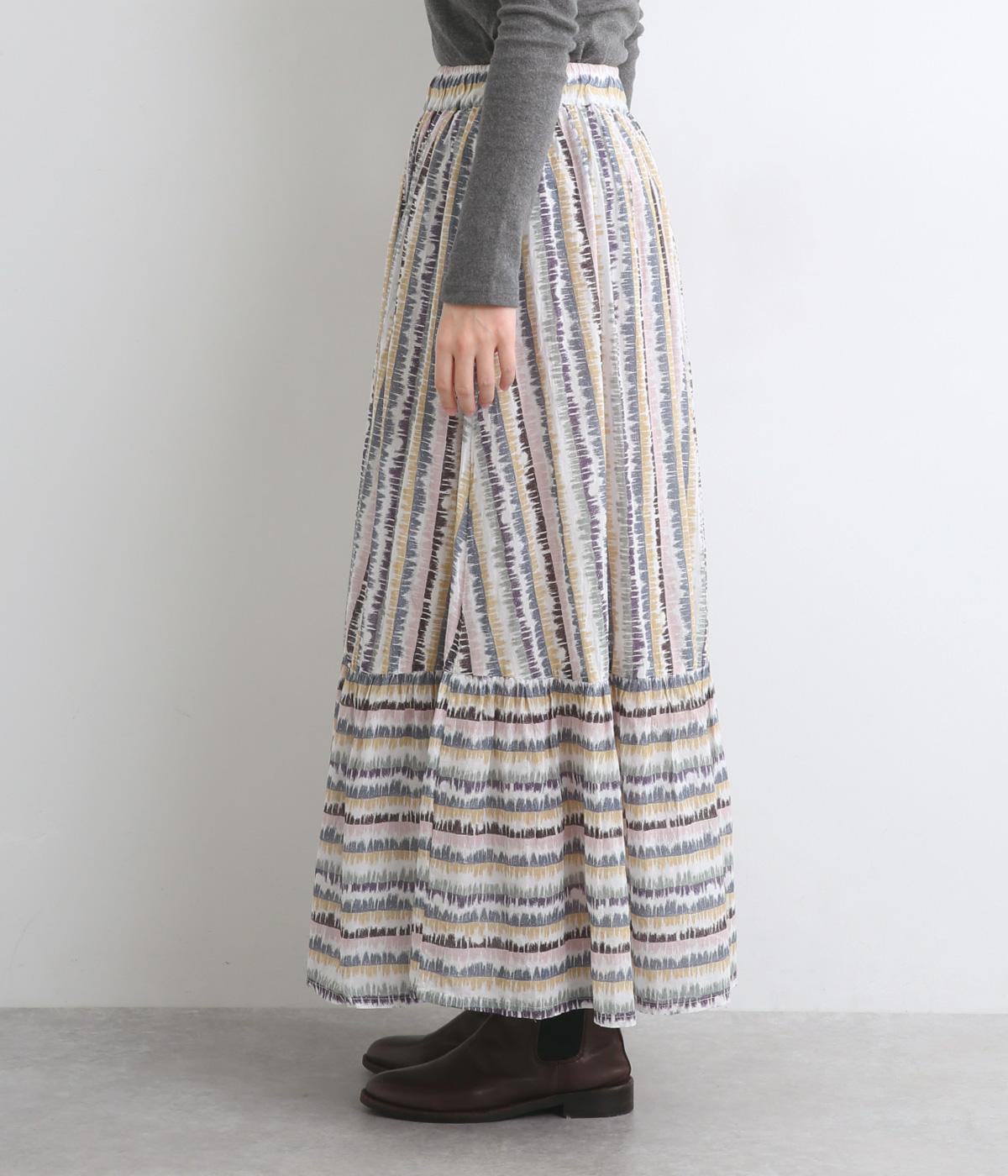 やわらかな雰囲気のストライプ柄ロングスカート。筆で描いたようなかすれタッチが、味わいのある表情を添えます。裾で柄の向きを変えてアクセントをつけました。ウエストはゴム仕様で、裏地付きの快適な穿き心地です。