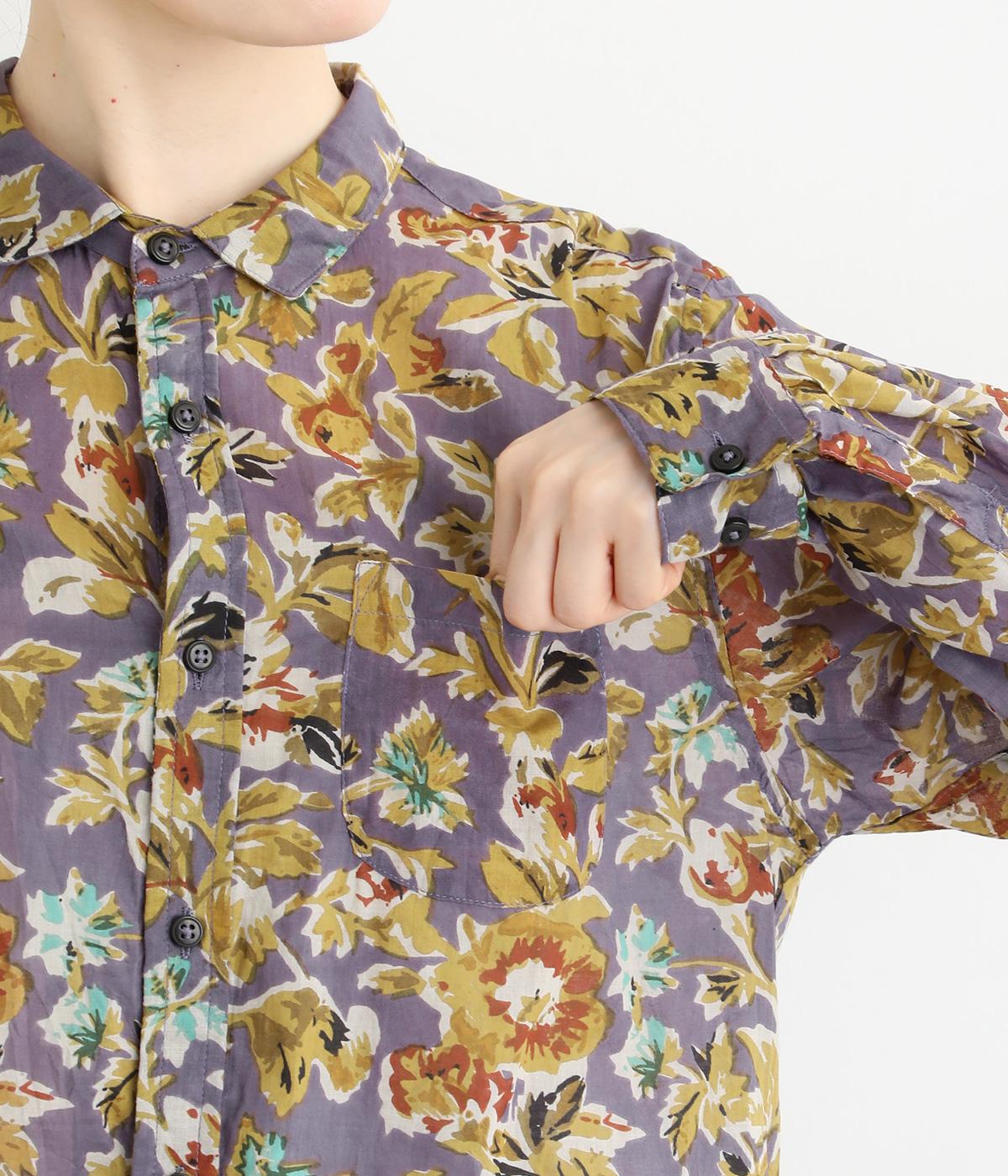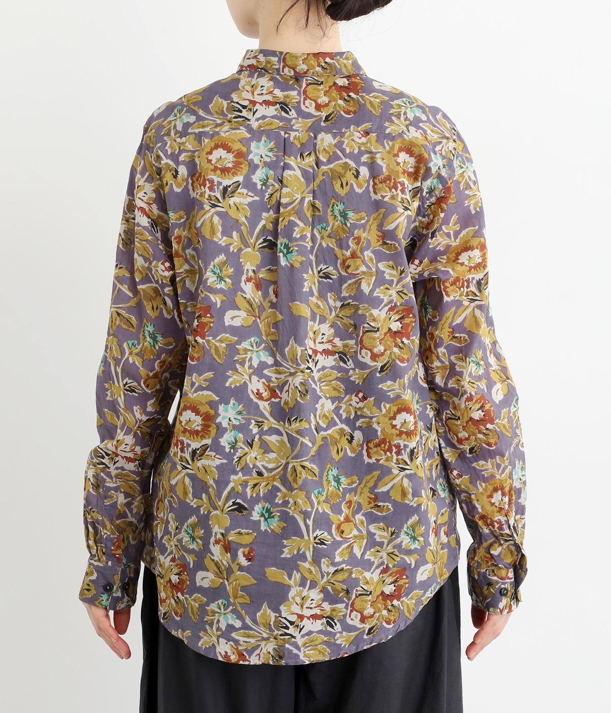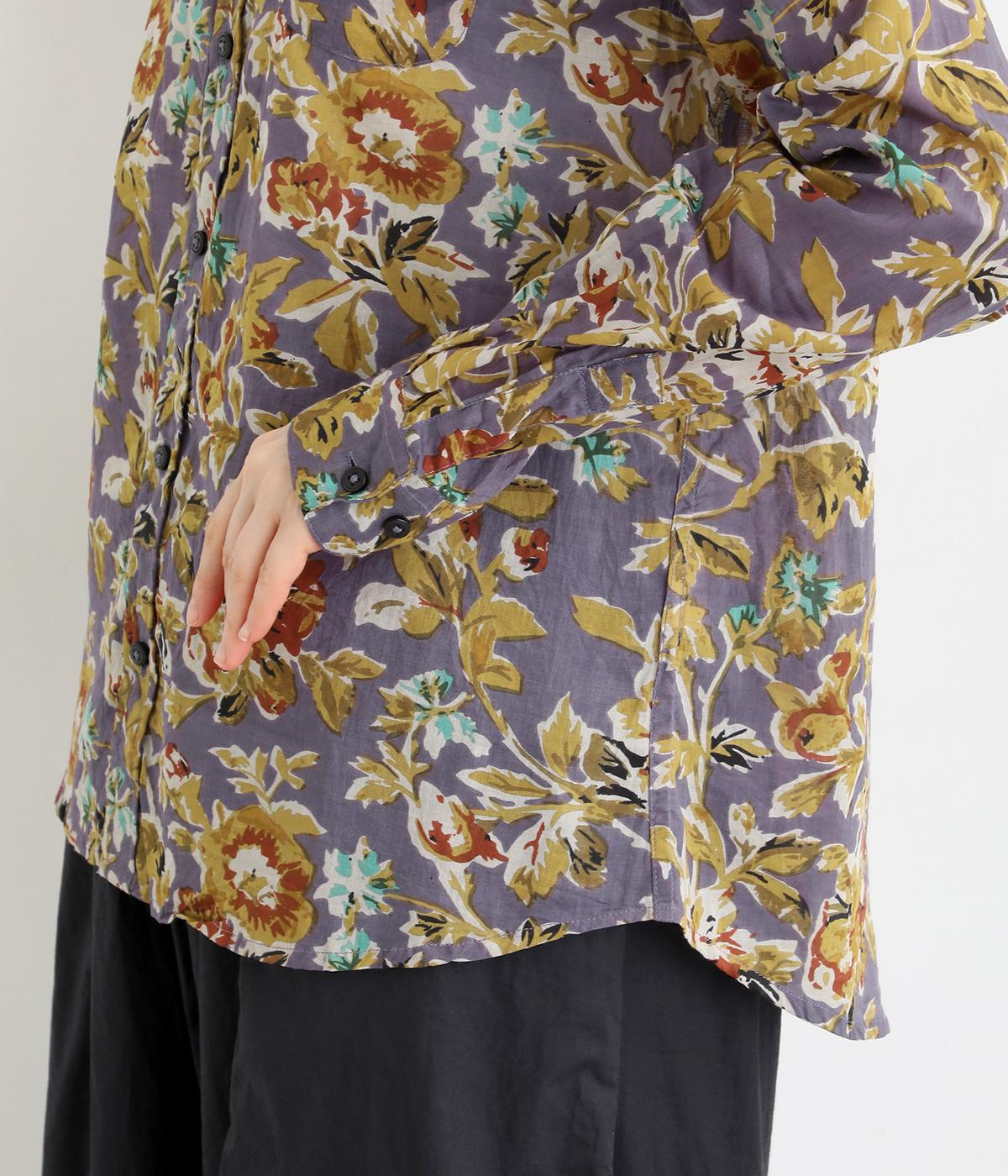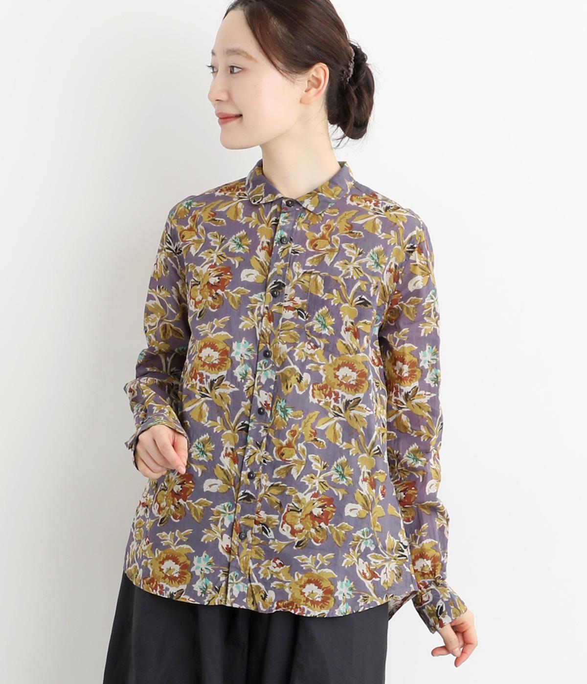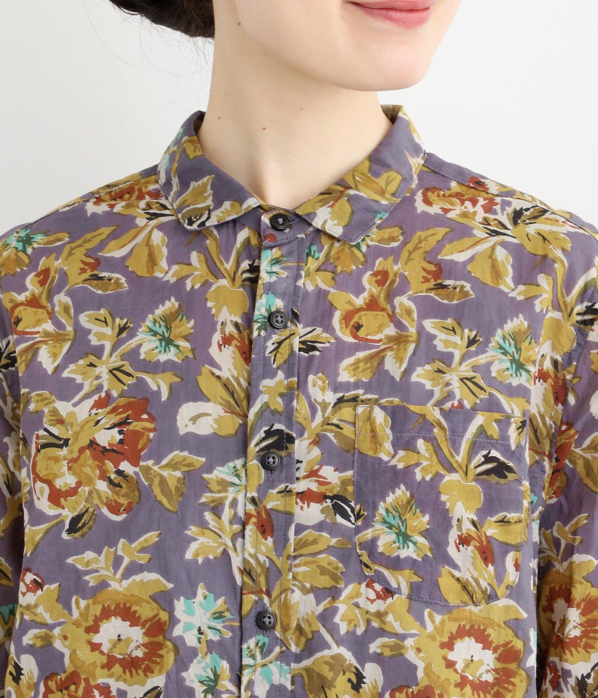 定番のレギュラーシャツにクラシカルな花柄をほどこしました。味わいのある柄ながらタイムレスな型でデイリーになじみます。うしろをすこし長くしたラウンドヘムがかわいらしさを添えながら体型カバーも叶えます。